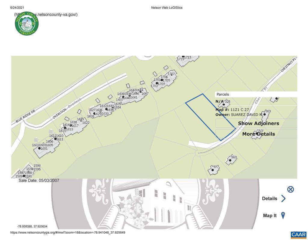 This homesite is directly below High Ridge Condominiums and, with judicious placement and pruning, should offer at least seasonal views similar to those offered from the condominiums. Park at High Ridge, walk around the building and look at the view and this site on the cul-de-sac directly below. It is easy to identify from above since there is an existing home on one side and a home under construction on the other. The site is well located with respect to the Chestnut Springs pool and the other facilities of the Devils Knob neighborhood.