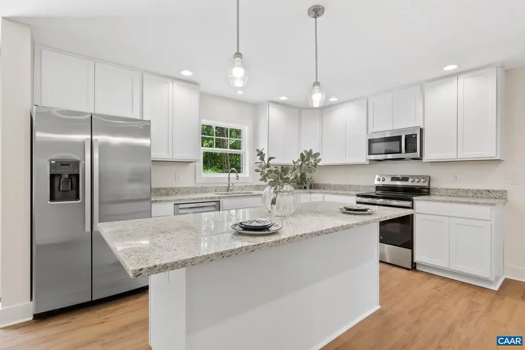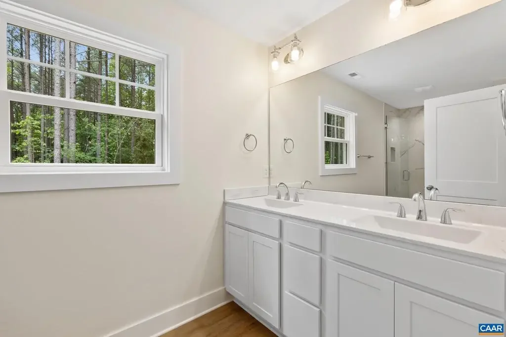 Superior quality is evident in this newly constructed fully completed home - ready for its new owner! Construction started & was listed in MLS last Fall, hence the days on market. On a peaceful 2.17 acre corner lot situated in one of Greene County's most desirable luxury neighborhoods, Hancock Farms, a 2400 square foot lovely Colonial Style dwelling. This beautiful home boasts luxury vinyl plank flooring, covered expansive front porch, conditioned crawlspace, 2 primary bedroom suites (one on each of the 2 levels), 2 other bedrooms, a total of 3.5 bathrooms, dual vanities, walk-in closet, upstairs laundry, home office, dining and living rooms, kitchen with island, 2 car garage, and a serene paved driveway. There are other lots available that this builder is prepared to break ground to build slightly different floorplans. Paved driveway is completed. Days on market on this one is because it started when construction started last year.,Granite Counter,Oak Cabinets,Wood Cabinets