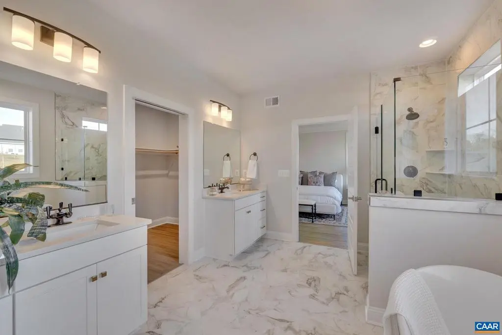 Model home available now with leaseback! This one-level floorplan is a stunner! You will love the flow of this layout, designed to make every step of your day frictionless no matter what phase of life you are in. The statement-making kitchen, family room, and dining room are open to each other and make up the heart of the home. Enjoy cozy evenings by your gas fireplace. Close the world away and relax in bed in the spacious primary suite, or have a spa day in your luxurious bathroom complete with frameless glass shower, separate vanities, and soaking tub. Two additional bedrooms, a full bathroom, pocket office, walk-in pantry, mudroom/laundry room, and oversized 2-car garage complete the main level. Photos of actual home.,Painted Cabinets,White Cabinets,Fireplace in Family Room