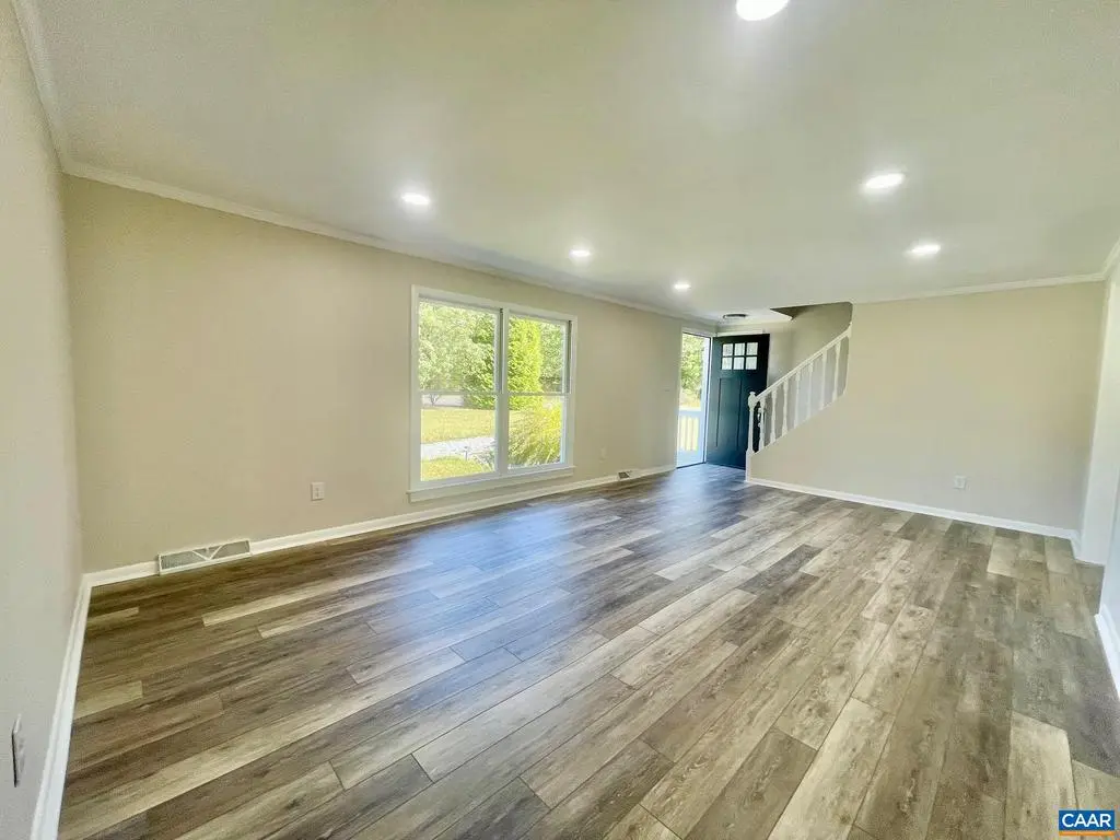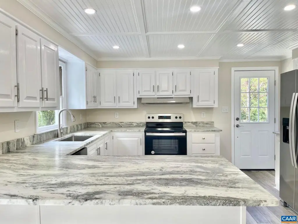 Perfectly positioned between Richmond and Charlottesville, this beautifully remodeled Cape Cod sits on 1.5 acres in the highly desirable Zion Crossroads area. NO HOA, bring the CHICKENS! Enjoy effortless access to I-64 plus shopping, dining, and everyday conveniences just minutes away. The home shines with fresh updates inside and out?new flooring throughout, stylishly tiled bathrooms with modern vanities, and a fully equipped kitchen with stainless steel appliances. Step outside to your expansive brand-new deck, ideal for hosting cookouts or relaxing in your private, tree-lined setting. With 4 bedrooms?including a main-level primary suite?there?s room for everyone. Two additional spacious bedrooms upstairs make for flexible living, and occupancy for up to 6 is permitted. Major updates provide peace of mind with a NEW roof, NEW deck, and recently replaced HVAC and hot water heater. Plus, Firefly fiber internet keeps you seamlessly connected for remote work or streaming. This move-in ready home checks every box?modern updates, fantastic location, and a semi-private lot.,Granite Counter,White Cabinets
