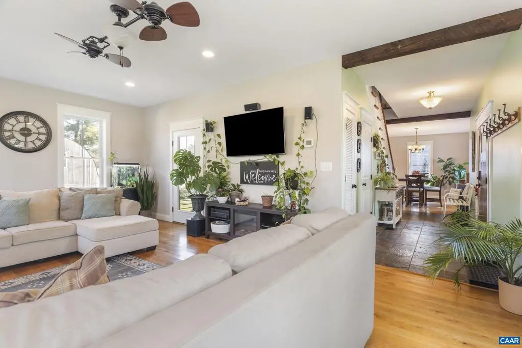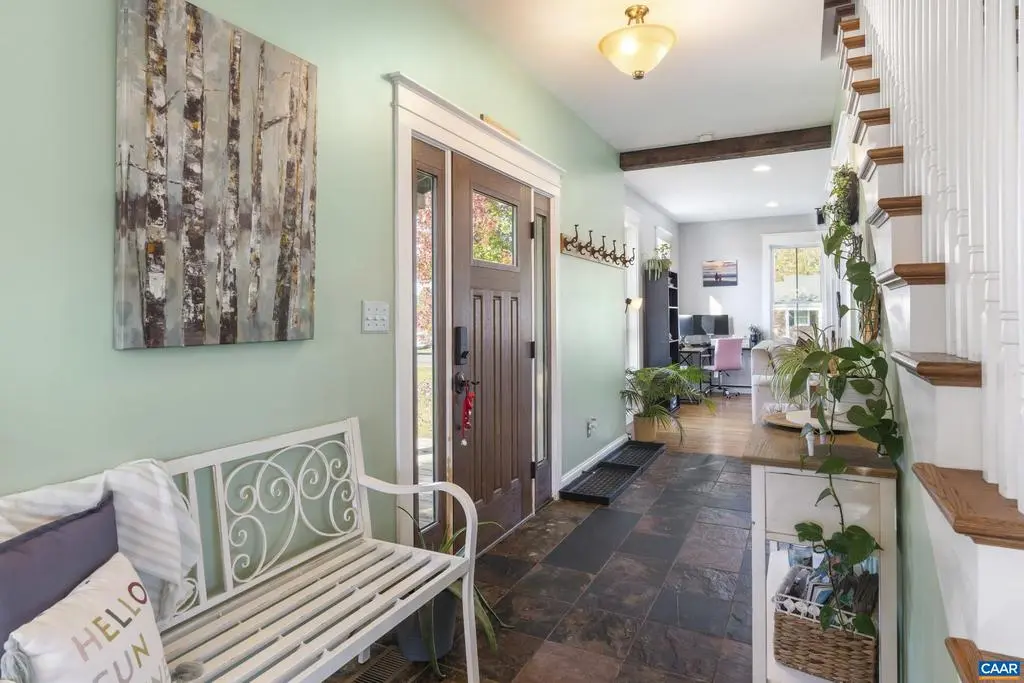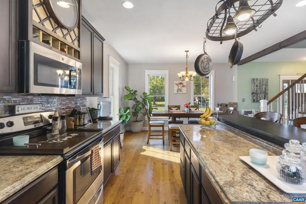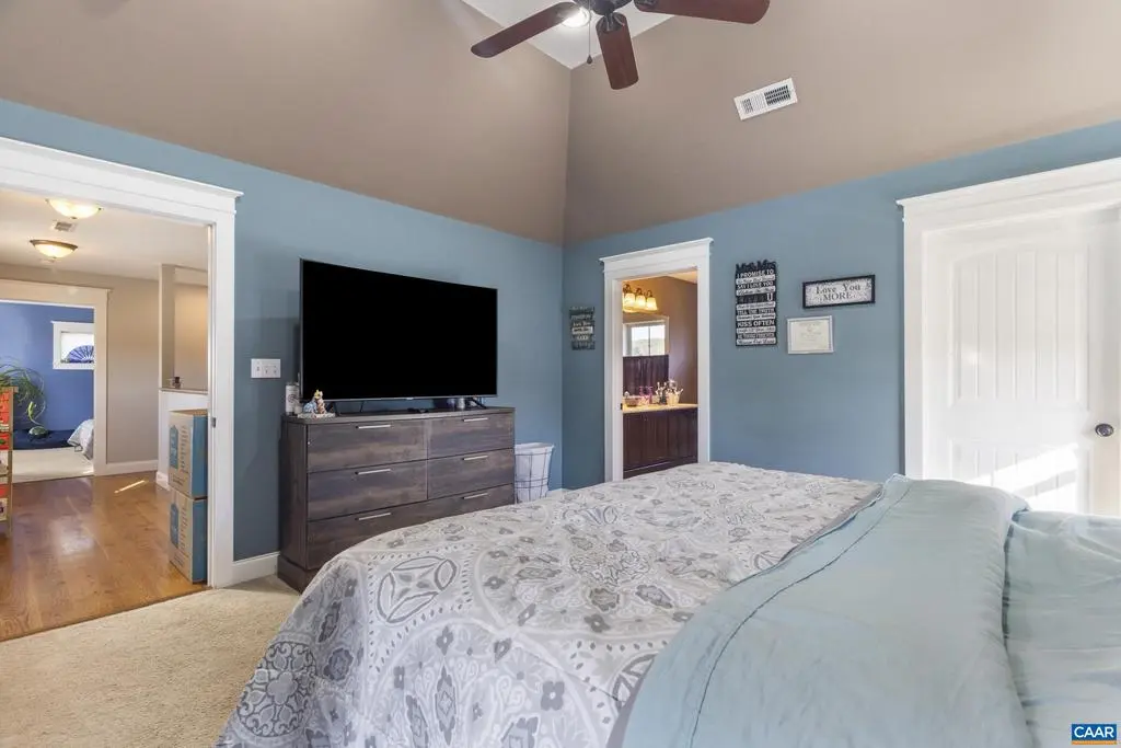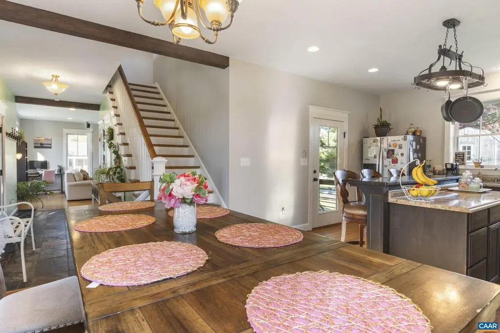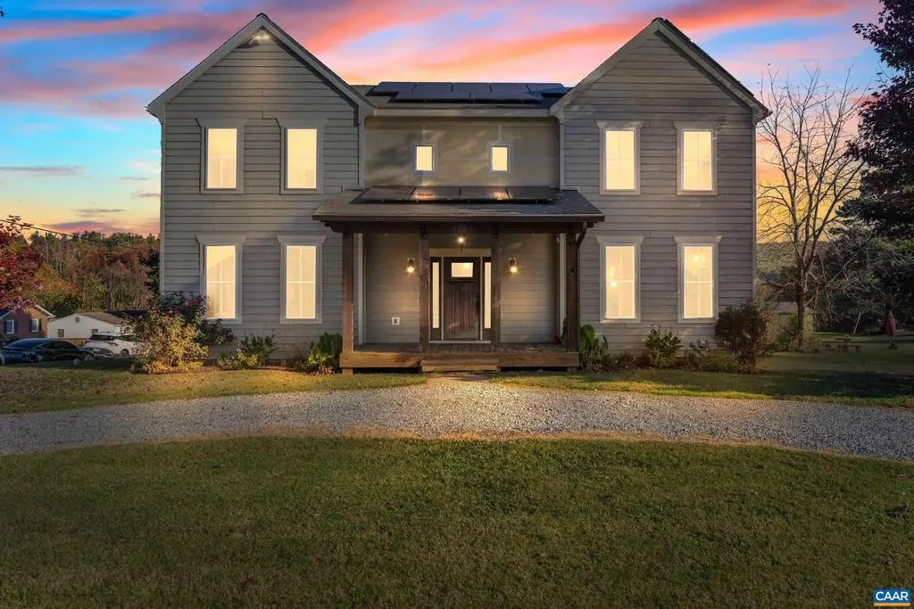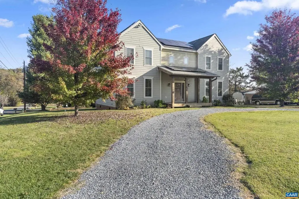 Exquisitely designed craftsman-style residence, situated in a prime location, providing a peaceful escape from the daily grind. Upon entering you step into a foyer that flows to the kitchen and dining areas. The kitchen features high-end cabinetry, SS appliances, pantry closet, and an island. The generous living room is bathed in natural light, thanks to its distinctive taller windows, creating a bright and airy atmosphere. The main level is enhanced by a half bath and covered back porch, making it an entertainer's dream! The primary ensuite is adorned with tray ceilings, a full bathroom, and walk-in closet. Upstairs there are two additional spacious bedrooms, each with tray ceilings. The exterior of the home showcases several notable upgrades; a meticulously maintained yard with elegant landscaping, solar panels, electric vehicle charging station, and a raised garden bed. Large storage building, resembling a barn, could be transformed into something special.