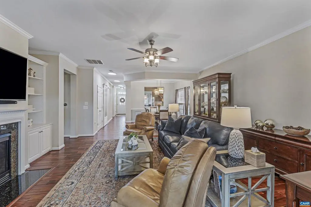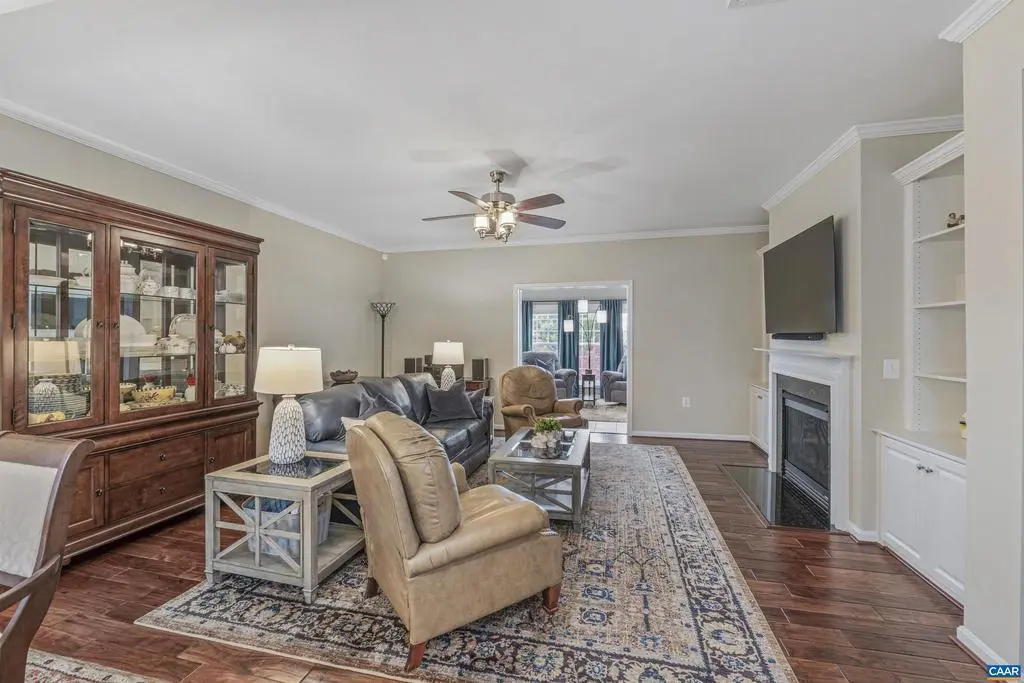 Rare opportunity for an updated one-level home in the area's premier 55+ active living community. Designed for easy living, this spacious home features 3 generously-sized bedrooms and 3 full bathrooms?ideal for everyday comfort and hosting guests. Thoughtful updates include complete interior painting, HVAC (2023), walk-in primary shower, electrostatic water treatment system, interior lighting, and basement flooring. Dual walk-in closets in the primary bedroom and built-in shelving in the pantry and primary bedroom enhance storage and functionality. Charming features like Virginia hand-scraped oak floors, a gas fireplace, built-in bookcases, and heated tile floors in the primary bath create a cozy atmosphere. Enjoy year-round natural light in the cheery sunroom. Step outside to an awning-covered trex deck with views of the maintained, landscaped common area. A whole-house generator and landscaping irrigation system are bonus worry-free improvements. Four Seasons residents enjoy access to the community clubhouse, indoor pool, a fitness studio, social events, and walking trails around a private 7-acre lake. The HOA fee covers trash pickup, snow removal, and yard maintenance.,Solid Surface Counter,Wood Cabinets,Fireplace in Living Room