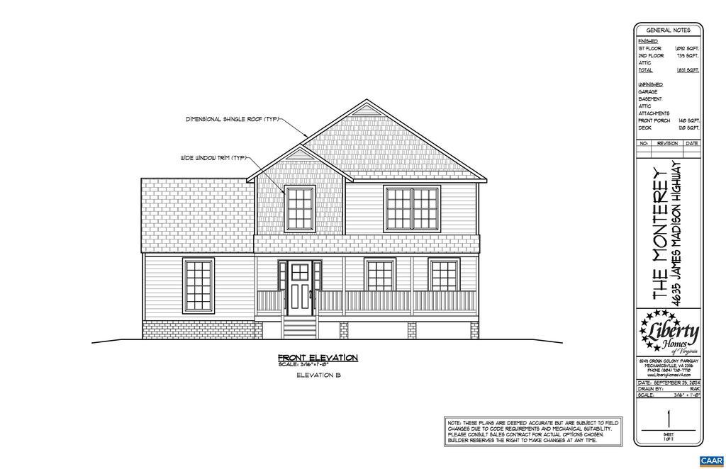 NEW PRICE with IMMEDIATE OCCUPANCY! Ask how you can receive up to $7,500 in SELLER PAID CLOSING COSTS! The Monterey model on half an acre across from Fork Union Military Academy. Gorgeous open floor plan with laminate flooring throughout the main living areas, spacious great room, open kitchen layout, stainless appliances, granite countertops, upgraded 42" Tier 2 wall cabinets, 2x7 island with overhang, and half bath. The Primary suite, on the main level, comes with a vaulted Ceiling, a ceiling fan, walk in closet, and an attached full bath with a 5' shower and double bowl vanity! Upstairs you'll find 3 additional bedrooms with LED lights, a full bath, and pull down attic for extra storage. Adult height toilets in primary and half bath, 10x12 deck for entertaining, and an upgraded exterior with wide window trim instead of shutters, shake siding, black windows on the front and craftsman style front door. No money down loans available.,Granite Counter,Wood Cabinets