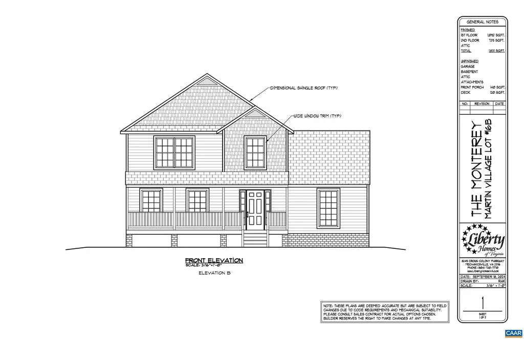 IMMEDIATE OCCUPANCY to ENJOY your NEW home for the HOLIDAYS! The NEW Monterey model on 1.70 acres in Louisa. Gorgeous open floor plan with laminate flooring throughout the main living areas, spacious great room open to the kitchen with stainless appliances, granite counters on tier 2 cabinets with 36" upper cabinets with crown molding, 2x7 island with overhang, half bath with adult height toilet, first floor primary bath with vaulted ceiling with fan, walk in closet, and an attached full bath with a 5' shower, adult height toilet and double bowl vanity! Upstairs you'll find 3 additional bedrooms with LED lights, a full bath, and pull down attic for extra storage. 10x12 deck for entertaining, and an upgraded exterior with wide window trim instead of shutters and shake siding. Ask how you can receive up to $7,500 of your closing costs paid. No money down loans available. Photos are of a similar completed home.,Granite Counter,Wood Cabinets