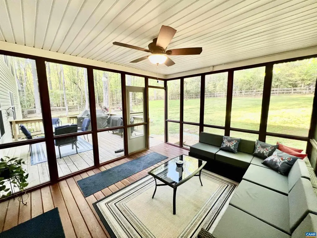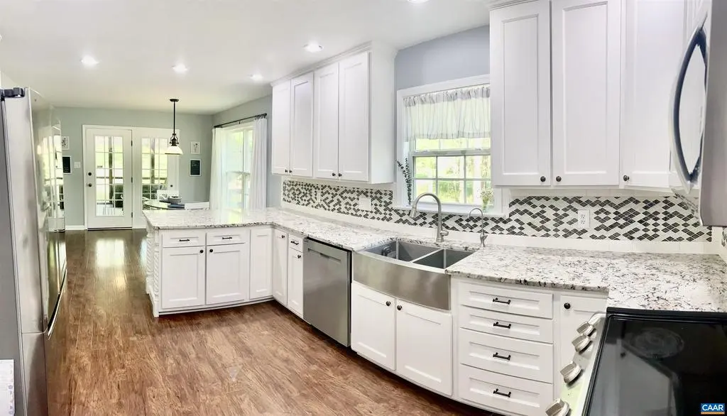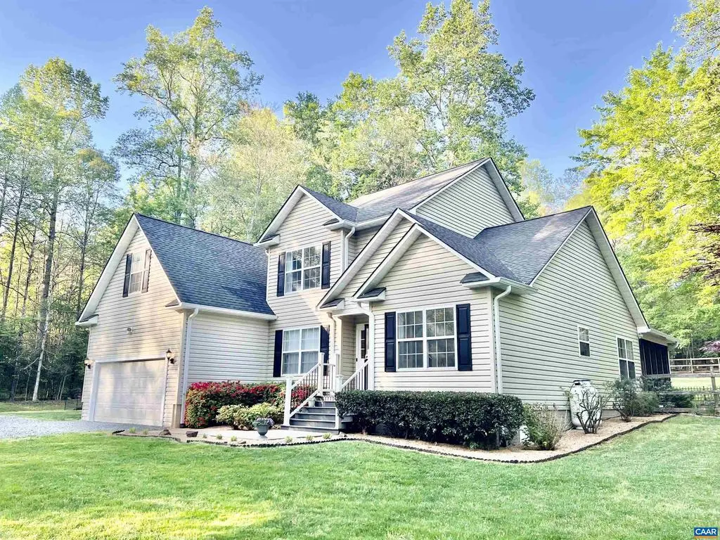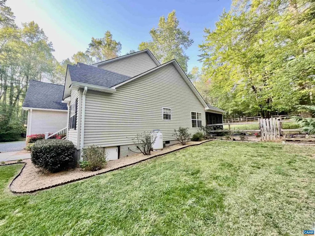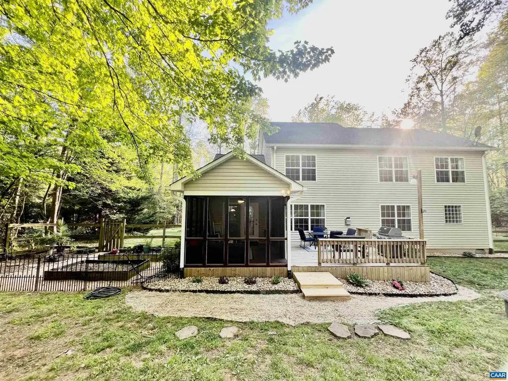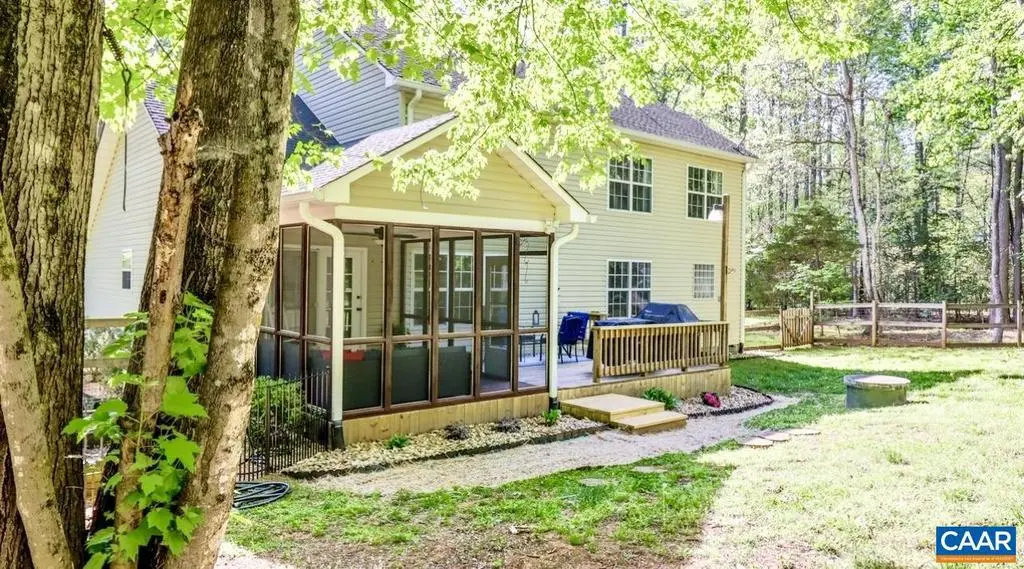 OPEN HOUSE Sunday 1-3 pm. New Roof Just Installed and Warranty is Transferable to the new Owner...Sellers have made this home Worry Free and offering a 1 year Home Warranty Adore the Vaulted Ceilings with Gorgeous Stone Floor to Ceiling Gas Fireplace 5 Bedrooms Gourmet Kitchen with Granite Countertops Screened Porch attached leads to a Spacious Deck Ready to fire up the Grille, Smoker, and Griddle as you enjoy over 2 Acres or Relax at the Fire Pit Primary Bedroom and Laundry on the Main level...Office Doubles as a 2nd Living room for Relaxation Fenced in Yard and Fenced in Flower & Vegetable Garden with Raised Beds...Minutes to Starbuck and Walmart...13 Miles to Charlottesville. A Clear Water System installed and also has a Reverse Osmosis Faucet.