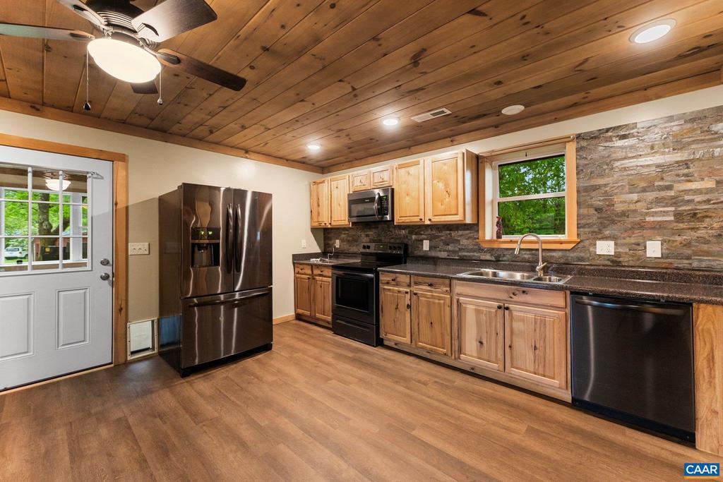 Back on the market as buyer unable to secure financing... Imagine sitting on the front porch of your Rural farmhouse gazing out to the mountains beyond. Home has undergone an extensive renovation, including the addition of two bedrooms to the upper level. Home features 3 spacious bedrooms, newly renovated bath, updated eat-in kitchen, and tongue and groove ceilings throughout. Exterior has space for gardening and carport/storage shed provides additional storage. Amazing views of the mountains and wildlife. Only a short 15 minutes to the town of Swoope. Wonderful potential as a short-term rental.,Formica Counter,Wood Cabinets