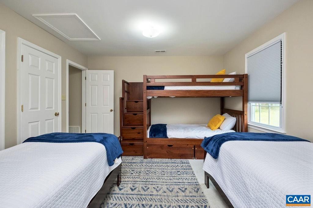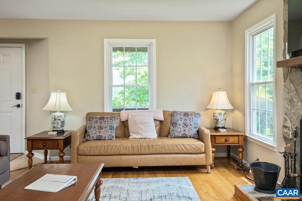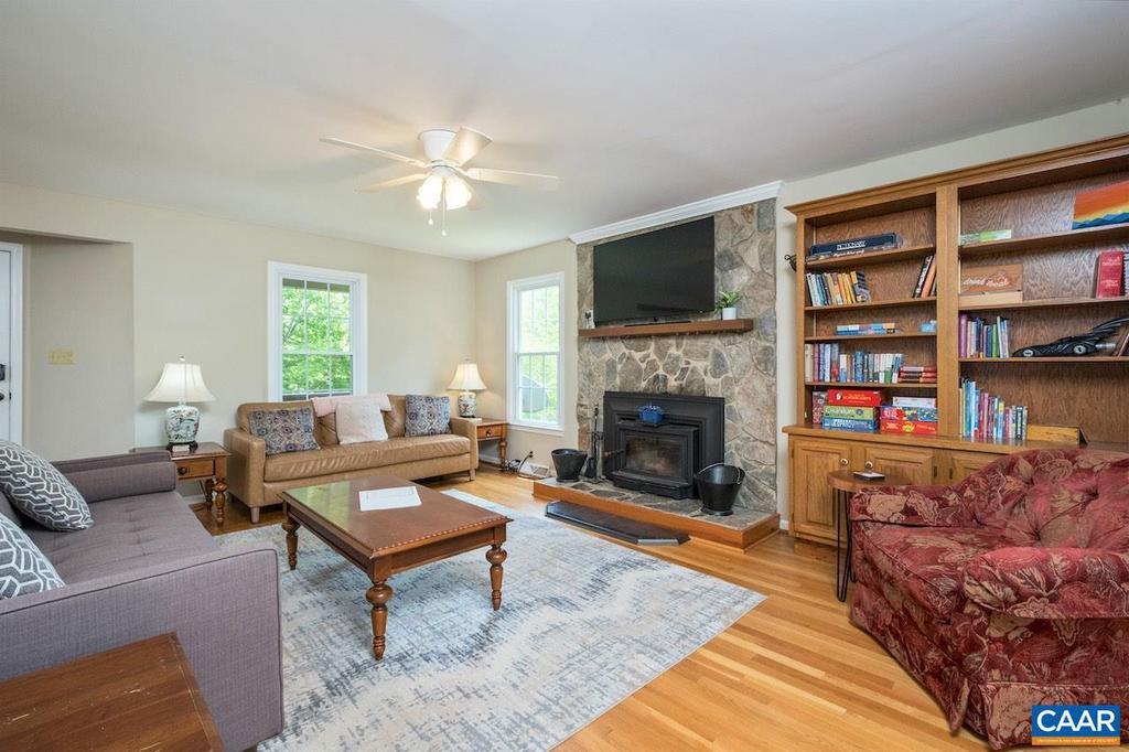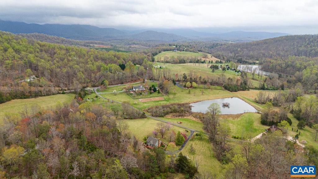 Mountain and water views within a prime location only 1.5 miles from Nellysford town hub! Perched on a knoll overlooking one of the community lakes/ponds and surrounded by mountains; small streams on property too! Features home on 2.12 ac and adjoining 2.24 ac building lot with the same amazing views. Enjoy bright open flow with sunroom, 1st floor master, wood floors, fireplace with wood stove insert, kitchen with island and granite countertops, partially finished basement (kitchen, bath, and family/rec room), 1 car garage, workshop/home office or studio, paved drive, fruit trees, garden area, and fiber optic internet. Many recent improvements in past 5 to 10 yrs: roof, water heater, HVAC - cooling (2021) and propane furnace (original with new burners in 2021), interior painting (2022), exterior painting of front porch (2022) and back deck (2025), septic pumped (2025) and luxury vinyl plank flooring in master bath and basement (2024) and many new fixtures/lights. Must see home in a quiet community (permits chickens - no roosters) near Rt 151 with wine and brew trail, hiking, Wintergreen Resort for skiing, golf, and more. Currently a vacation getaway/rental (sleeps 10); Sold turn-key!,Granite Counter,Maple Cabinets,Quartz Counter,Wood Cabinets,Fireplace in Great Room