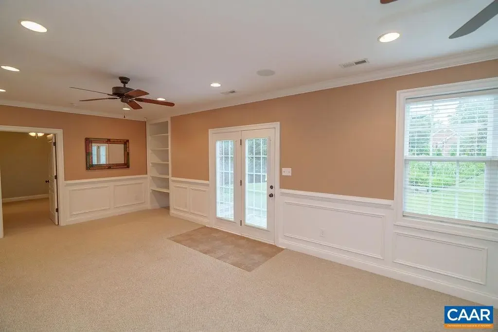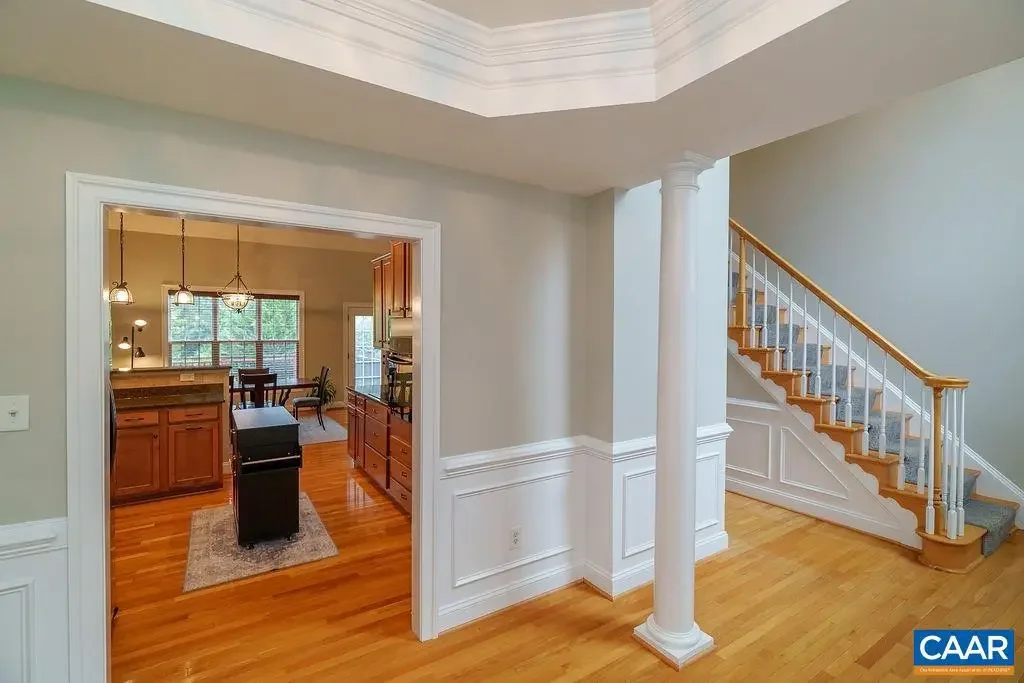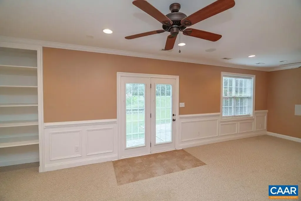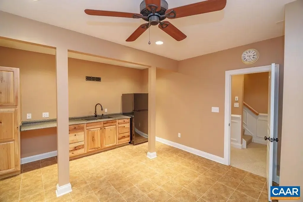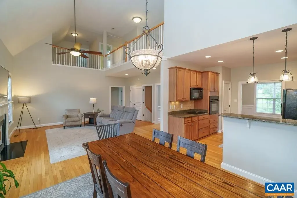This impeccably maintained home is well-situated near all of the amenities of Spring Creek. The main level features a large living room, two dining areas, kitchen, half bath, laundry, and primary suite with full bathroom and 2 walk-in closets. Upstairs are three more bedrooms and a full bathroom. The basement offers additional entertaining space with a large family room, rec room, and an additional fifth bedroom with full bathroom. Kitchen includes granite, induction cooktop, and wall oven. Backyard features a deck perfect for grilling and a patio off the basement family room. Tasteful perennials and an irrigation system provide for colorful and low-maintenance enjoyment. Expansive storage options in basement utility room and in the oversized garage. Gated community includes nationally-ranked golf course, clubhouse with restaurant, fitness center, 25-meter pool, tennis & basketball courts, walking trails and playground. 20 minutes to Charlottesville and less than an hour to Richmond.,Granite Counter,Fireplace in Living Room