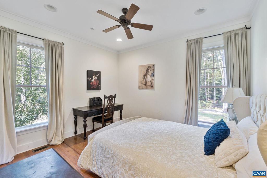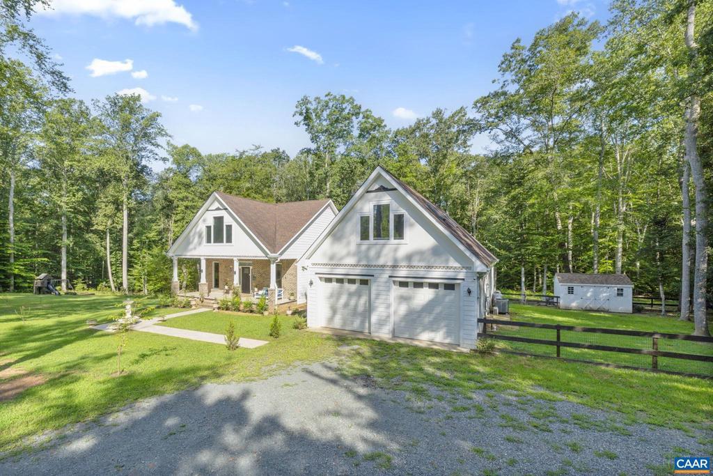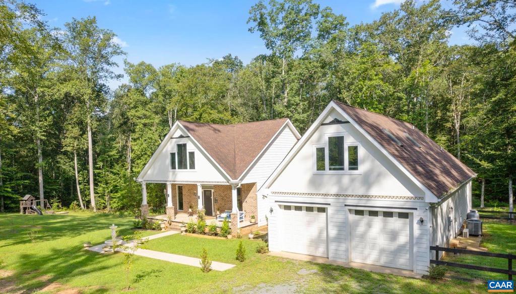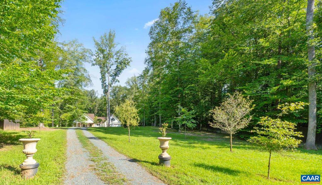 Open House: Sun 11/2 from 1:00-3:00. New Price! Still accepting offers! Yours might be the one! Discover this Hidden Gem of a Lake Community w/ spacious, private lots, just 30 mins from Charlottesville & convenient to Zion Cross Rds and Gordonsville. This unique 3,003 Sq Ft home on 7 acres rests on a quiet cul-del-sac. Step inside to soaring 10' Ceilings, gleaming Hardwood Floors, and a desirable Split Bedroom Floorplan. The Family Room, currently an inviting Library w/ beautiful wood shelving, offers a cozy retreat w/ gas fireplace & stone chimney. Entertain in the striking Gourmet Kitchen w/ Stainless Appliances, Gas Cook Top, & Center Island w/ Prep Sink. Enjoy viewing nature through Newly Enlarged Picture Windows. Expansive Primary Bath has Separate Vanities, 2 Walk-In Closets, Soaking Tub, & Spa Shower. Bright Bonus Room, w/ Skylights and Enlarged Windows adapts easily as a 4th Bedroom, airy office, gym, or craft room, w/ adjoining half bath. Outdoors, enjoy the Travertine Walkway & Grecian Fountain in front & gather by the Fire Pit on the Travertine Patio in back.Relax on the porches, explore the woodland trail, and make the most of raised beds, play set, & fenced dog area. Many any ornamental, fruit, & flowering trees.,Oak Cabinets,Quartz Counter,Fireplace in Family Room