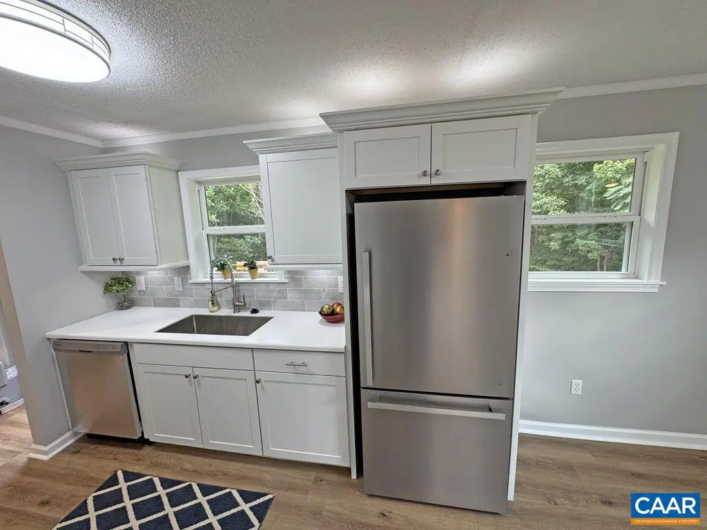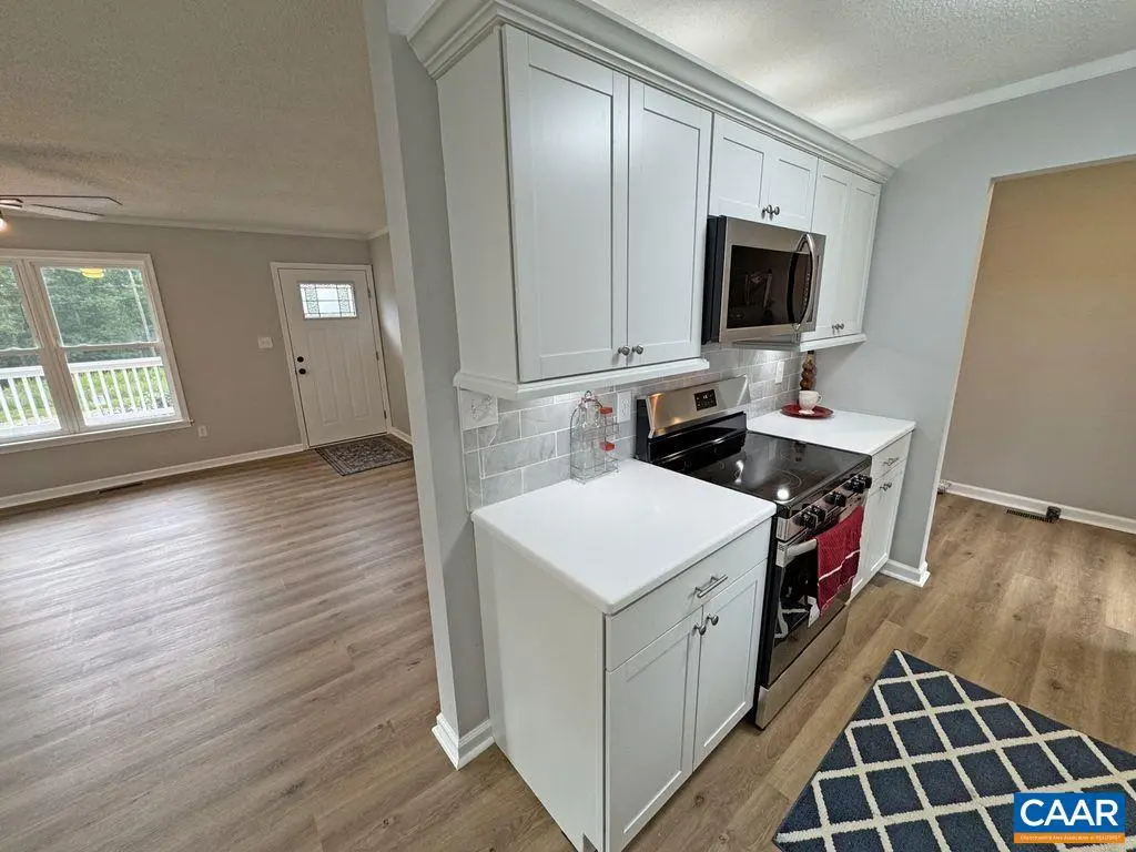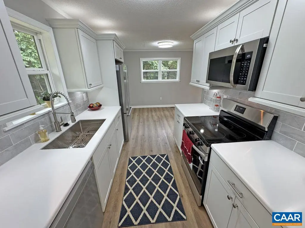 Beautifully remodeled 4 Bedroom 2 Bath home with many premium upgrades ? a private oasis in the country! Highlights include a new custom kitchen with Shaker cabinets, all new stainless appliances, and solid surface countertops. All new Luxury Vinyl Plank flooring adds a modern elegance to this remarkable home. The bathrooms are brand new and include new vanities and new fixtures. Other notable features include: all new lighting, a new heat pump, new energy efficient windows, two decks, a wonderful level yard with mature landscaping, and much more. With High Speed Fiber Internet in place, easily connect to the outside world or work from home. Don?t miss the opportunity to purchase this adorable home with premium finishes at an affordable price.,Solid Surface Counter