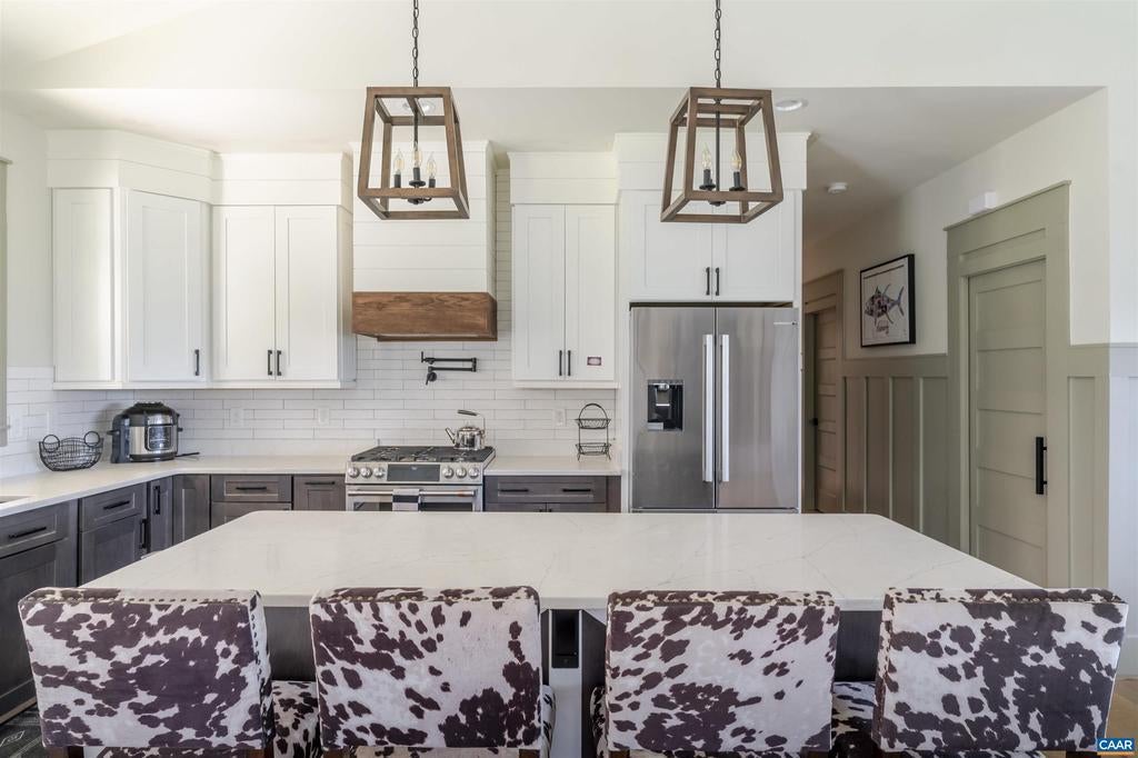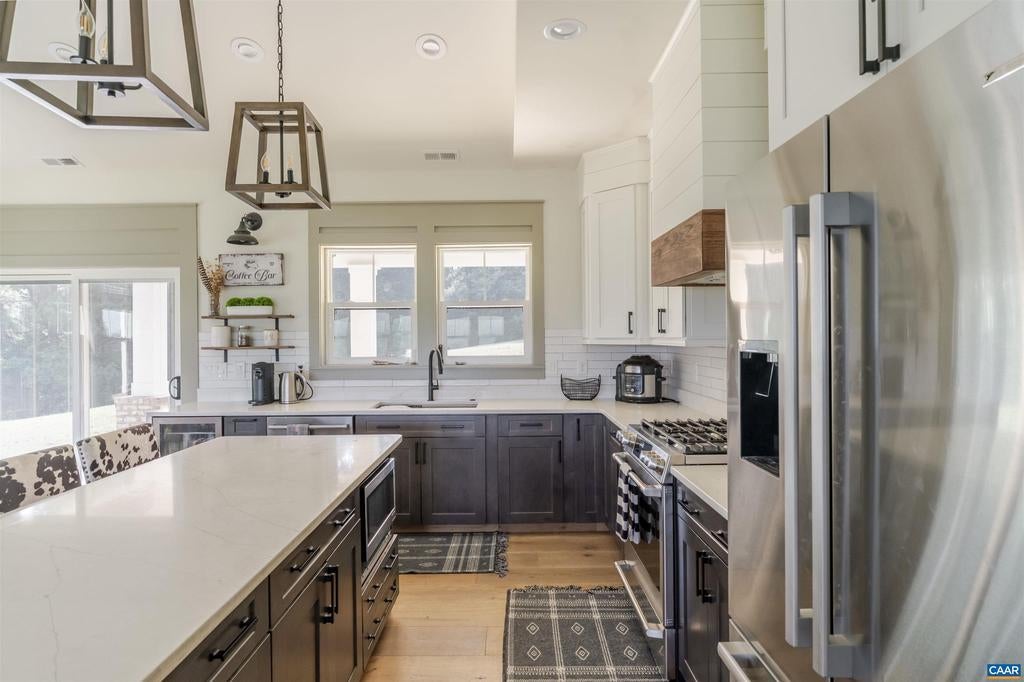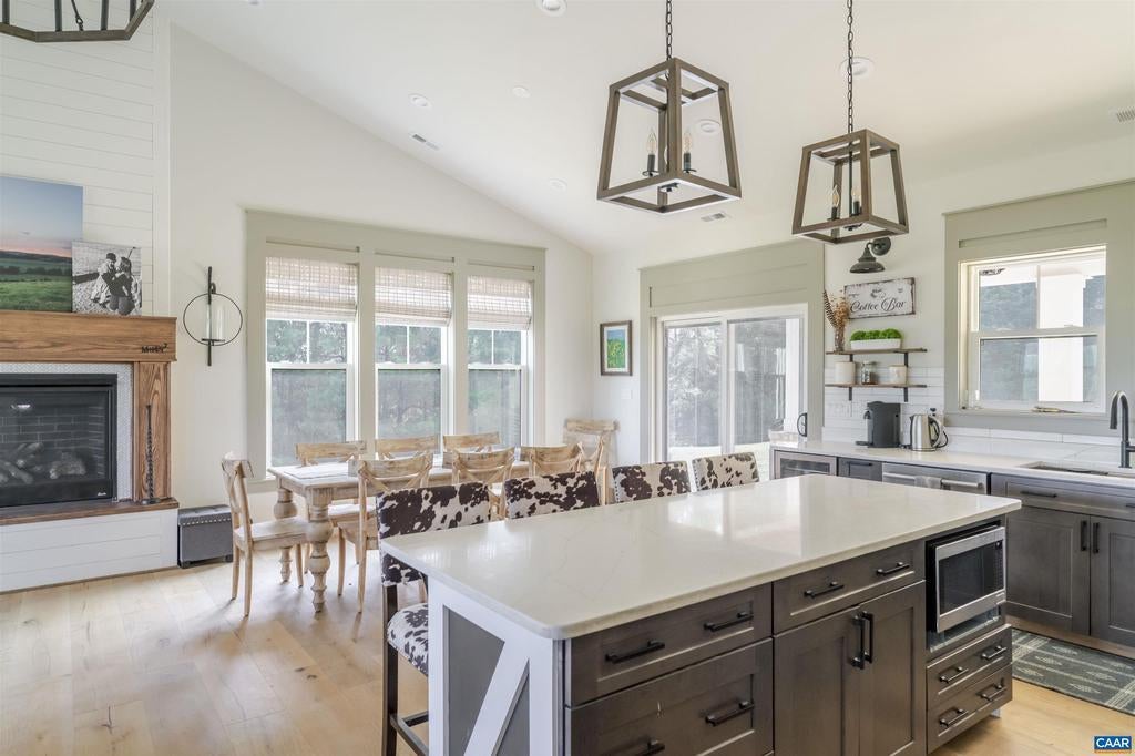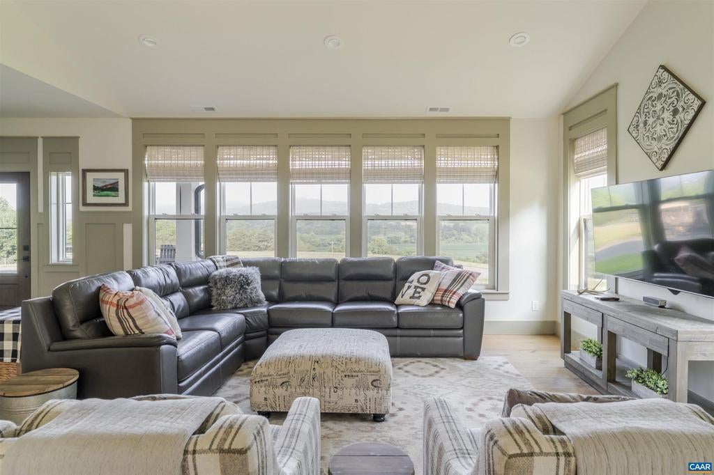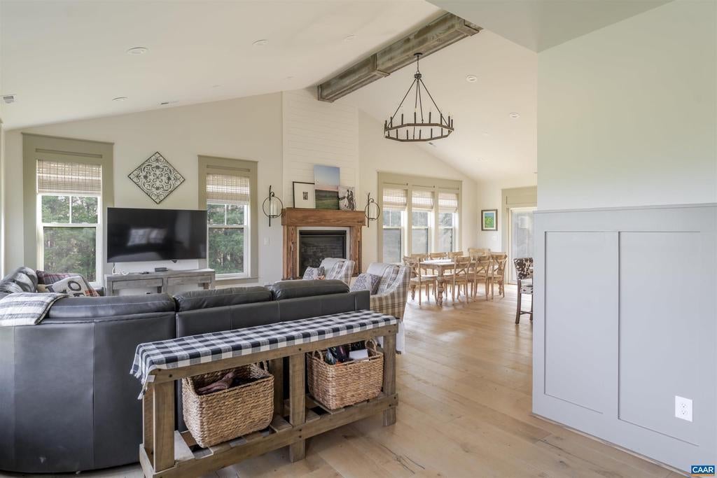 This custom built newer home sits atop a ridge with beautiful views of the South-West mountains. The 3200 sq ft home boast a modern layout consisting of a large family/kitchen space with fireplace, and vaulted ceiling. The home's 3 bedrooms, including the primary are all located on the ground floor. Also on the main floor are two full baths, and one half bath The 3+ bay attached garage has access into the home through the mudroom. Above the garage is a large finished space with a full bathroom. The land is mostly open pasture, and is all fenced for livestock, with automatic waterers. The land is further enhanced by a pole barn. Conveniently located between Orange and Gordonsville, yet very private.