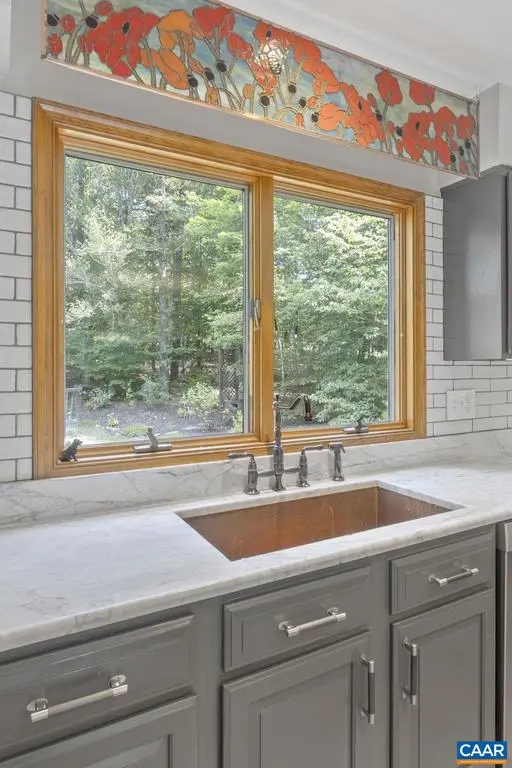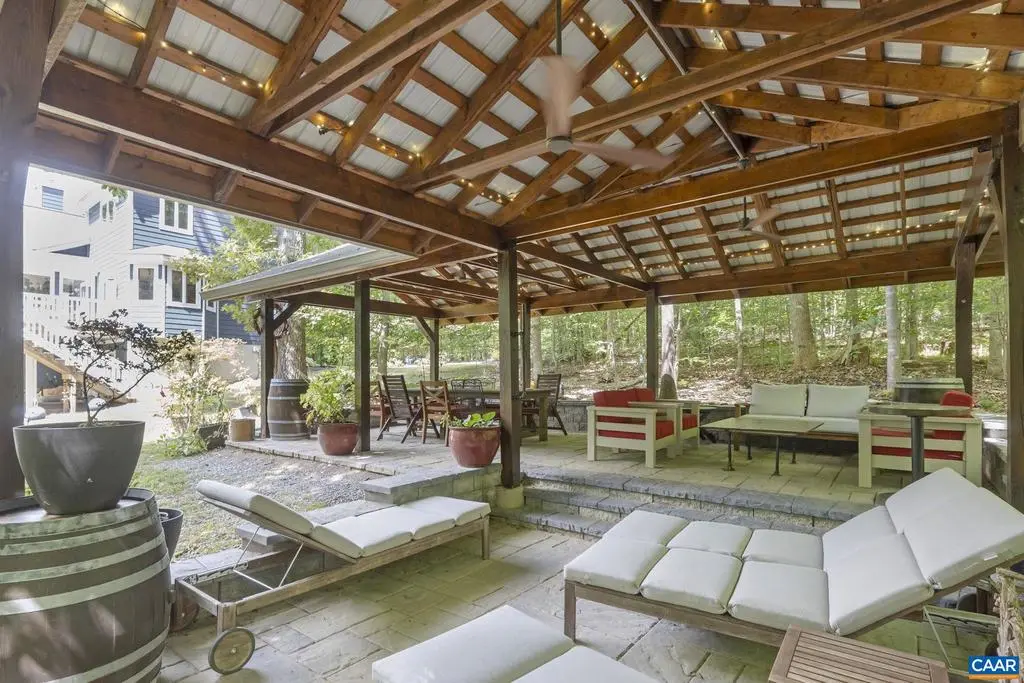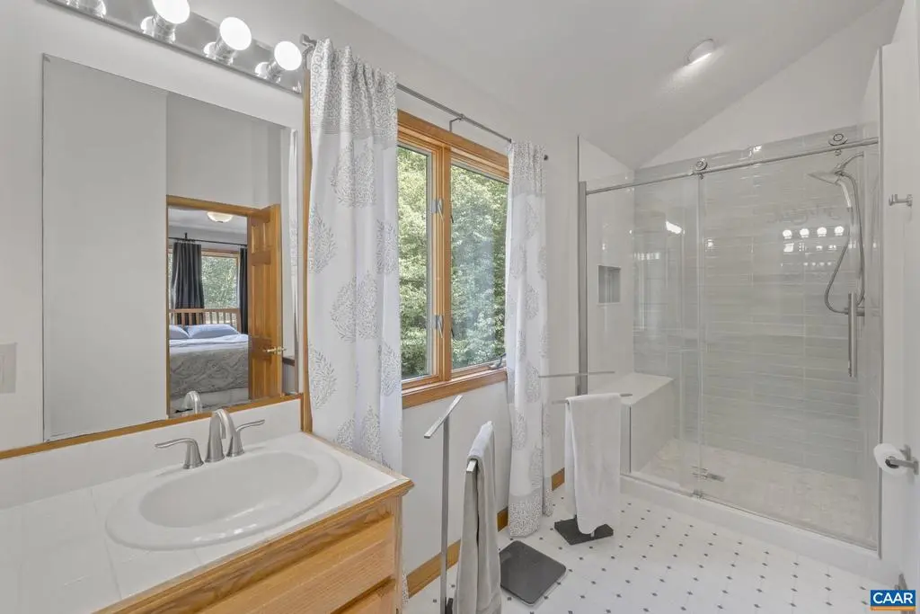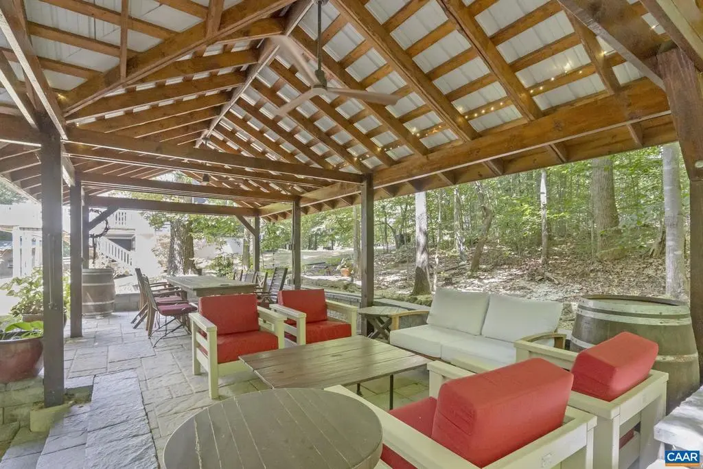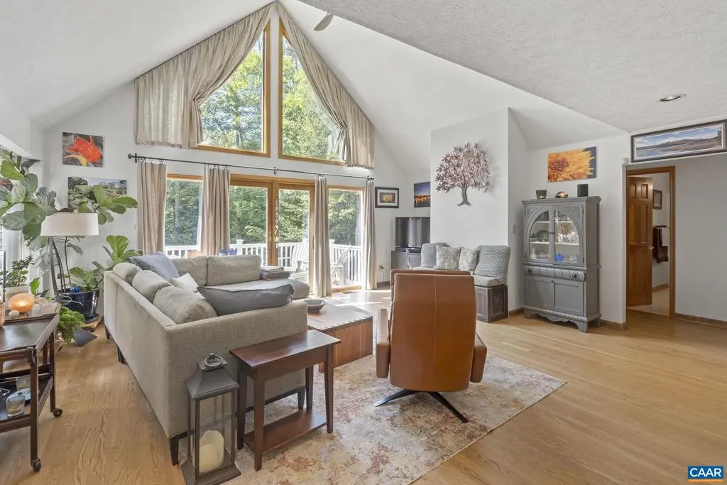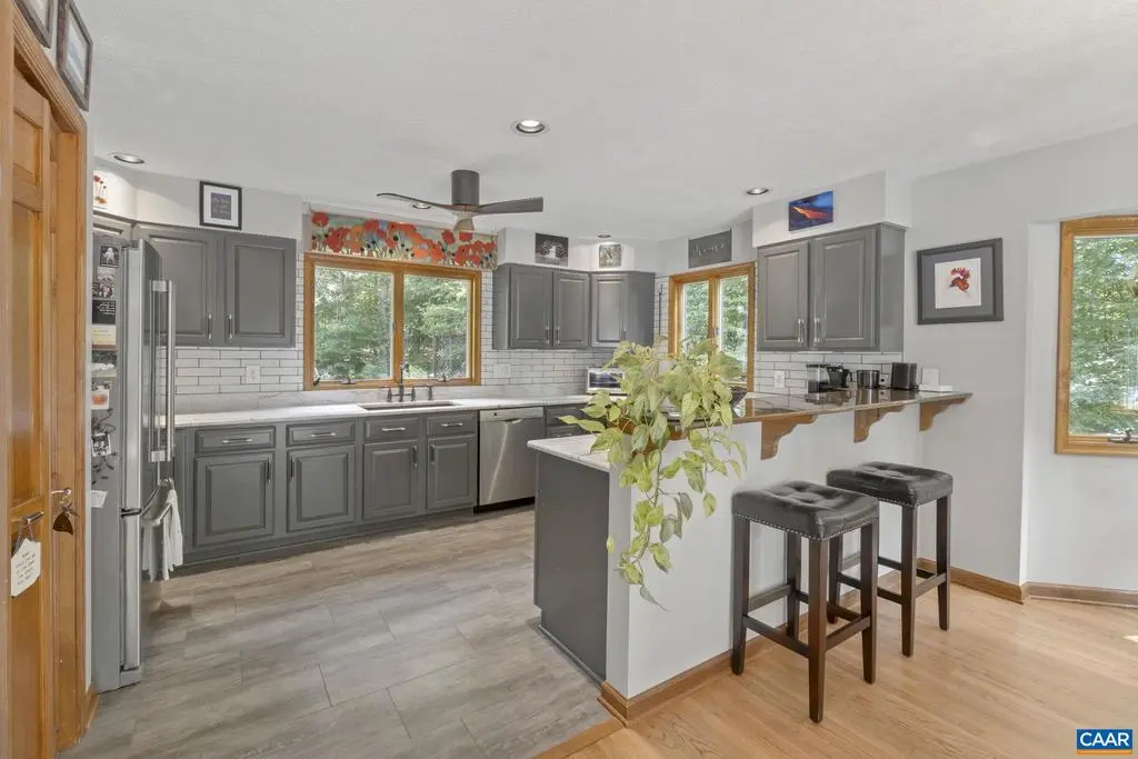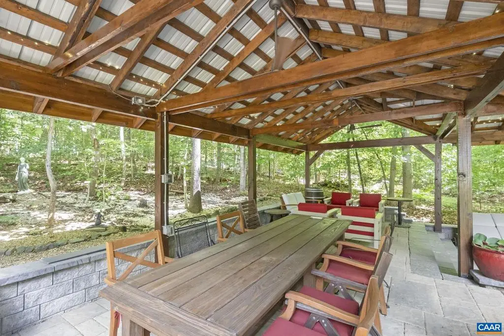 Soaked in natural light, this contemporary home invites the outdoors in with vaulted ceilings and walls of windows. The open main level blends comfort and style, with flowing living and dining spaces and a sleek kitchen made for gatherings. 3 beds & 3 baths, plus a flexible terrace-level bonus room with private entry. The large fenced area with two-stall barn is perfect for animals, gardening, or creative projects. Relax or entertain outdoors on the expansive deck, covered patio, or under the charming metal-roof pergola. Beautifully maintained with thoughtful updates throughout. See the updates and highlights sheet for the full list of improvements.,Marble Counter,Painted Cabinets,Wood Cabinets,Fireplace in Family Room