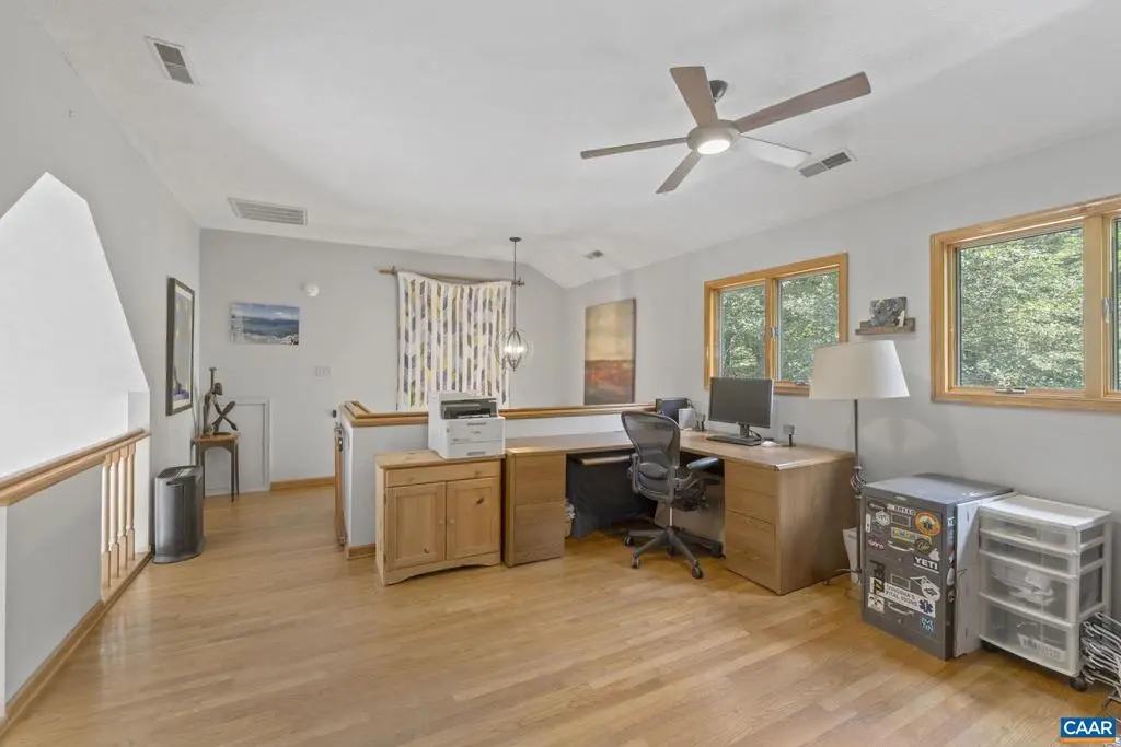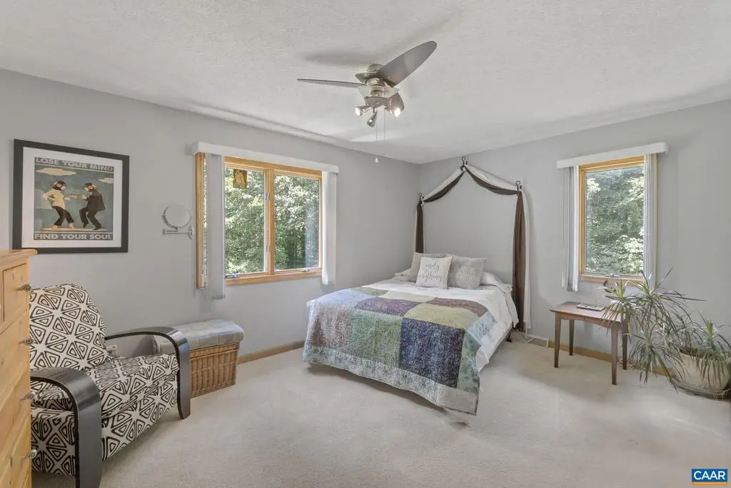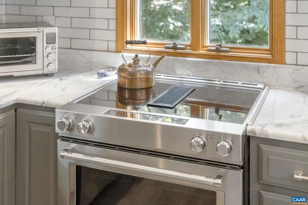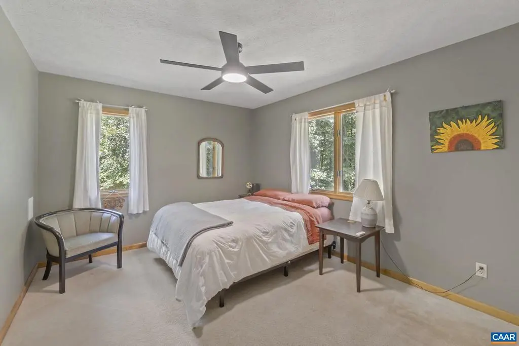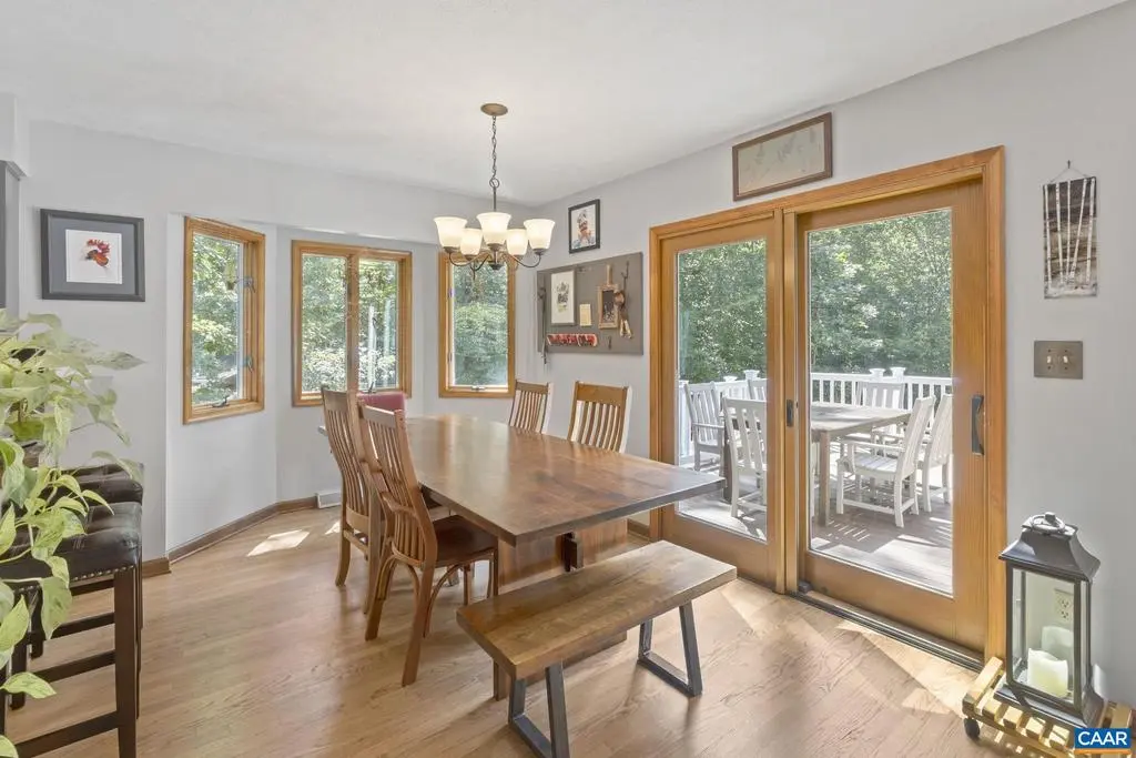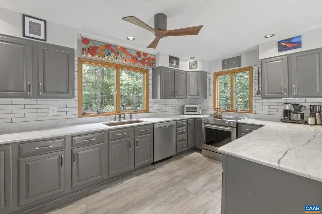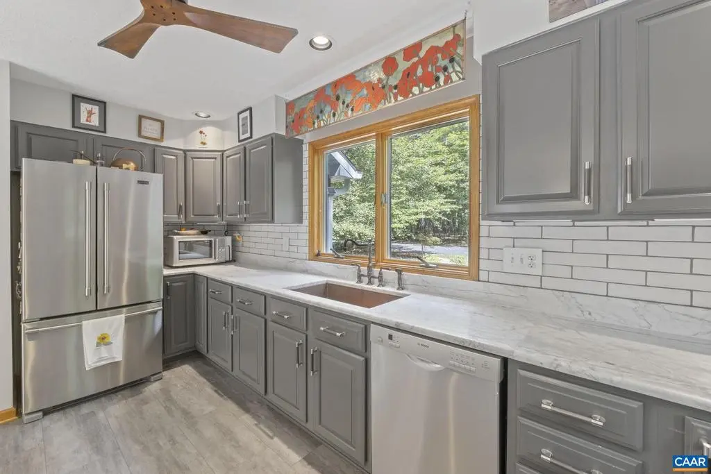Soaked in natural light, this contemporary home invites the outdoors in with vaulted ceilings and walls of windows. The open main level blends comfort and style, with flowing living and dining spaces and a sleek kitchen made for gatherings. 3 beds & 3 baths, plus a flexible terrace-level bonus room with private entry. The large fenced area with two-stall barn is perfect for animals, gardening, or creative projects. Relax or entertain outdoors on the expansive deck, covered patio, or under the charming metal-roof pergola. Beautifully maintained with thoughtful updates throughout. See the updates and highlights sheet for the full list of improvements.,Marble Counter,Painted Cabinets,Wood Cabinets,Fireplace in Family Room