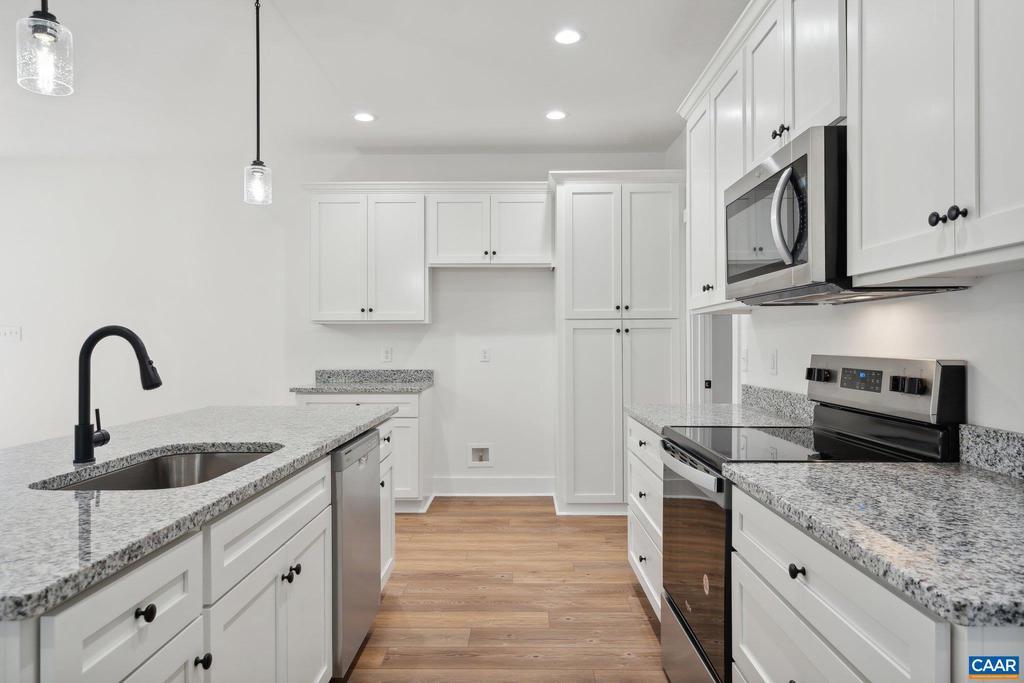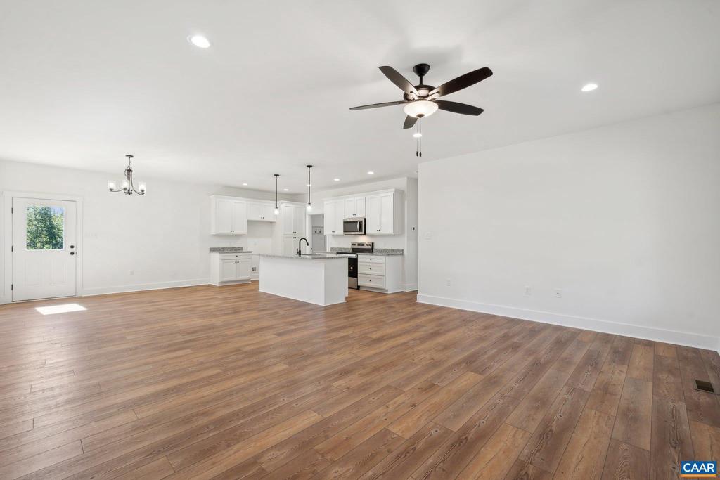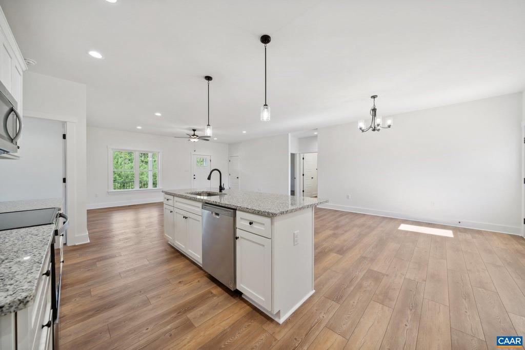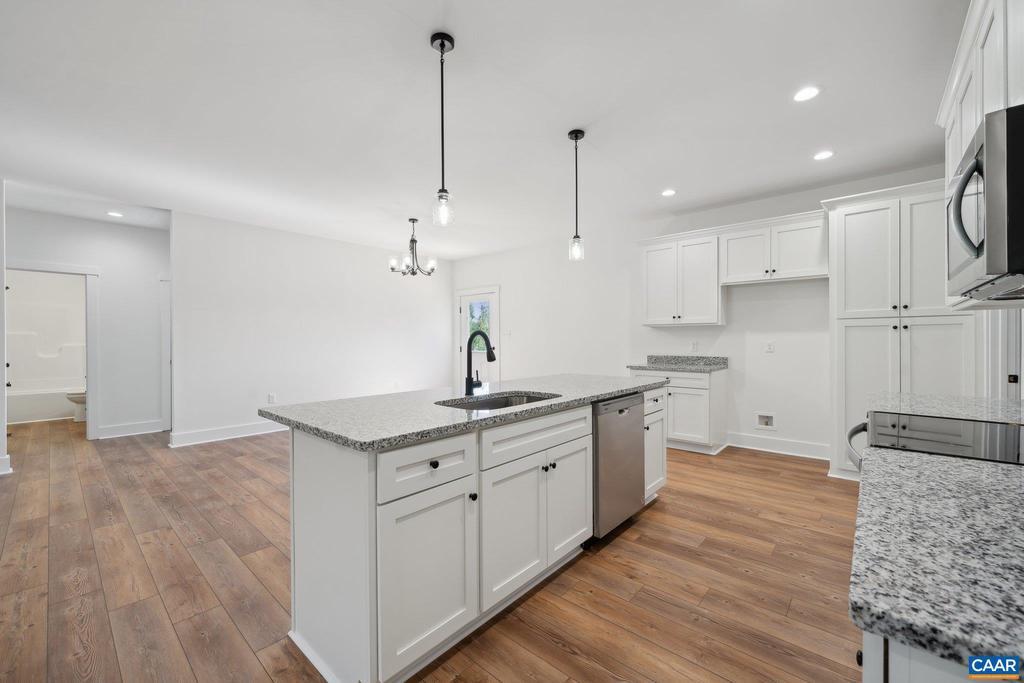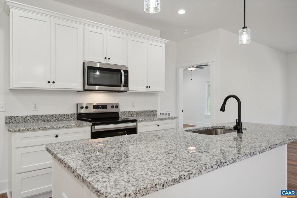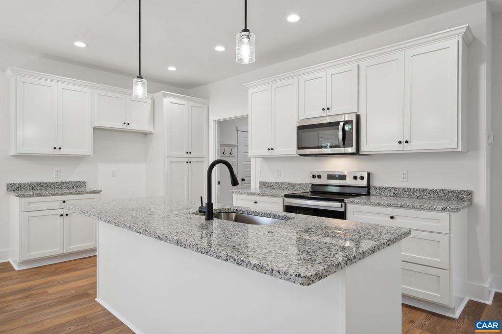Welcome to 2171 East River Road in lovely Fluvanna County. Known as "The Dillwyn I" this home is currently being built and is nicely situated on a 7+ acre lot. The home is 1600 square feet with 3 bedrooms, 2 full bathrooms, an attached 2 car garage, and has access to FIREFLY & STARLINK HIGH SPEED INTERNET. The main living area includes an open floor plan with luxury vinyl plank floors and flush mount LED lighting. Within the kitchen you'll notice a large island, granite counter tops, stainless steel appliances, pantry, & tons of storage space in the custom built cabinetry. The primary bedroom is located on the opposite side of the home from the other 2 bedrooms and offers an attached full bath with a double vanity, large shower, as well as a 7' x 12' walk-in closet. Other quality features include double hung windows, dimensional shingles, and a conditioned crawl space to name a few. Outside there is concrete sidewalk leading to the covered front porch (8' x 22'), and a 12' x 12' rear deck. The land is made up of mature woodlands, a gentle incline to the homesite, and has no restrictions. This is a great property to have privacy, recreate, live, and get away from it all. EST. COMPLETION: LATE NOV/EARLY DEC 2025. Plans, specs & pla,Granite Counter
