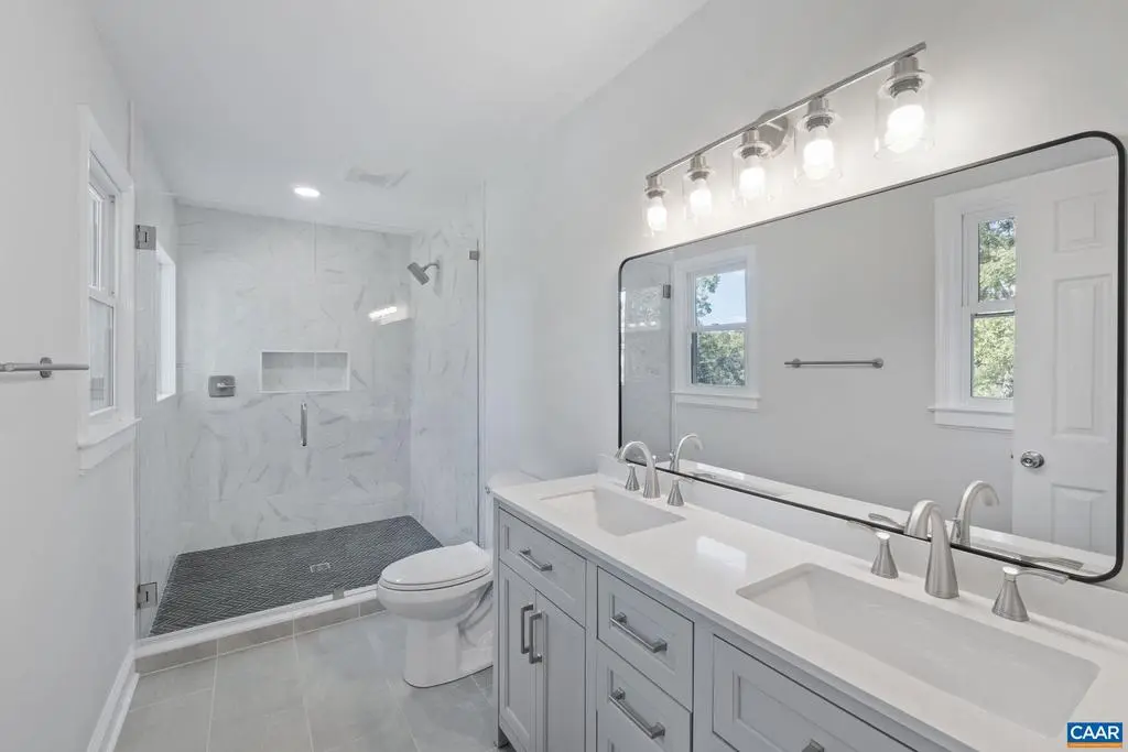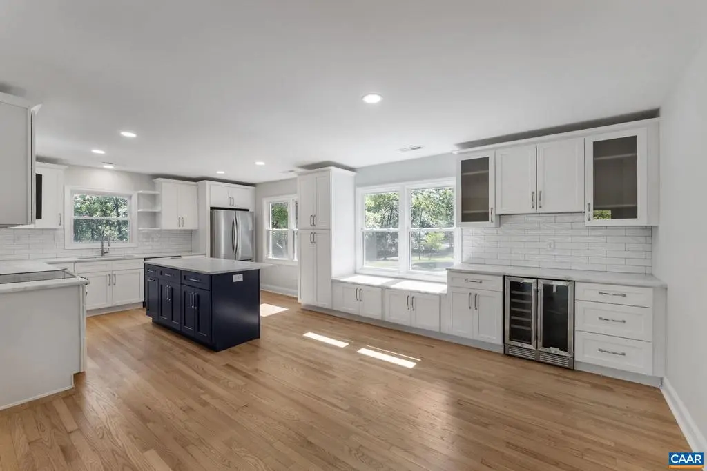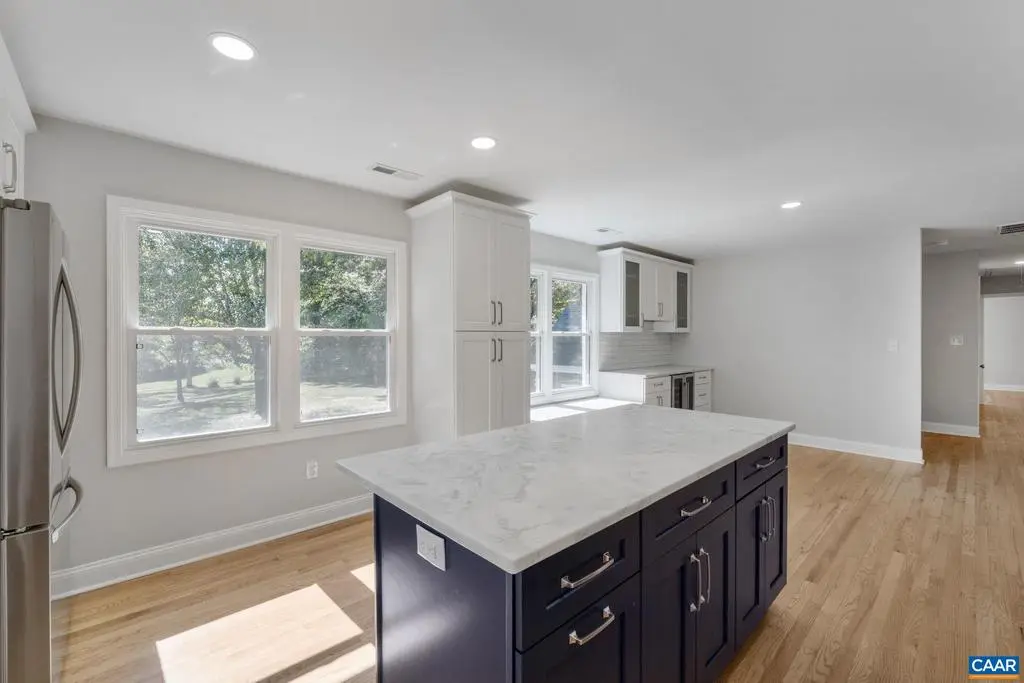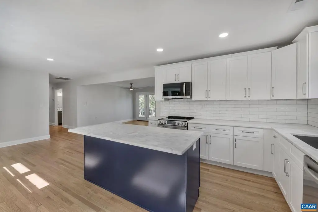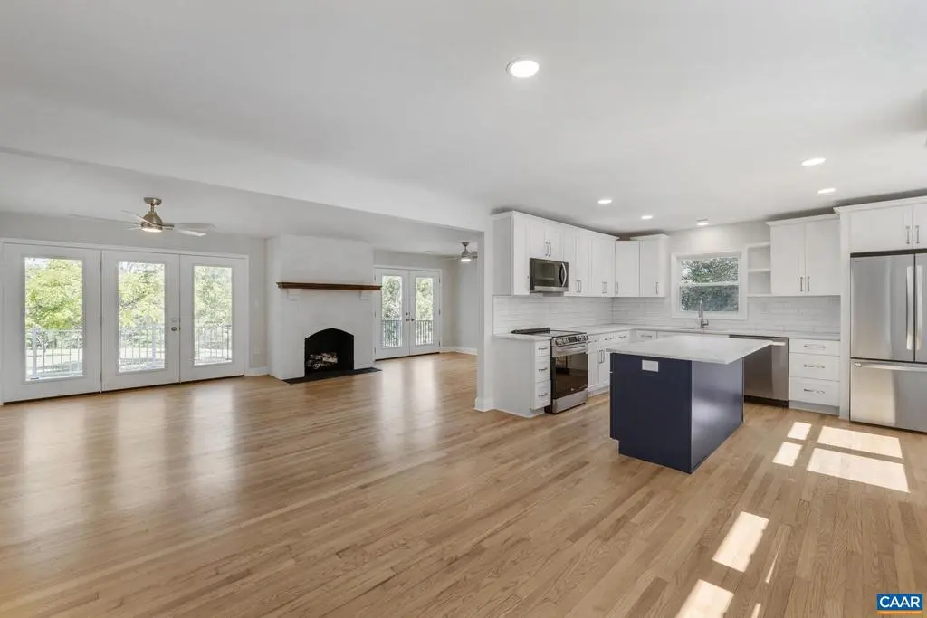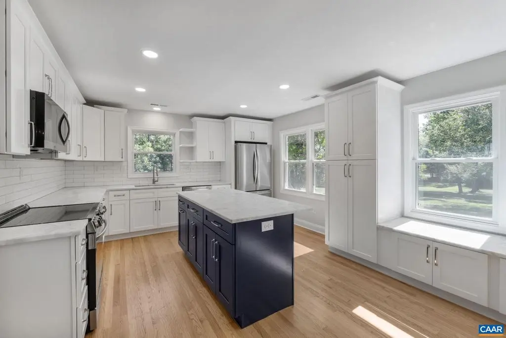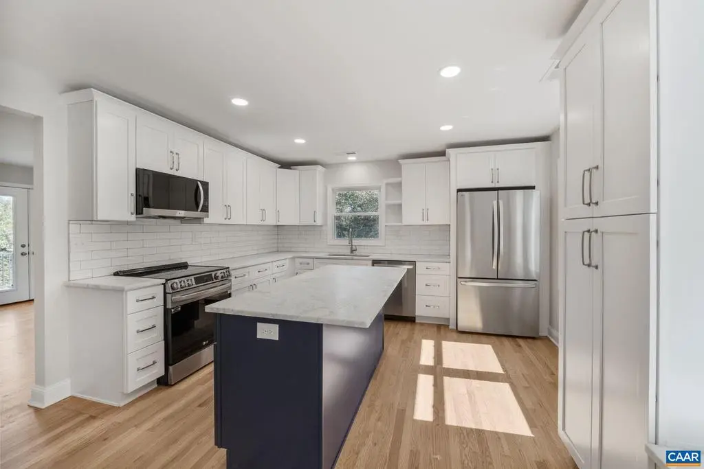 Completely renovated all-brick home in Southern Albemarle County on almost 7 acres. �This home is only 15 minutes from Charlottesville. �The split-level home has 5 bedrooms and 3 full baths. �Upstairs, there is a gorgeous kitchen with custom cabinets, granite countertops, an island with seating, a pantry with pull-out shelving, a wine fridge, and a beverage area. Dining area that looks into the kitchen and family room with a masonry wood-burning fireplace. �On this level, you will find the master suite with 2 closets (1 walk-in), double vanities, and a 5'x6' tile shower, plus 2 additional bedrooms and a full bathroom. �On the lower level, there are 2 bedrooms, 1 full bath, a family room, and a laundry room. 2-car garage in the basement. �On the rear of the home, there is a deck the length of the home with a patio below, plus a side patio. �3 outbuildings - one would be perfect as a small barn for farm animals. �The owner is a licensed realtor in Virginia.,Granite Counter,Fireplace in Living Room