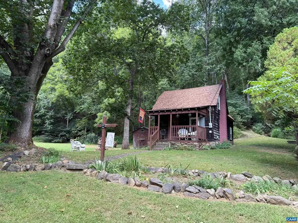 Who wouldn't want to relax in a comfy chair on the front porch of this cozy log cabin with 37 acres and long frontage on the South Fork of the Rockfish River? Undeniably charming 2 BR, 1 BA cottage with gorgeous rock gardens and spacious, open yard. All windows have just been replaced. There's also an old road that heads up the ridge to a beautiful building spot with potential for amazing valley and mountain views year round. And there is succesful soil work (perk) for a 3 or more bedroom home on that site. A picturesque walking bridge takes you to the cabin from Beech Grove Road and there is also a ford for bringing over equipment. A sweet, seasonal stream comes down to the right of the house and connects into the river. The owners have put together several spots in the surrounding yard and up and down the river for firepits, reading nooks, yoga and picnics. they have also added trails throughout the 37 acres for walking, exploring and hunting. Close to the Nelson 151 corridor with all its amazing breweries, cideries, wineries and restaurants. Located just minutes from Wintergreen Resort for dining, skiing, tubing, golf, tennis and hiking. This lovely offering is an absolute Nelson County treasure!
