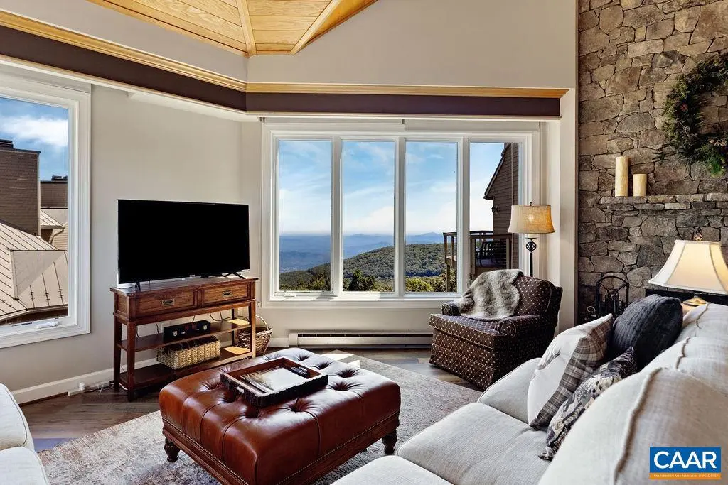 This stunning 4 bedroom view condominium is a rare opportunity, as few exist and aren't often available. The villa rests at the top of the building and offers elevator access for ease and convenience. Covered entry keeps you out of inclement weather upon arrival. Stepping inside, you'll find the property has been beautifully remodeled and tastefully furnished. A wood-burning, custom stone fireplace soars high into the vaulted ceilings. Large wall of windows in the living room allows the sunrises and mountain views to spill into the space. New composite decking. LVP flooring. Kitchen with granite and stainless steel appliances. Out of the 4 bedrooms in total, 3 of them are en-suite bedrooms upstairs, with one master bedroom on the main level as well. There's also a study/office on the main level, which could be utilized as a 5th bedroom. Excellent year round location, with easy access to golf, tennis, dining, spa and exercise facilities, hiking, etc. On the shuttle route for convenience to skiing in winter as well. Detached homes with this view easily require a 1.5-2 million budget, making this property an easy choice in comparison. Turnkey, furnished and ready to be enjoyed. Don't miss this rare opportunity.,Granite Counter,Oak Cabinets,Fireplace in Living Room