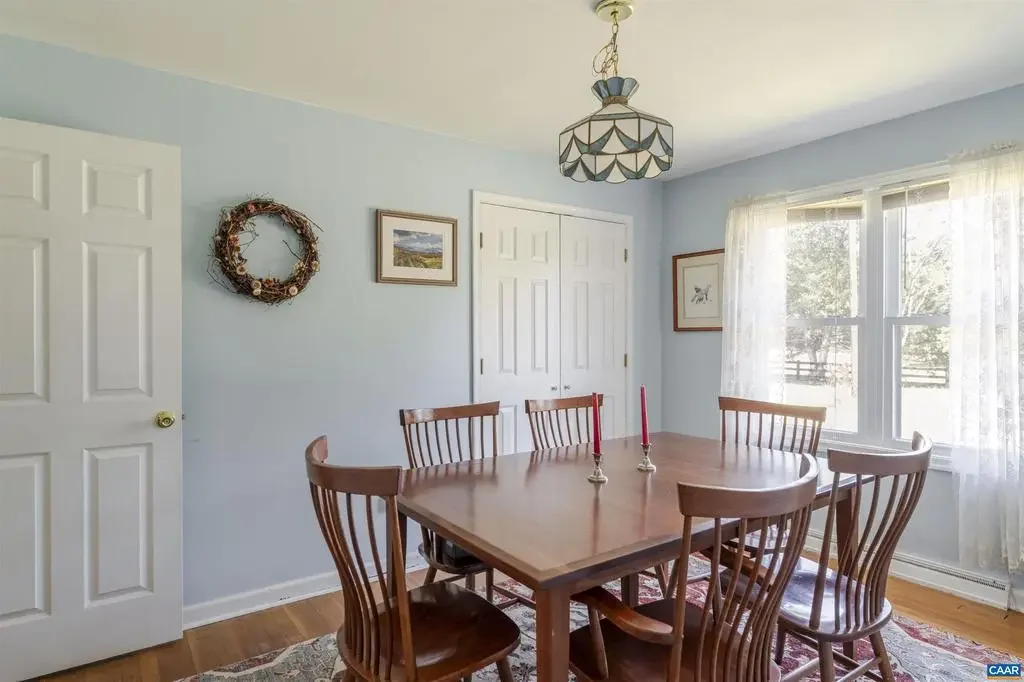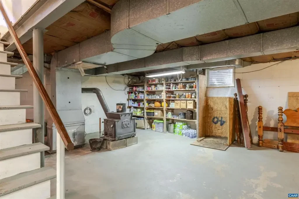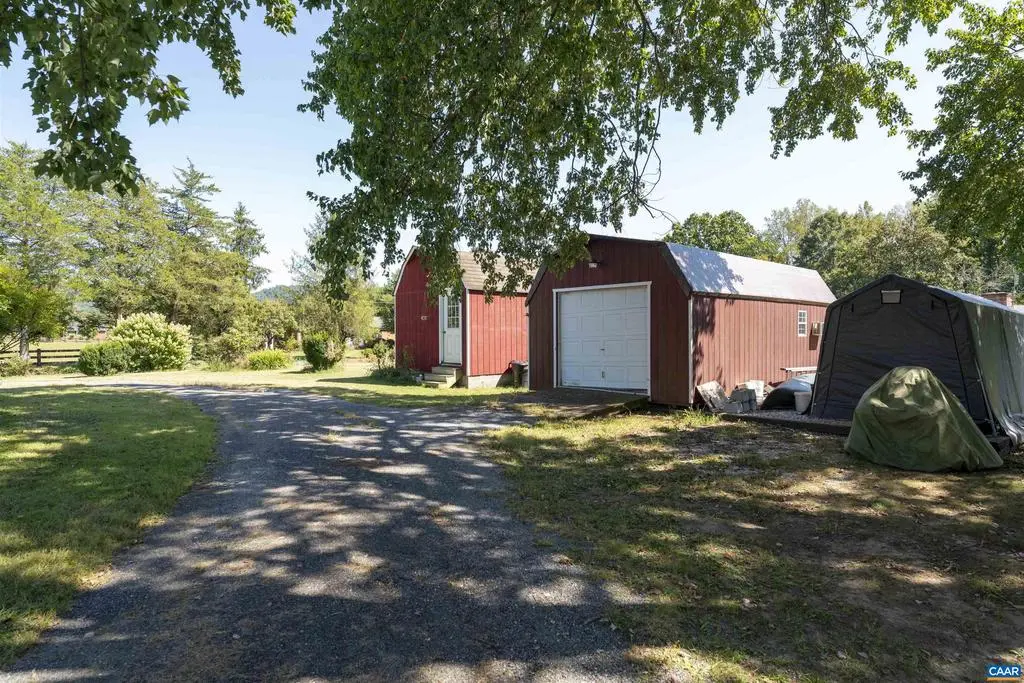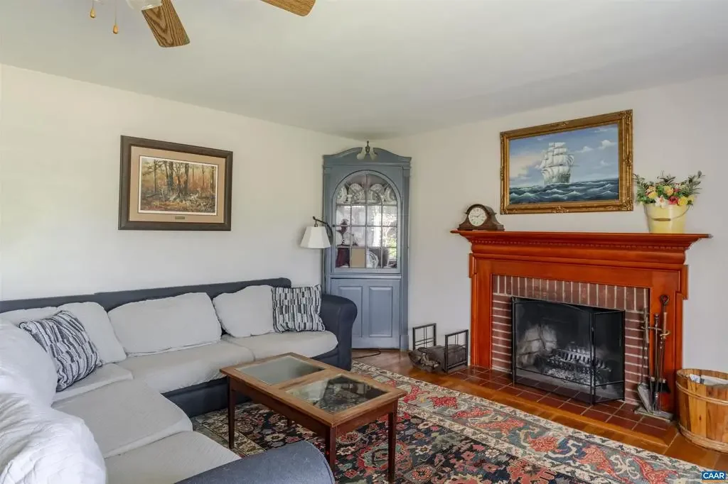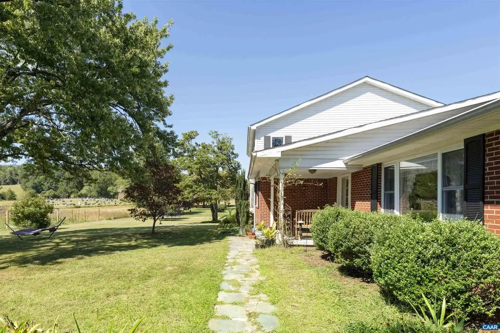 Expansive and comfortable home on 4.4 acres in a beautiful area of Nelson County, with stunning Blue Ridge views. Solidly built brick ranch with a 2-story addition contains all the space you could possibly need. 3 bedrooms, offices, bonus rooms, dining room, spacious kitchen, and living room with wood-burning fireplace (brand-new stainless-steel liner). Abundant storage in unfinished basement, plus 2 storage sheds (one has electric, insulation, and Air Conditioning) and a 10x20 equipment tent, whole house generator. The front yard has a magnificent Maple tree, and views of The Priest and Three Ridges, Nelson Co.'s most prominent mountains. 4.4 acres includes pasture area, 40x80 fully fenced garden plot, 75 native trees and shrubs just planted, .2-acre native wildflower meadow, 10x12 secure chicken run, hundreds of flower bulbs, and a year-round stream on one boundary. Professionally installed underground electric dog fence. If you are looking for a small homestead, or just easy country living in a beautiful and peaceful setting, this is the spot.,Formica Counter,Oak Cabinets,Fireplace in Living Room