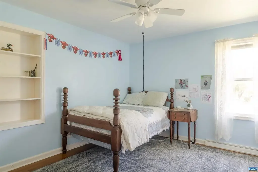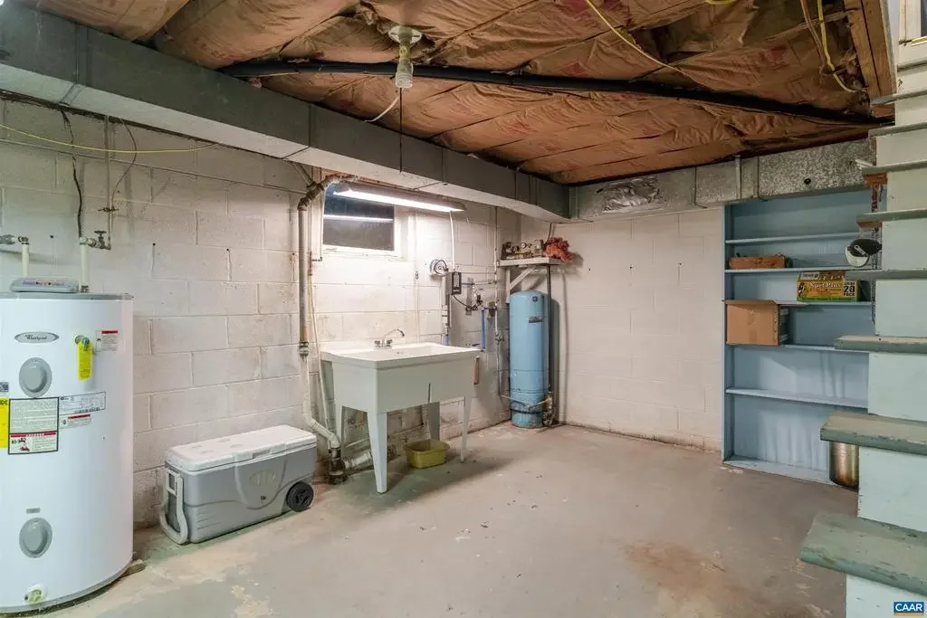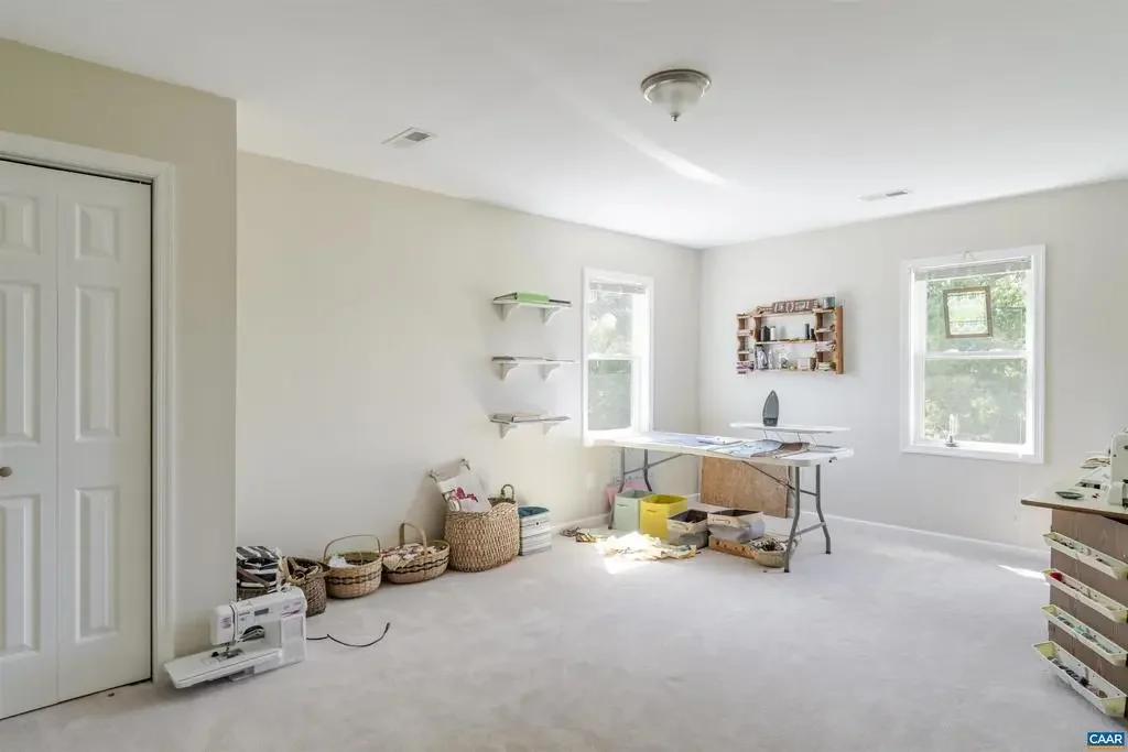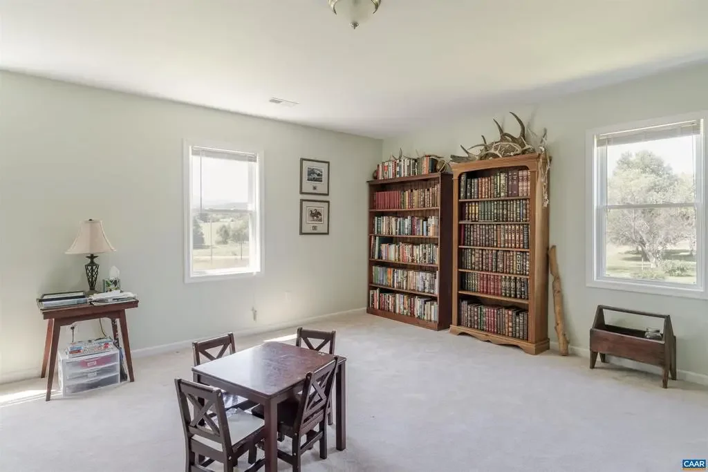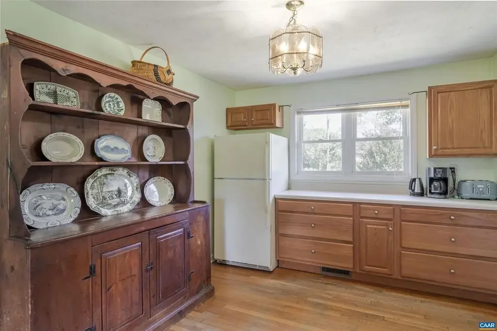Expansive and comfortable home on 4.4 acres in a beautiful area of Nelson County, with stunning Blue Ridge views. Solidly built brick ranch with a 2-story addition contains all the space you could possibly need. 3 bedrooms, offices, bonus rooms, dining room, spacious kitchen, and living room with wood-burning fireplace (brand-new stainless-steel liner). Abundant storage in unfinished basement, plus 2 storage sheds (one has electric, insulation, and Air Conditioning) and a 10x20 equipment tent, whole house generator. The front yard has a magnificent Maple tree, and views of The Priest and Three Ridges, Nelson Co.'s most prominent mountains. 4.4 acres includes pasture area, 40x80 fully fenced garden plot, 75 native trees and shrubs just planted, .2-acre native wildflower meadow, 10x12 secure chicken run, hundreds of flower bulbs, and a year-round stream on one boundary. Professionally installed underground electric dog fence. If you are looking for a small homestead, or just easy country living in a beautiful and peaceful setting, this is the spot.,Formica Counter,Oak Cabinets,Fireplace in Living Room