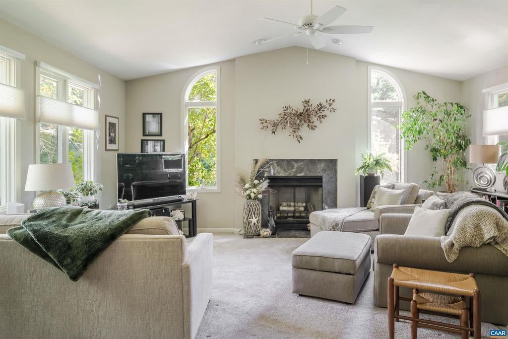 Open 9/28 2:30-4:30....Custom built, one owner home....A very special home both in quality and design...Gracious entry foyer...Dramatic and comfortable great room with vaulted ceiling, a wall of windows, and wood-burning fireplace...Tastefully redesigned and remodeled...Bright kitchen with large pantry(washer & dryer could be here)...2 Primary suites with very nice baths... Fabulous exterior living space with multiple gardens and gardening shed...One step up and down to 3 level decks...Easy access to the home through the side door... Roof replaced 2024... terraced deck 2021...Fountain in garden will convey...Beautifully set on a knoll, across from the Greene Hills Golf Course, down a quiet lane...,Quartz Counter,White Cabinets,Fireplace in Great Room