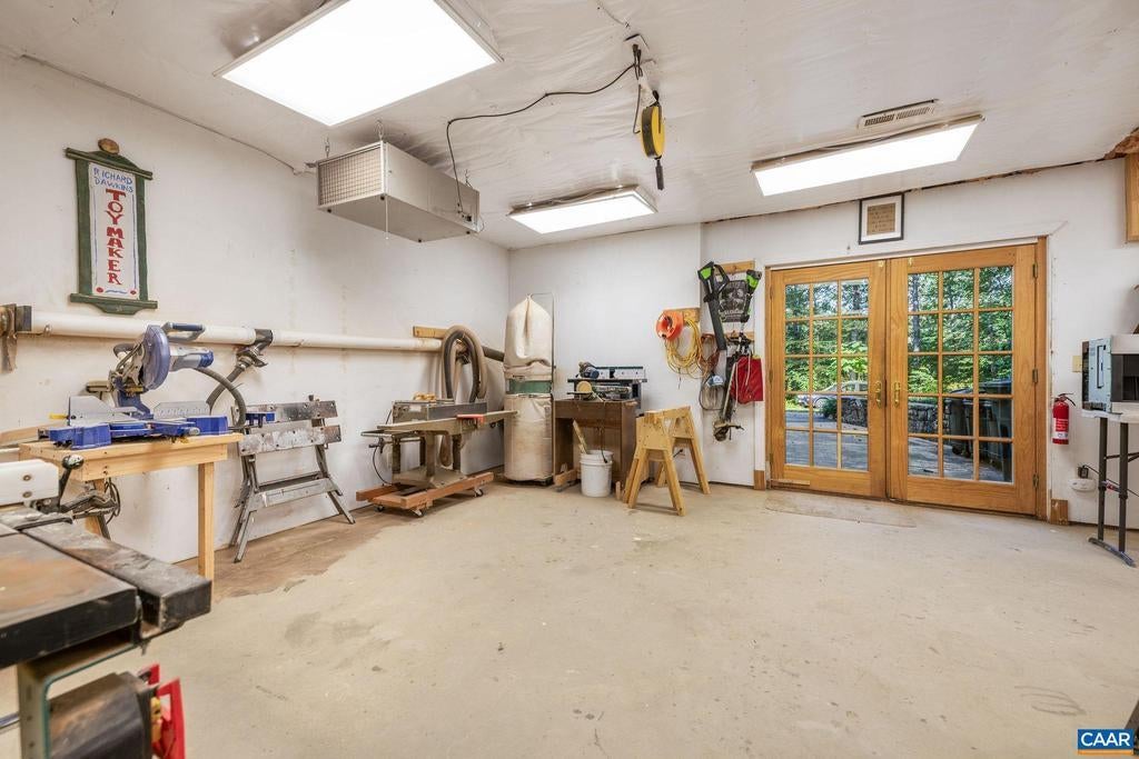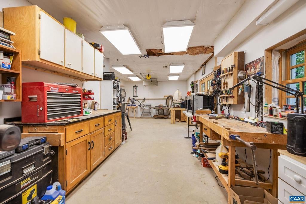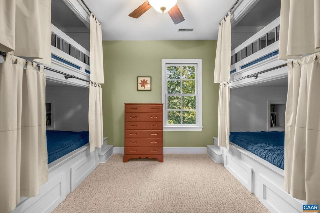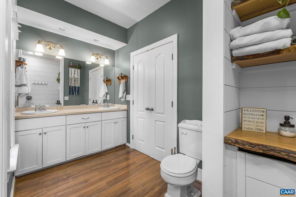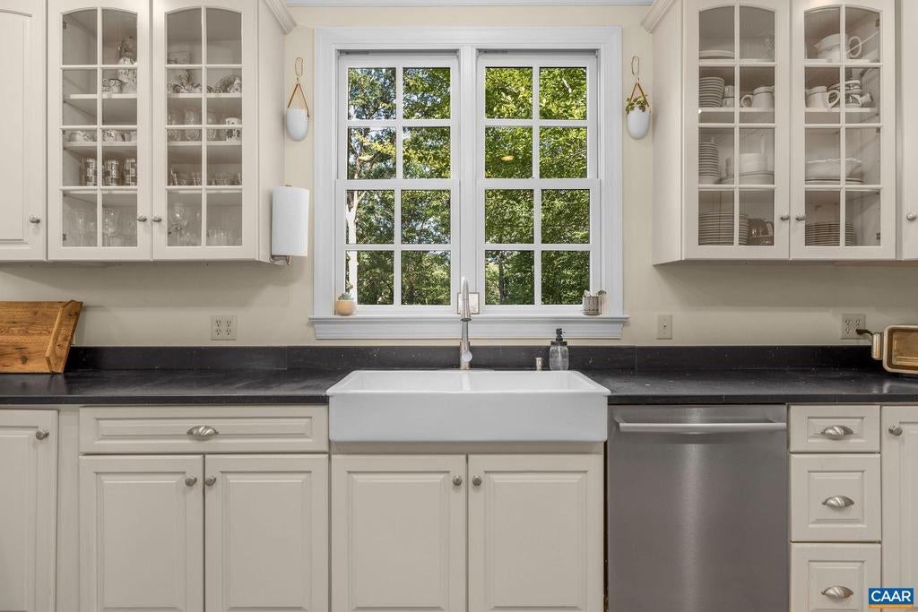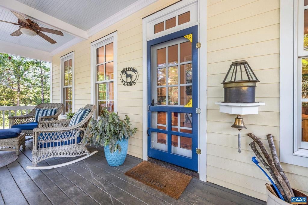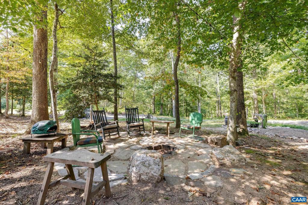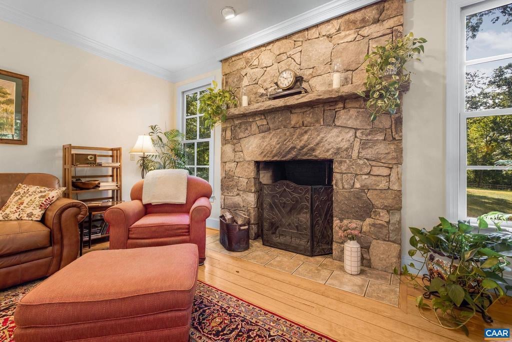 CHESMONT is an inviting country retreat, 18 miles south of Charlottesville, in the quiet hamlet of Esmont. The property blends rural charm with surprising versatility. The main residence offers generous living space anchored by a bright open-concept kitchen/dining/living area - perfect for gathering. A first-floor primary suite provides convenience, while the sun-filled first-floor Office invites creativity. Upstairs you?ll discover bedrooms and a family room with four built-in bunkbeds, plus a hidden play nook disguised as a closet, making the home especially fun for young visitors. Front and back porches offer extra living space in shade or sun. Terrace level includes a workshop and sewing room, ideal for hands-on projects and hobbies. Beyond the home, the Cottage with Garage creates flexible space for guests, extended family, or rental income. A substantial Barn (C: 2022) and chicken coop add to the property?s utility, while the current owners? craftsmanship shines through in a stacked-stone water feature, fire pit, and multiple gathering spots around the grounds. With room to breathe, space to create, and thoughtful touches throughout, "Chesmont" is more than a property - it's a lifestyle. Come see what all the fuss is about!,Fireplace in Living Room