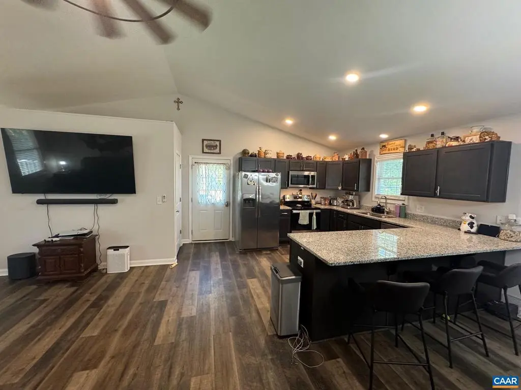 Beautiful move-in rambler on close to 2.7 acres. NO HOA. Privacy awaits on this 4-year young home. Main level offers 1400 finished square feet with 3 bedrooms and 2 baths. Open floor plan with vaulted ceiling in living/dining area. Granite counters in spacious kitchen with stainless steel appliances. Additional 1300 square feet in unfinished walk-out basement. Double hung tilt windows, covered front porch, Trane XR-14 efficiency heat pump, Moen faucets, 6-panel interior doors, ceiling fans plus fenced backyard.,Wood Cabinets