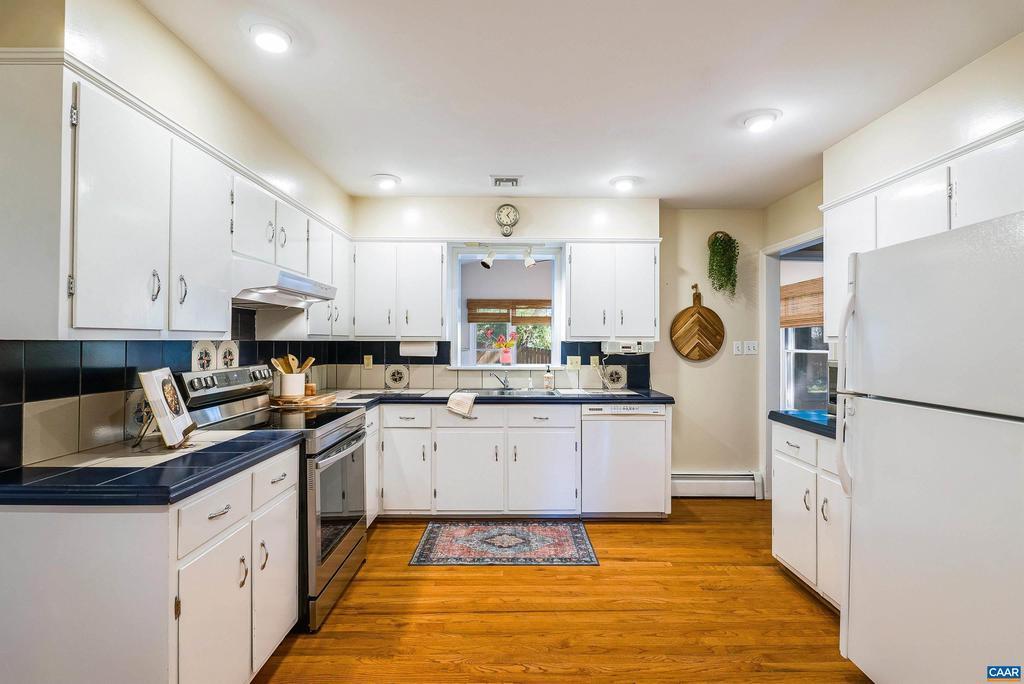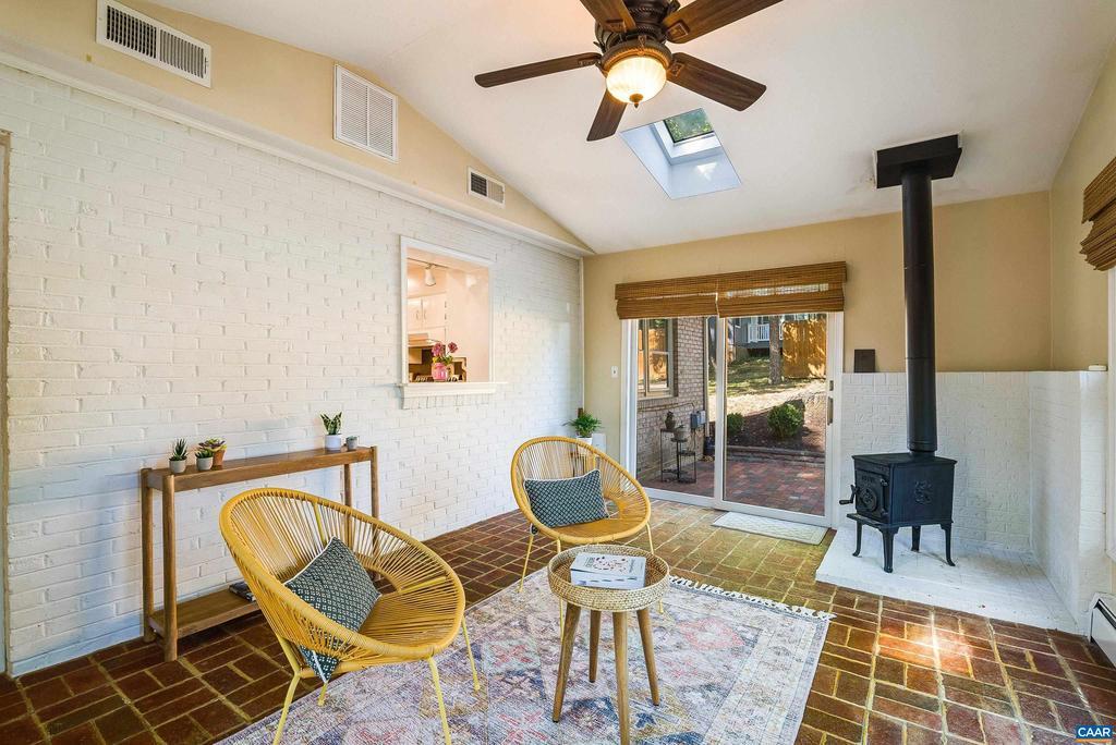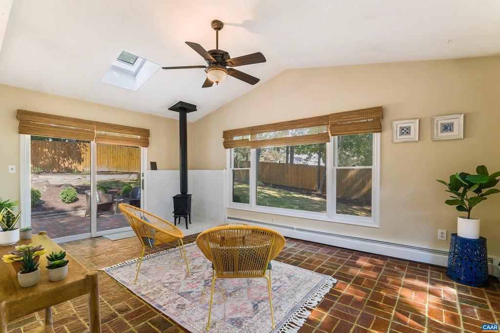 Tucked away at the end of a quiet cul-de-sac, this brick home offers both privacy and convenience in the desirable College Park neighborhood. The main level features a spacious living room and formal dining room, all with gleaming hardwood floors. The eat-in kitchen also includes hardwood flooring and a pass-through to the sunroom. With its vaulted ceiling, walls of windows, and a Norwegian Jotul wood-burning stove, the sunroom provides a bright and cozy retreat overlooking the private fenced backyard and patio. The primary suite offers a full en suite bath with marble flooring, while two additional bedrooms and a hall bath complete the main floor. Downstairs, brand-new waterproof LVP flooring flows throughout a generous family room with built-in shelves, cabinets, and a wet bar?perfect for entertaining. A fourth bedroom or office/study and a half bath provide flexible living space. With three distinct living areas?living room, sunroom, and family room?this home offers plenty of room to gather or spread out. Additional highlights include a garage and attic for storage, a storage shed that conveys, a brand-new roof, a new garage door opener, and a radon mitigation system for peace of mind.,Tile Counter,White Cabinets,Fireplace in Family Room,Fireplace in Living Room