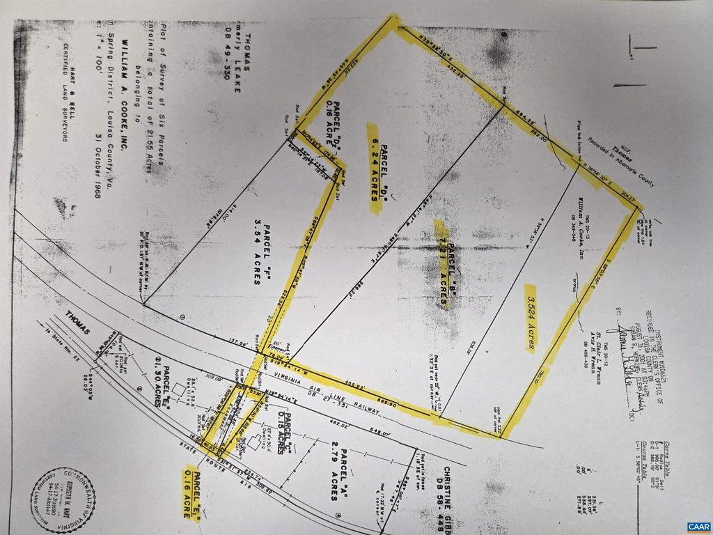 Investment Opportunity! Owner will consider financing with 25% down. This 17+ acres is currently in 4 different tax parcels. The plat shows a 20 foot easement connecting the road frontage parcel to the back parcels. The land is primarily mature hardwoods and beautiful! No soil work has been done but the soil maps show excellent perk potential on all lots. This land has easy access to State Route 22 and is only 15 minutes from Charlottesville! Don't miss out on this one.
