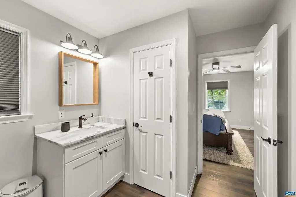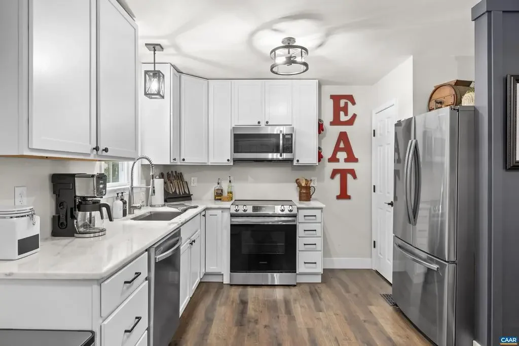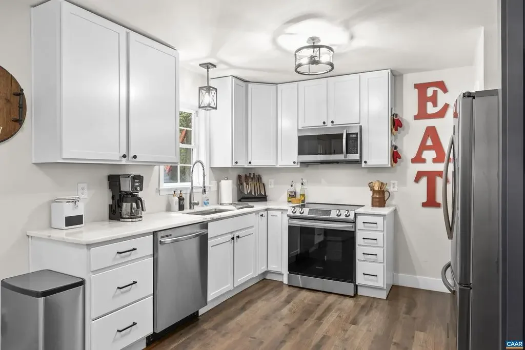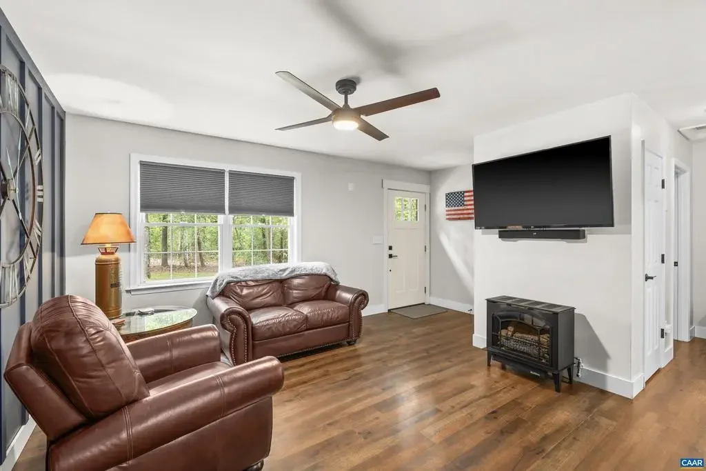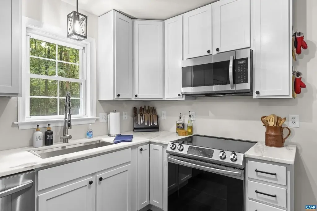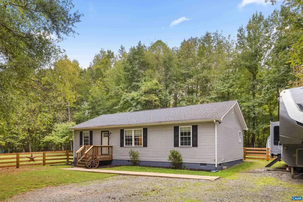 This beautifully renovated home blends modern finishes with the tranquility of country living on a sprawling 3.26-acre wooded lot. Nearly level and partially fenced, providing space for outdoor activities, pets, or gardening. The interior features three thoughtfully designed bedrooms and two bathrooms for comfort and privacy. Every detail has been carefully chosen, from stylish hardware, white kitchen cabinets with soft-close drawers and granite counters, to high-end stainless appliances and luxury vinyl plank flooring throughout. The living room is anchored by a cozy gas fireplace, and the primary bathroom offers a custom, tiled walk-in shower for a spa-like retreat. All hardware and light fixtures have been updated, lending a fresh, contemporary feel to the home. Outdoor living is equally impressive with a back deck, large patio, mature trees for year-round privacy, and a shed that conveys for extra storage. New roof, encapsulated crawlspace, and a 50amp plug for your RV needs. This move-in-ready property represents the perfect opportunity for those seeking both generous acreage and refined modern comforts. Just minutes from I64 for an easy commute. No HOA, and Firefly high speed internet for all of your streaming needs!,Granite Counter,White Cabinets,Fireplace in Living Room