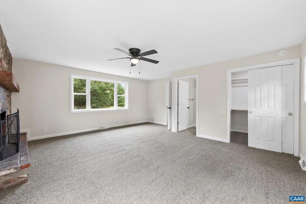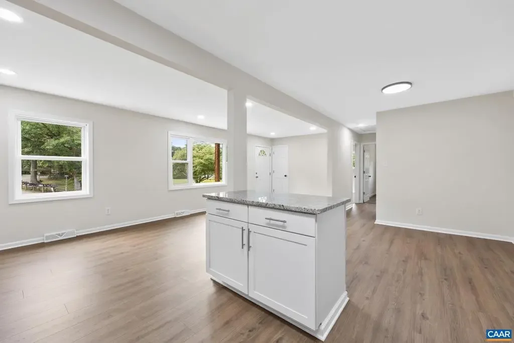 Experience one-level living in this fully remodeled brick ranch, perfectly situated on 1.5 acres in Louisa. This is a truly move-in-ready opportunity! The light-filled, open concept home has a connected living room, dining area, and the full updated kitchen with new granite countertops, white cabinetry, modern tile backsplash, and stainless steel appliances. Retreat to the primary suite, featuring a cozy fireplace, a walk-in closet, and an updated private bath. Two additional bedrooms have new carpet and share a remodeled full bath. Practicality meets curb appeal with a two-car carport that doubles as a covered porch area. The expansive 1.5-acre lot is flat and landscaped, offering a perfect setting for outdoor enjoyment. Don't miss this blend of country tranquility and convenient access to Charlottesville!,Granite Counter,White Cabinets,Fireplace in Master Bedroom