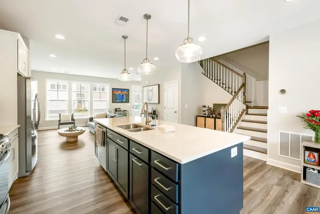 Discover modern elegance in Preston Lake. This nearly new 3-bed, 3-bath townhome offers 1,866 sq ft of refined living with soaring ceilings, stone countertops, stainless steel appliances, and a finished lower level. The owner?s suite is a serene retreat, complemented by an attached two-car garage for ease and convenience. Beyond your door, enjoy resort-style amenities including a clubhouse, pool, fitness center, trails, and beautifully maintained grounds. A rare opportunity to blend low-maintenance living with comfort and luxury in the heart of Rockingham.,Quartz Counter
