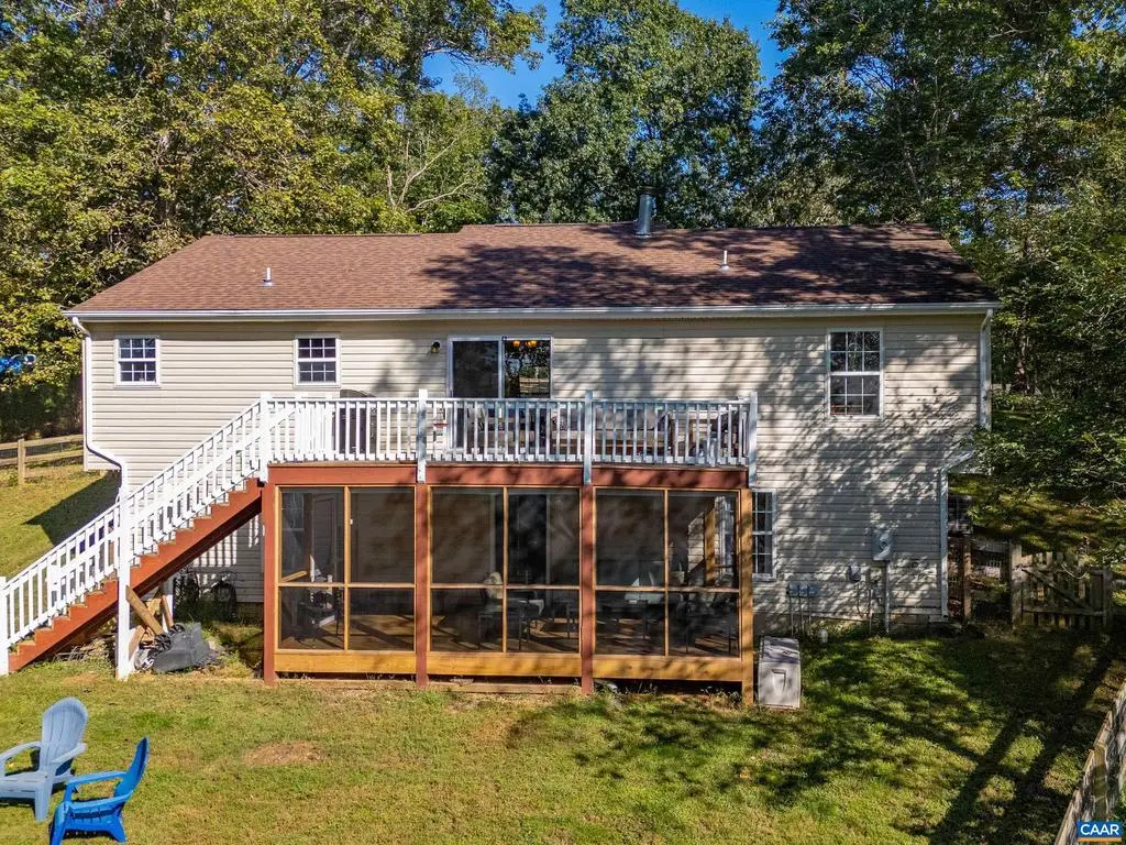 Welcome to your dream lakefront retreat on Lake Skyline in Twin Lakes Estates! This beautifully updated contemporary ranch offers the perfect blend of charm, functionality, and stunning views. Step inside to discover an open-concept main level with hardwood floors throughout, a bright living area, and a stylish kitchen featuring new quartz countertops and a new dishwasher. The owner?s suite has an en suite bathroom with great linen storage. Enjoy lake and mountain views from the back deck or unwind on the brand-new screened porch overlooking the water. The newly built dock is perfect for launching kayaks, casting a line, or simply relaxing by the lake. A fully fenced backyard makes the home ideal for pets and outdoor gatherings. The finished basement offers incredible flexibility?use it as an in-law suite, guest space, or a private home office. It boasts a very spacious multi-use family room, plus a potential bedroom and a small sewing/craft room. Outside, the property shines with a welcoming driveway offering plenty of parking, new wooden steps leading to a reimagined front porch, and a large detached workshop with electricity for projects and storage. Located just minutes from Route 33, Standardsville, and Ruckersville.,Quartz Counter,Wood Cabinets,Fireplace in Living Room