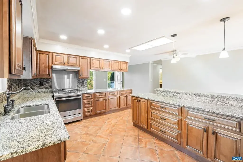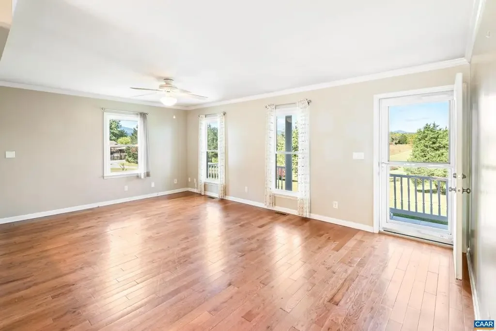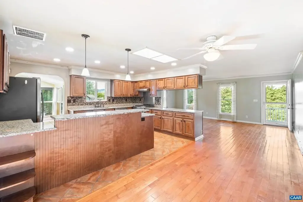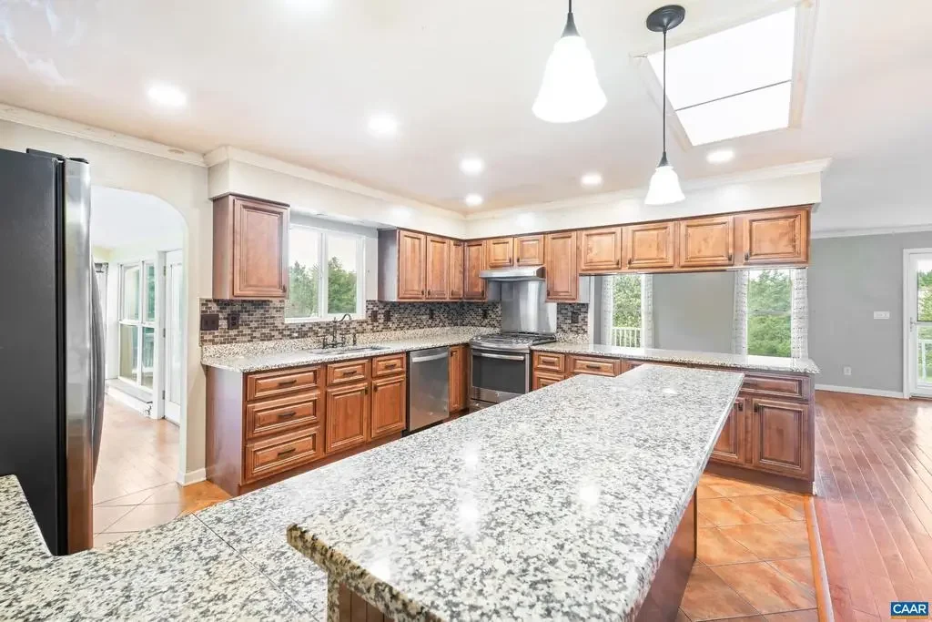 OPEN HOUSE SUNDAY, 11/16/25. 12-3pm You'll find plenty of elbow room on this beautiful 4+ acre lot which offers plenty of options for gardens and fruit trees and the mountain views are a nice bonus! This home has a gorgeous kitchen with granite counters, beautiful wood cabinets, SS Appliances and plenty of space to move around. Just off the kitchen is a spacious sun room that walks out to an open deck - the perfect spot for grilling. There is a covered front & back porch and another covered deck off of the primary bedroom - so many places to relax and enjoy the peaceful country setting. The main level enjoys 3 spacious bedrooms and 2 full baths and beautiful wood floors throughout - no carpet! The Primary Bedroom is huge with a wonderful walk-in closet and gorgeous primary bath. The finished basement has a huge great room with an additional bedroom and full bath. Outside is a detatched 2 car garage. Updates include fresh paint on main level 2025, new roof on house and garage in 2019, new Pella windows in 2019, new hot water heater in 2024, new dishwasher in 2024, new HVAC system in 2024, new gas range and refrigerator in 2017. All the big stuff has been done so come on out and see if this Greene County Gem is right for you!,Granite Counter,Wood Cabinets,Fireplace in Basement