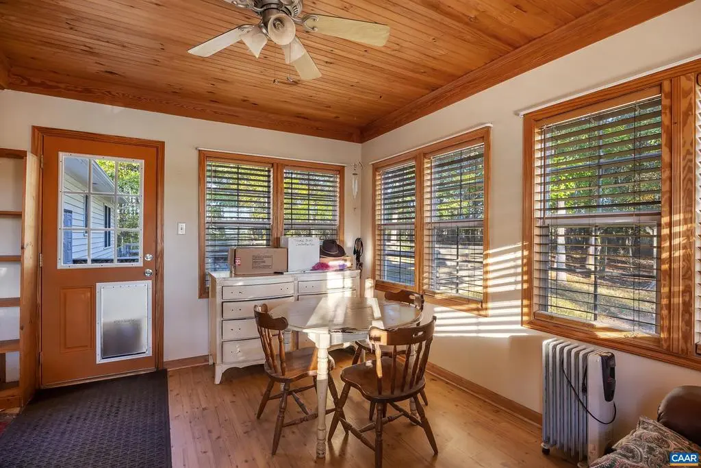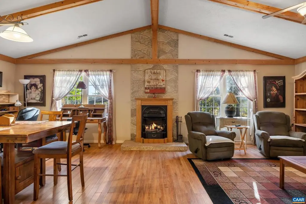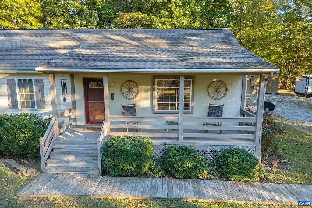 Welcome to this rustic retreat set on over 5 private acres, conveniently located just minutes from I-64. This 3-bedroom, 3-full-bath home offers an inviting open layout with raised ceilings and a stunning gas stone fireplace as the centerpiece of the living area. Enjoy the natural light in the sunroom, perfect for relaxing or entertaining. The home features two primary suites, each with its own private bath, ideal for multi-generational living or guest comfort. Outside, you?ll find a fully fenced yard, 24x32 workshop with power, plus a separate shed and carport?perfect for hobbies, storage, or equipment. Experience peace and privacy with modern conveniences in this charming country escape.
