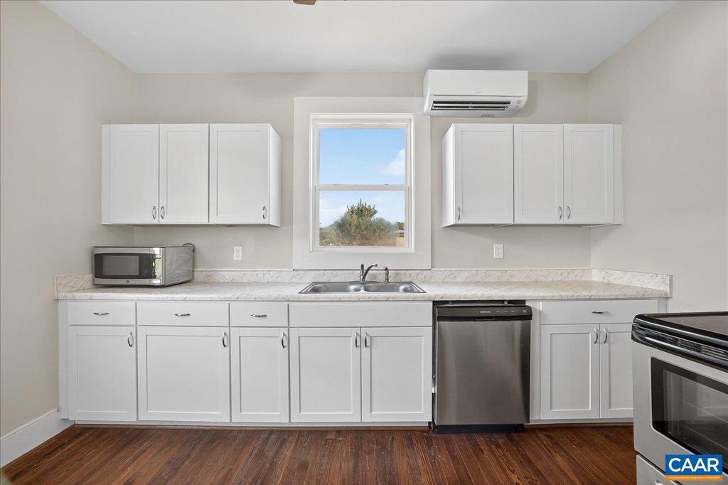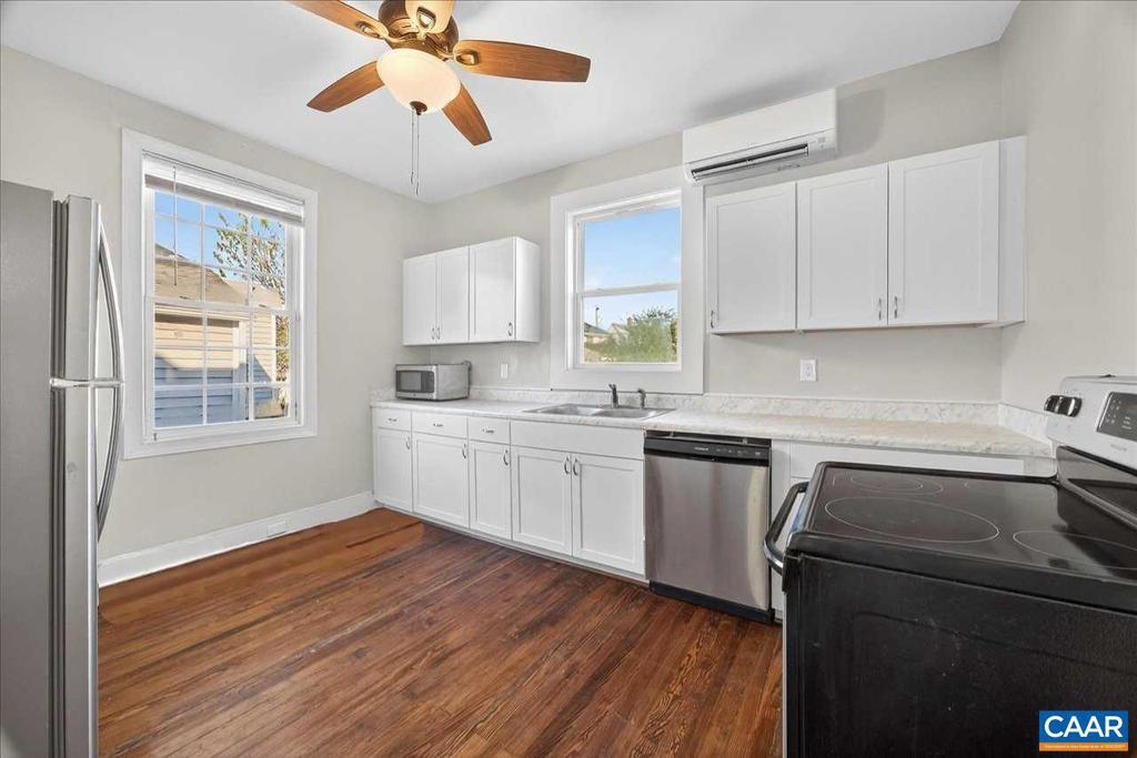 Seeking Staunton charm and convenience at an affordable price point? This is your gem! This 3-bed, 1-bath home is recently renovated with refinished original hardwood floors, fresh paint, updated kitchen and bath, and ceiling fans in nearly every room. The entire home has new wiring and runs off a newly upgraded 200A service panel. A 5-zone Mini-Split system provides AC and heat to each bedroom, kitchen, and living room for year-round comfort. The front and back yards are fully fenced in, perfect for kids and pets. The outside of the home has a 2 year old upper roof. Enjoy outdoor sittin' or BBQs on both the front/side porch and rear deck. One bedroom and bathroom are on the main level, along with washer/dryer to make this home suitable for single-level living. Only 1/2-mile walk to Wilson Park, and less than 1-mile to all the perks of downtown Staunton, this location can't be beat! Seller is offering a $2500 credit to be applied toward either appraisal repairs or buyers closing costs your choice! Lets make you a homeowner or first time investor today!!,Formica Counter
