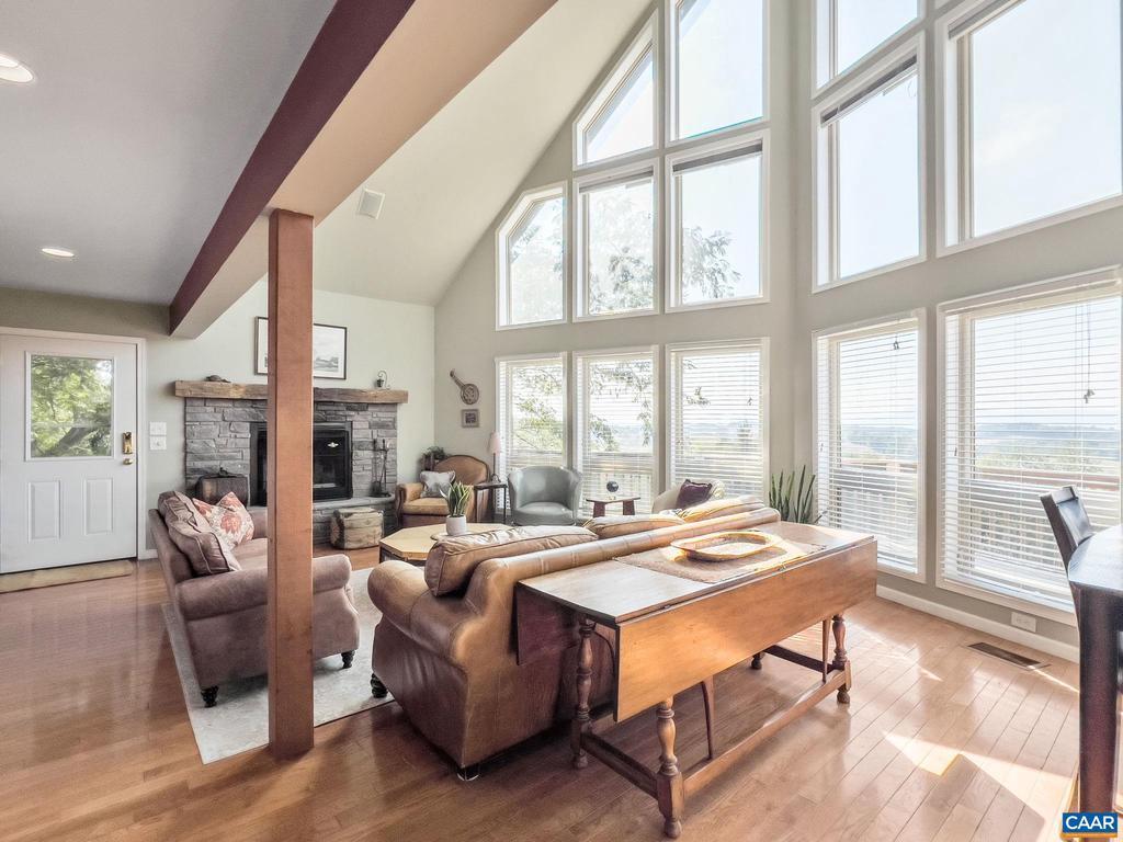 Extraordinary views abound from this beautiful property, conveniently located close to the interstate, Staunton, and Lexington. The custom-built home maximizes your enjoyment of breathtaking mountain views. While the thoughtfully planned design maximizes views of the mountains, you will also enjoy a smart floor plan that includes an open concept in the main living space, generous-sized rooms, deep closets in the bedrooms, plenty of space to spread out, and an ample amount of storage space. The living room features mountain views, a stone hearth fireplace with railroad tie mantel, and easy flow to the kitchen/dining area and wrap-around porch. The kitchen features plenty of cabinetry and countertop space, a breakfast bar, and overlooks the dining/living areas. The second level includes a large primary bedroom with sitting area, and a primary bathroom with an elevated garden tub to enjoy mountain views. A loft is located on the 2nd level, and is great for a sitting/reading area, a home office, and more! Mountains views and plenty of natural light continue at the terrace level, where you will enjoy a gas-log fireplace, large den, and wet bar/serving area, plus a full bath, bedrooms and storage area. So much to love about this home!,Formica Counter,Oak Cabinets,Fireplace in Basement,Fireplace in Great Room