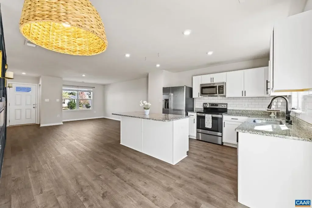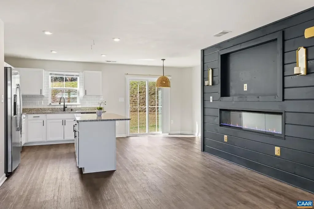 Built in 2020, this lovely 4 bedroom, 2.5 bath home offers the perfect blend of contemporary design and timeless charm. Step inside to discover brand new luxury vinyl plank flooring, fresh carpet, granite countertops and new cabinet hardware. The inviting open concept living, kitchen, and dining spaces boasts a custom feature wall with an electric fireplace creating a warm and stylish gathering space. The primary bedroom also showcases a unique accent wall adding personality and elegance. Enjoy peaceful mornings and relaxing evenings in the backyard which looks onto a peaceful wooded area. This Oxford Hills home sits at the back of the neighborhood and offers privacy. It's a short drive to the airport, NGIC, UVA, and shopping.,Granite Counter,White Cabinets