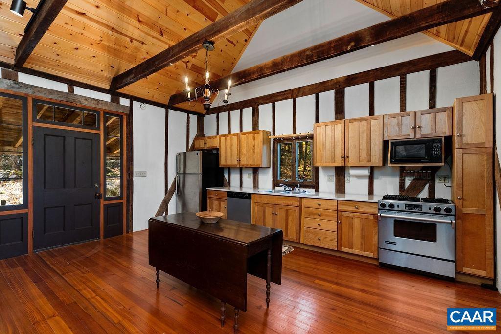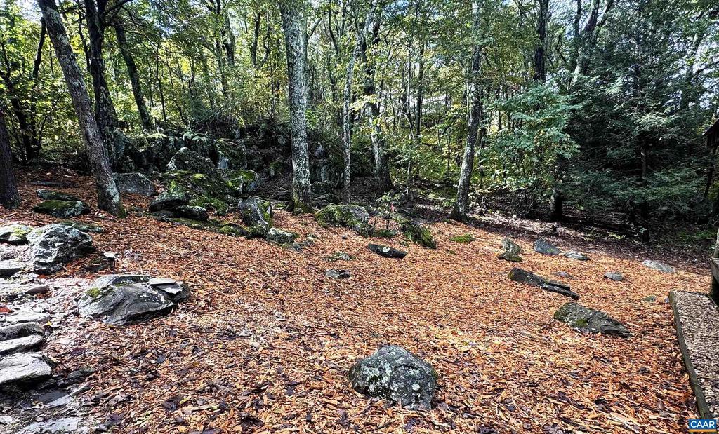 There is truly nothing else like this at Wintergreen?an authentic circa 1801 log cabin, originally built in Madison County and reconstructed in 2000 by renowned builder Lewis Ramsey and his son, Luke. Featured in Historic Preservation Magazine for his craftsmanship, Ramsey used hand-hewn chestnut, poplar, and oak logs that reflect early Virginia building traditions. The kitchen, a historic structure of similar age moved from Nelson County, blends beautifully with the cabin. Master stonemason Jimmy Arrington created the striking dry-stack fireplaces, while the standing-seam copper roof by Harold Conley & Sons and reclaimed heart-pine floors on the main and upper levels add exceptional warmth and character. Highlights include four fireplaces (two gas, two wood-burning), cathedral ceilings in the kitchen and dining area, new LVT flooring on the lower level, new granite kitchen counters, level driveway, and multiple outdoor living spaces. Privately set among dramatic rock formations near the ski shuttle and hiking trails, this is a true historic treasure and a remarkable rental opportunity.,Granite Counter,Maple Cabinets,Fireplace in Bedroom,Fireplace in Dining Room,Fireplace in Family Room,Fireplace in Living Room