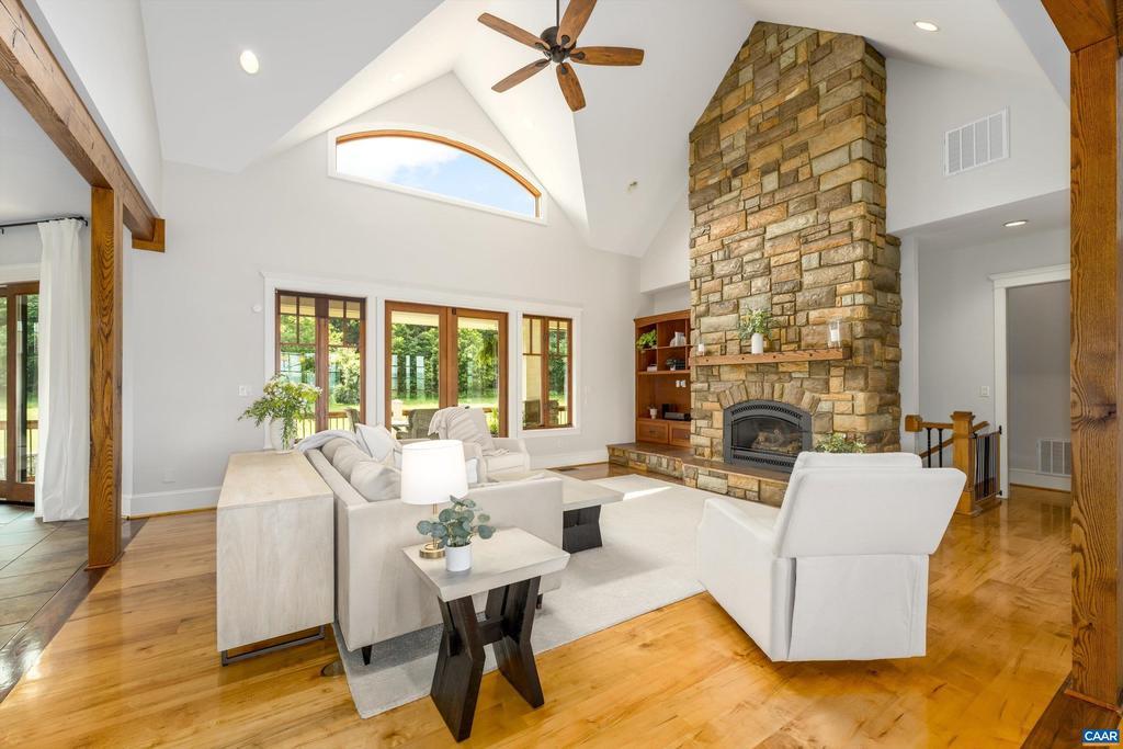 STUNNING CUSTOM HOME WITH PANORAMIC MOUNTAIN VIEWS ON 3+ ACRES! This beautifully crafted 4BR/4.5BA home offers over 5,400 sq ft of living space, blending luxury and comfort in a peaceful setting just minutes from Stuarts Draft and Downtown Staunton. The light-filled great room features vaulted ceilings, exposed beams, and a stone fireplace that perfectly frames the sweeping mountain views. The spacious kitchen includes cherry cabinetry, granite countertops, and quality finishes throughout. The main-level primary suite provides private deck access and a spa-like bath. An attached in-law suite above the oversized 3-car garage includes its own kitchen, living space, bedroom, and full bath?ideal for guests or multi-generational living. Enjoy sunrises and sunsets from the covered gazebo or wraparound deck. Additional highlights include a full walkout basement and a detached 30x40 insulated garage/workshop with power. This home combines thoughtful design, modern amenities, and breathtaking views?truly a must-see property in the heart of the Shenandoah Valley.,Fireplace in Great Room