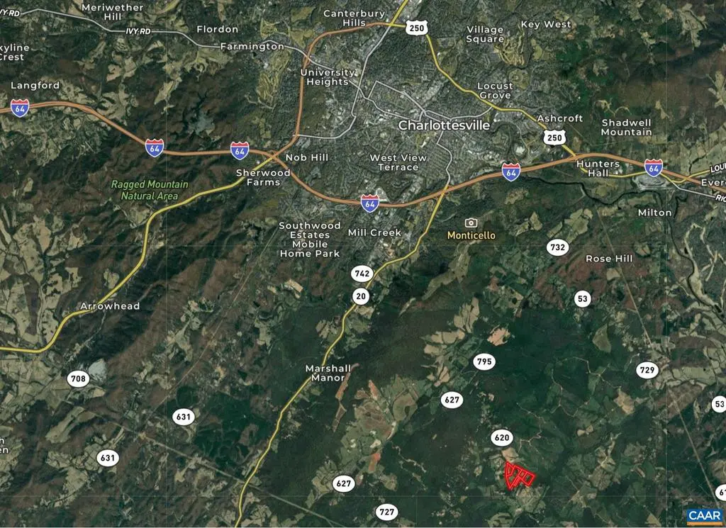 This is a beautiful and exceptionally located 75-acre property, less than 20 minutes from Charlottesville. This land boasts mountain views, 2 ponds, multiple out buildings and storage barns, fully fenced perimeters with cross fencing, rolling hills, mature hardwoods, and a 2 bedroom farm house. The property was a working farm for multiple generations, and now peacefully awaits the next owners. It is fully ready to accommodate horses, cattle, and any other homestead desires. There is plenty of storage for vehicles, hay bales, animals, or workshops. There are multiple waterers on the property connected to a well. The land is diverse, with oak trees scattered throughout the rolling hills and mountain views on the elevated knolls. There are also approximately 22 acres of hardwoods, with an abundance of wildlife including whitetail deer and wild turkey. Adding to the value of the property is that it is comprised of 5 adjoining parcels, allowing the next owners to either build additional primary residences and buildings for the family, or sell adjoining parcels for additional profit if desired. There is plenty of road frontage, with approximately 2,675 ft along Rolling Rd. Minutes from Monticello, Michie Tavern, and renown wineries.,Wood Cabinets,Fireplace in Living Room