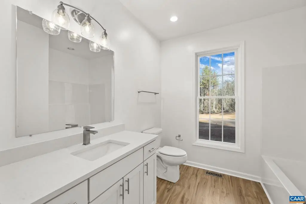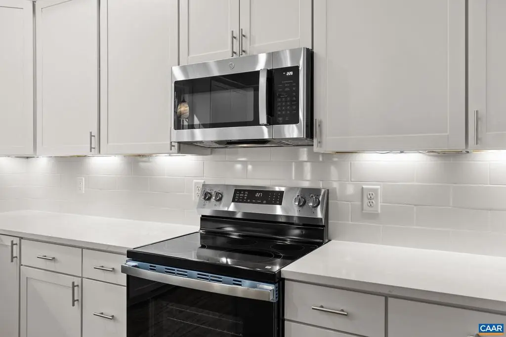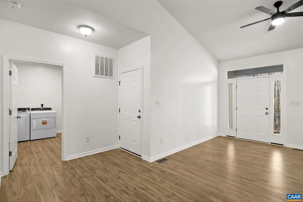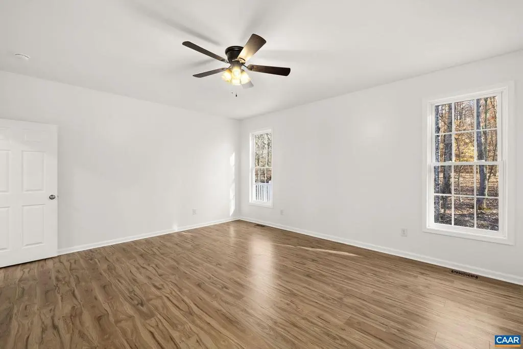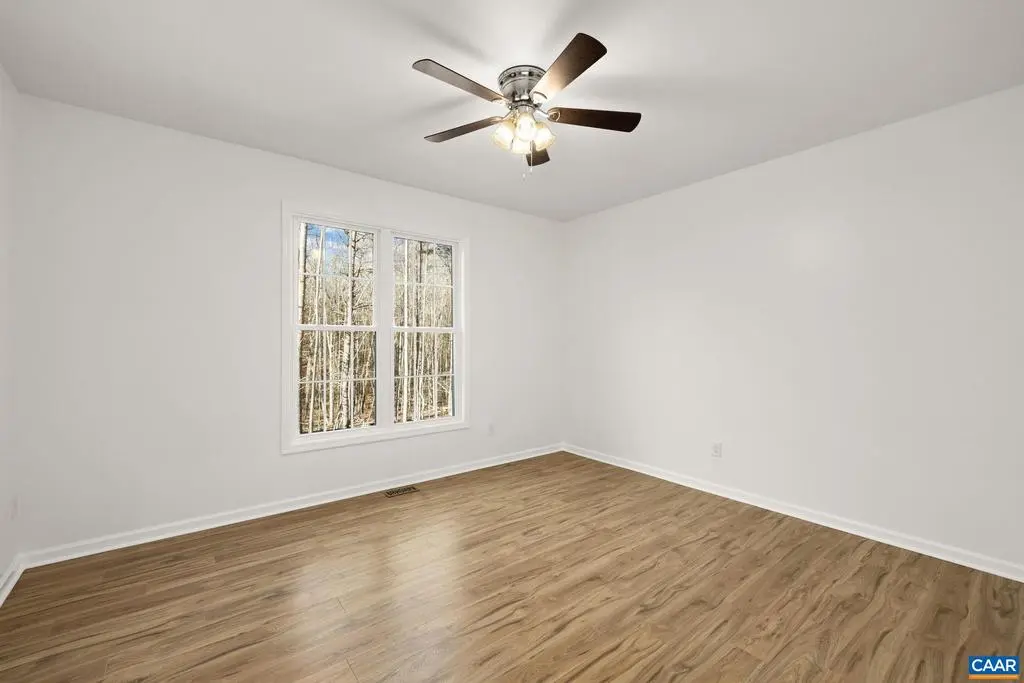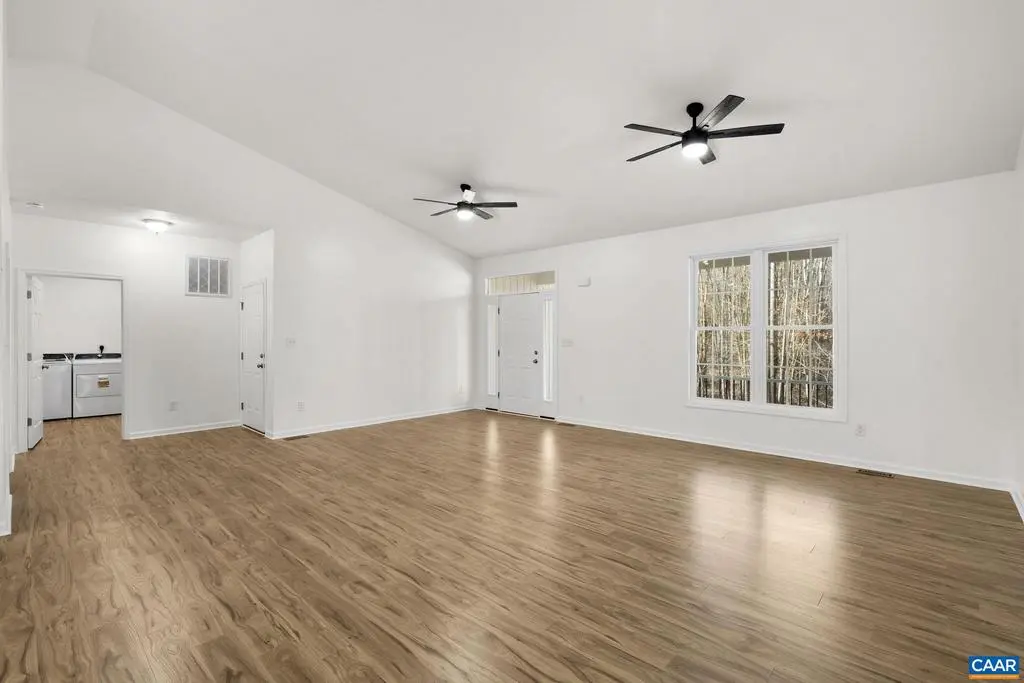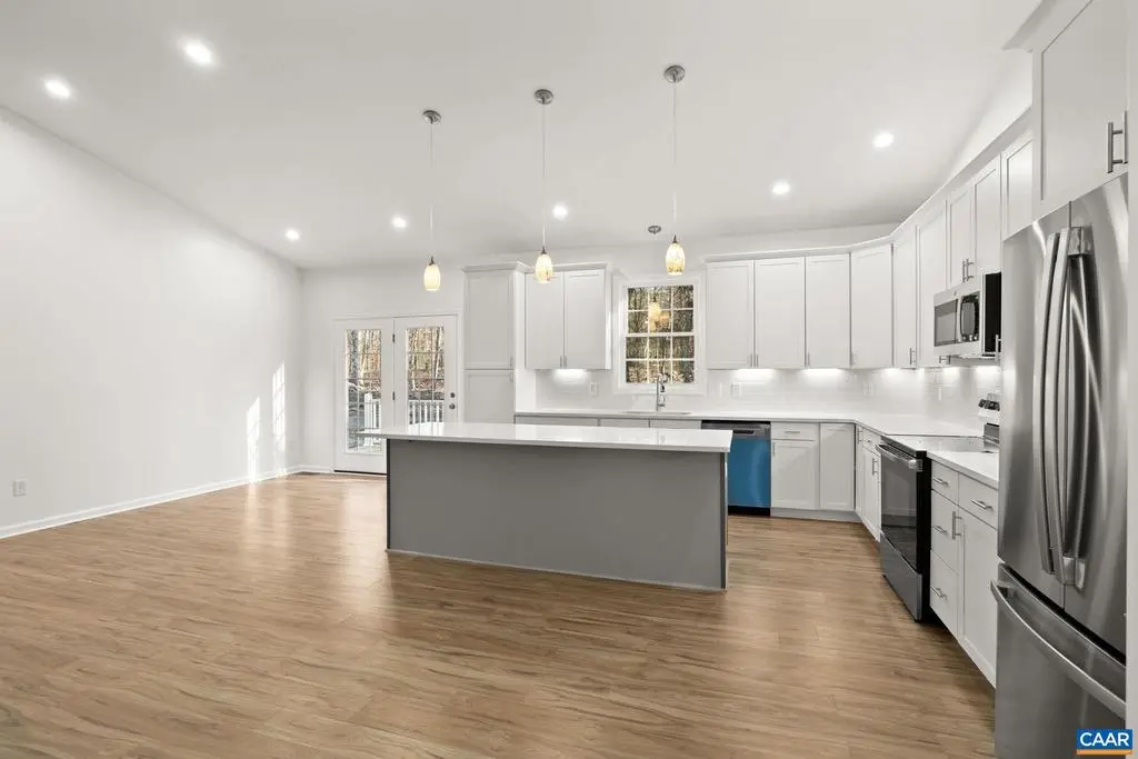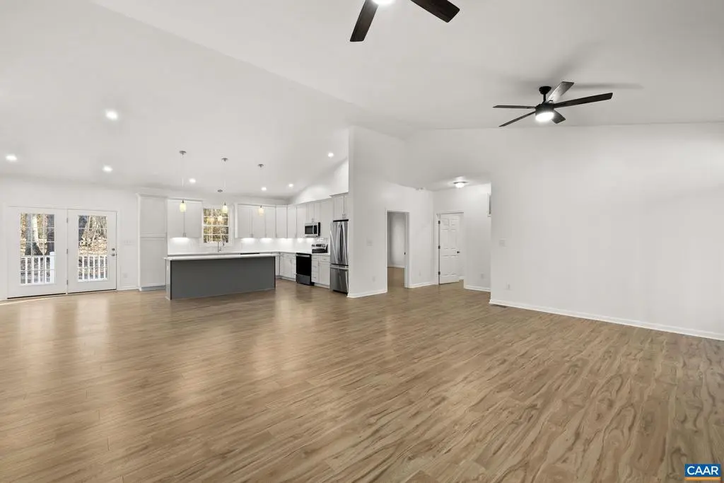 Move in ready, just in time for the holidays! Spacious custom built home with all the extras. This beauty is nestled on a private and wooded 4.1 acre lot. Offering 3 bedrooms, 2 full baths, and boasting 2,016 sqft all on one level! The open floorplan with cathedral ceilings welcomes you with tons of natural light and custom finishes throughout! Chefs kitchen with an huge 8ft island, all stainless appliances, tile backsplash, under cabinet lighting, granite counters and 42" soft close cabinetry. Recessed lighting throughout, and multiple ceiling fans. Builder also includes the refrigerator and washer/dryer. Gorgeous hickory colored LVP flooring throughout. Split bedroom design with the primary bedroom featuring and attached en-suite with a separate soaking tub and tiled shower. Generous walk in closet. Large laundry/mudroom with cabinetry and a custom butcher block counter, conveniently located next to the attached 2 car garage. Poured front country porch, a 10x24 back deck and expansive poured patio to relax and enjoy the serene setting. Classy vertical siding and oversized gutters. Located just 5 miles from I64 for a quick trip to Zion Crossroads, Charlottesville, or Short Pump. Don't miss out on this one!,Granite Counter,White Cabinets