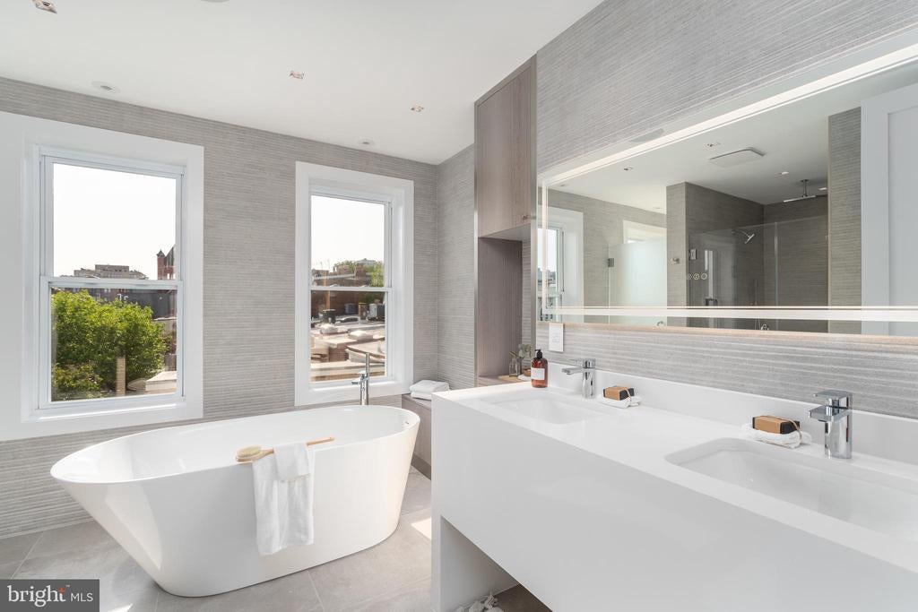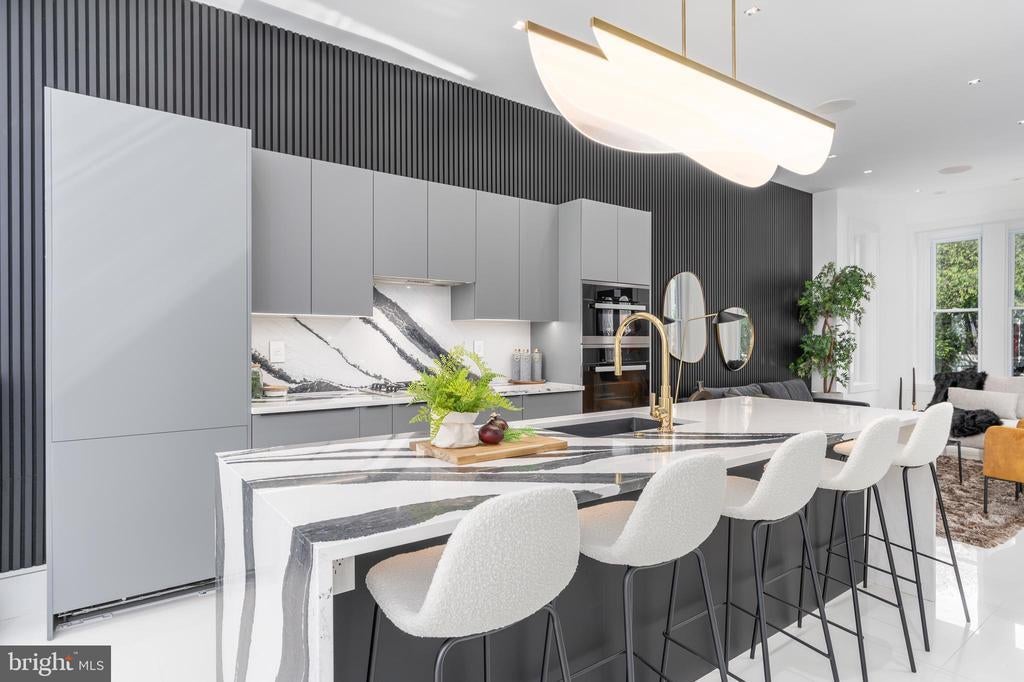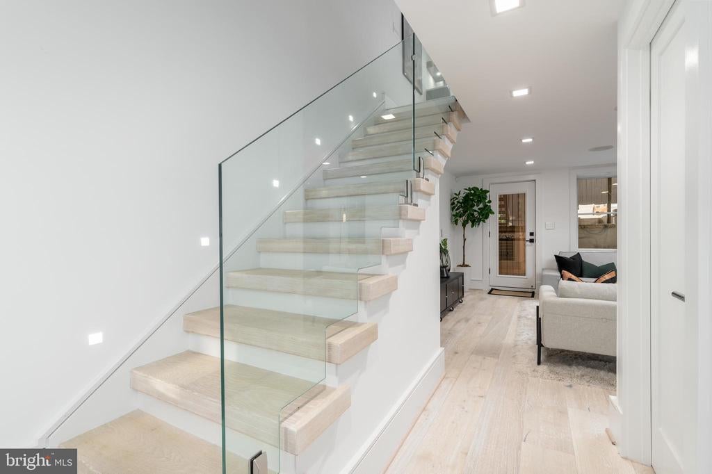 Introducing an exquisitely transformed row home, a veritable masterpiece that redefines opulent living. Nestled in an awe-inspiring location, mere steps away from the renowned Logan Circle, this captivating four-level townhouse boasts an impressive configuration of 4 bedrooms and 3 full bathrooms, sprawling across an expansive 2900 square feet. Prepare to be spellbound by the unparalleled contemporary design elements that adorn every inch of this abode. Every facet of this residence has been painstakingly fashioned with meticulous attention to detail; from the bespoke floating staircase adorned with glass railing to the soaring 11-foot ceilings and majestic 8-foot-tall solid wood doors, no expense has been spared. The Poggenpohl kitchen cabinets, enhanced by sleek black fluted walls, and a collection of professional-grade chef appliances, including an indulgent Miele coffee station, converge to create a true epicurean haven. Brilliantly bright, the main floor showcases European tiles, a stylish dining room, a living room boasting a fireplace, and a deck that overlooks a serene private backyard. On all other levels, the hardwood floors radiate an air of timeless elegance, enhancing the overall splendor. Boasting 3 full bathrooms and 4 bedrooms featuring Italian Poliform organized cabinets, the living spaces are also suffused with an abundance of natural light. The meticulously landscaped front and back yards, adorned with accent lighting, contribute to an inviting ambiance that is simply unmatched. Through to the open-concept kitchen, resplendent with custom Poggenpohl cabinetry, state-of-the-art Miele cooktop, stove, and coffee station appliances - a dream come true for those who relish the art of entertaining. Handpicked island and countertop surfaces, complemented by fluted wall panels, designer lighting, and top-of-the-line fixtures, combine to create an unforgettable culinary experience. The owner's suite commands the entirety of the third/top floor, serving as a luxurious sanctuary that encapsulates pure indulgence. Boasting a skylight, a separate laundry area, a generously proportioned bedroom with a cozy sitting area, and an Italian Poliform organized closet, this suite exudes grandeur. Immaculate design continues in the master bathroom showcasing floor-to-ceiling tiles, bespoke cabinetry, double sinks, a temperature-controlled toilet/bidet, a Kohler digitally controlled spa experience shower complete with a cascading waterfall, and a freestanding oversized tub. The lower level of the property provides additional space for family gatherings, featuring a charming rec-room, a fireplace, a full bath, a bedroom, a washer/dryer, a wine cooler, wine storage, and a separate rear entrance, with a delightful rear patio serving as an idyllic oasis for relaxation or outdoor entertainment. Premium comfort and premier living are on offer here with amenities including cutting-edge Legrand Adorne touch lighting switches, an unparalleled sound system permeating every corner, and built-in security features. Ideally positioned just minutes away from the city's most exceptional restaurants, shopping destinations, grocery stores, public transportation hubs, and a host of other amenities, this townhouse offers an exquisite fusion of luxury, convenience, and style. Seize the opportunity to make this extraordinary property your new home and embark on a life of unrivaled grandeur. Monthly parking space available across the street.