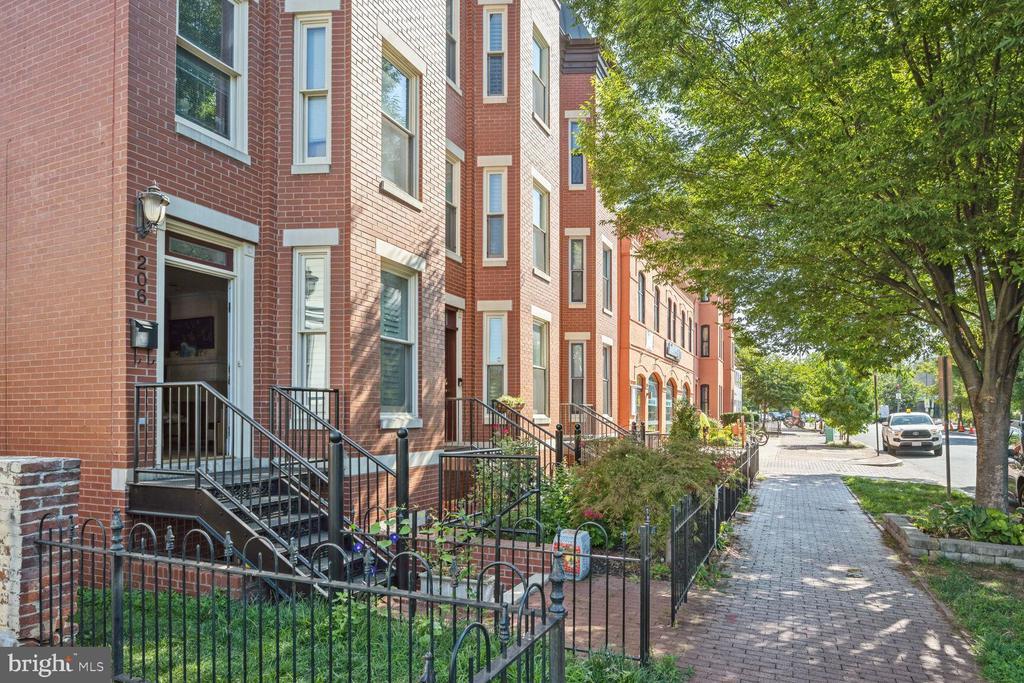 Welcome to 206 D St SE, a stunning end-unit row house nestled in the heart of Capitol Hill 1 block to Metro and 3 blocks to the Capitol with parking. Beautiful park setting across the street from Folger Park. This single-family home offers an exquisite blend of classic charm and modern convenience. With 5 spacious bedrooms and 4 and a half baths, this property is designed to accommodate a variety of lifestyles. As you enter, you'll be captivated by the elegance of the high ceilings and hardwood floors that flow seamlessly throughout the home. The living spaces are illuminated by recessed lighting and enhanced by a skylight, creating a bright and inviting ambiance. The main level includes a bay window, dining area with a gas fireplace, open kitchen with family room/breakfast room and a half bath. The 2nd level includes two bedroom suites, covered balcony and hallways of closets and laundry. The top level includes two bedrooms, covered balcony and adjoining bath for use as separate bedrooms or top floor suite with bedroom and office. There are 4 thermostats, one located on each level. The home boasts a spacious basement suite, complete with fireplace, cozy window seat, open living spaces and high ceilings, as well as a second washer/dryer. Step outside to enjoy your private balconies, or unwind in the beautifully landscaped front yard and garden. Private parking is a breeze adjoining the back steps and garden. This property is a rare find, offering an exceptional living experience in a vibrant location.