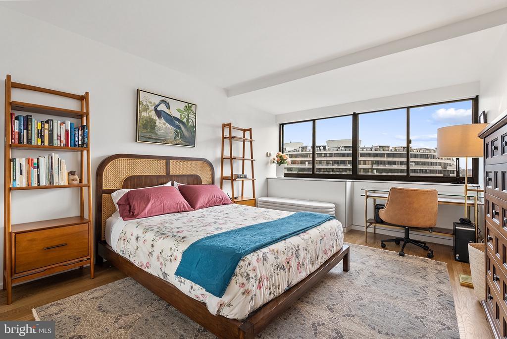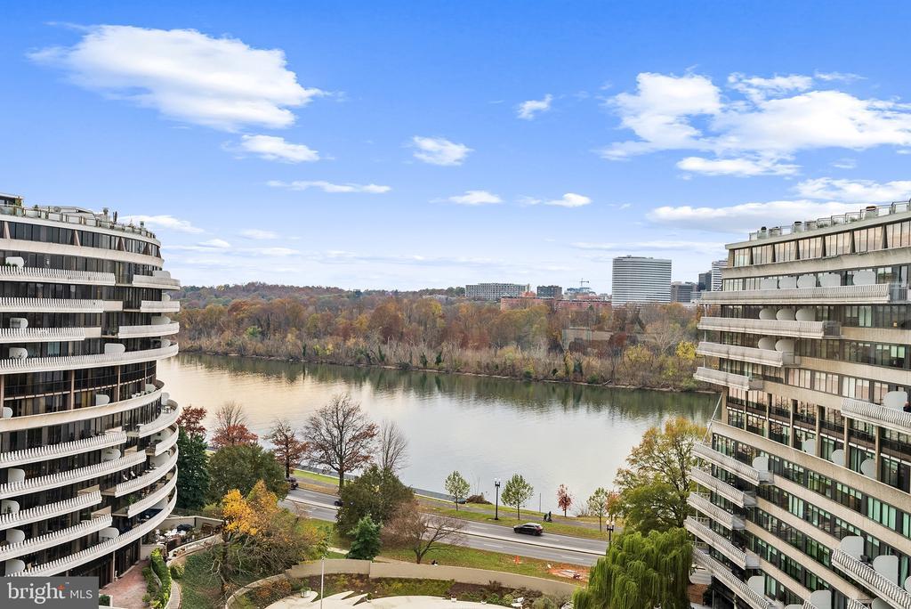 Fantastic renovation - 3 bedroom corner residence with great river and sunset views. 2265 sq ft. Curved architectural features and a superb renovation. Corner interior surrounded by windows and a direct river view. Double pane windows throughout. Gourmet kitchen with designer backsplash, quartz counters, bar seating area with built in microwave. Living room with custom hanging glass display shelves, custom walnut bookcase and built in cabinetry for closed storage and television display Large dining area with picture windows. Below counter icemaker and quartz counter. The flooring is engineered select white oak flooring throughout except bathrooms, with cork underlayment for sound dampening. Designer baths with pure white quartz counters, vanities and tilework. Spacious bedrooms including large primary bedrooms. Taj Mahal quartzite wall in primary bath. Miele washer and heat pump dryer. Programmable shades/ All-inclusive LOW monthly co-op fee includes property taxes, utilities, basic cable, internet, and maintenance of HVAC. Watergate East amenities include sparkling newly renovated lobby, 24/7 front desk & doorman service, outdoor heated pool, fitness center, roof terrace & garden, plus on-site shops and restaurants. Walking distance to the Kennedy Center, Georgetown Waterfront, bicycle paths, Foggy Bottom Metro, Watergate Hotel & Spa, GWU, restaurants, Trader joes, Whole Foods and more!