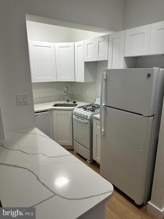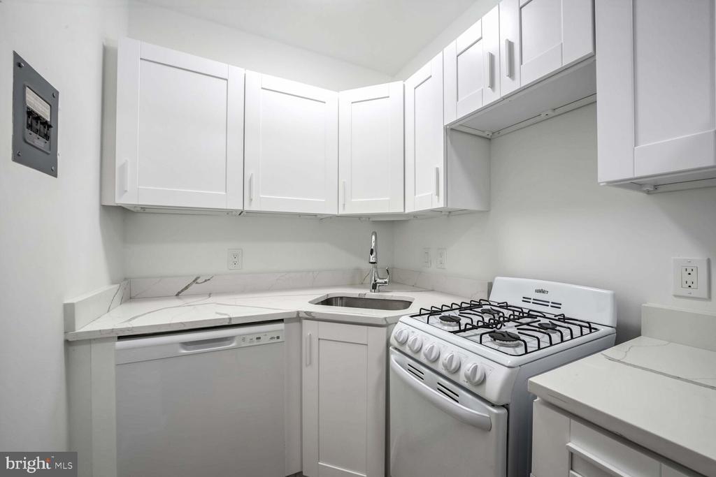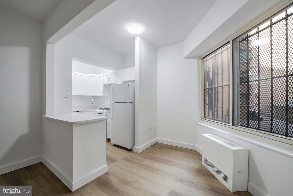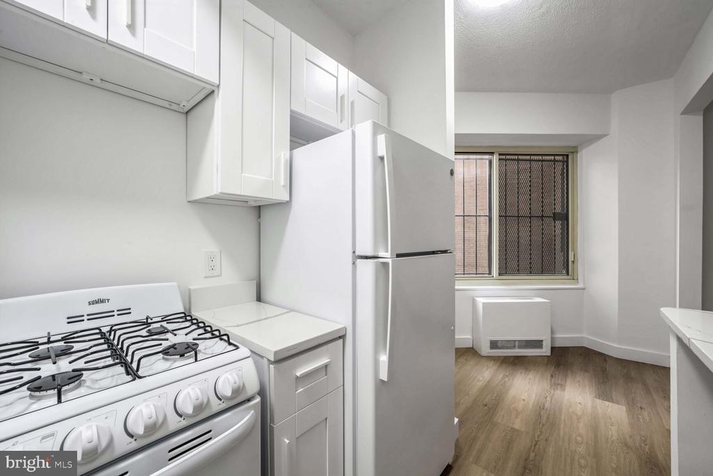 New price; Fabulously Renovated Junior 1 Bedroom & Full Bathroom with tiled Shower Stall. With 444 Square feet, this architect-designed and renovated unit maximizes space & efficiency. The expanded bedroom alcove features an en suite bathroom and walk in closet. The kitchen features gorgeous marble countertops, crisp white cabinetry, upscale marble countertops and a gas stove. The entire unit is covered with elegant luxury vinyl plank for modern sophistication and easy maintenance. The bathroom features an updated vanity, flooring and convenient shower stall. Enjoy the panoramic rooftop views from the top of the building while relaxing on one of the many seating options. Perfect for enjoying a sunny lunch outdoors, morning coffee or evening cocktail. This rootop haven sits atop the bustling neighborhood of Dupont Circle below. Conveniently located 2 blocks from Dupont Circle Metro, this location is at the center of all that DC has to offer. The building is well-managed and includes 24 hour concierge, a spacious rooftop with grills, communal laundry, and bike room. In addition to the amenities, the low condo fee $429 includes all utilities. This home is turnkey and move in ready for its perfect Buyer!