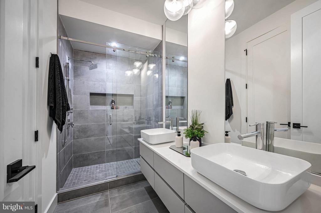 Welcome to 515 M Street NE, Unit 1. On the main level, you are greeted by an expansive, open-concept floor plan. A flexible space with soaring 10-foot ceilings centers around the gourmet chef's kitchen—a culinary haven boasting custom Italian cabinetry, high-end stainless steel appliances, and a quartz waterfall island that accommodates five or more guests, setting the stage for opulent living. On one end of the main level is a spacious living room with ample seating for hosting elegant gatherings, while the other end can comfortably seat up to ten guests for intimate dinners or grand celebrations. The main level is complemented by a stylish guest bathroom. From here, access to the private rear patio, perfect for outdoor entertaining or serene relaxation. Private rear balconies extend off upper floor, enhancing the charm of this remarkable home. On the bedroom level, two luminous and generously proportioned primary suites await, each with ample closets to accommodate a king-sized bed. Both ensuite baths showcase exquisite custom tilework, designer lighting, and Italian vanities with plentiful storage. Additionally, a versatile den on this level can serve as a refined home office, private gym, or sophisticated guest retreat. Conveniently located steps from Trader Joe's, Union Market, and the vibrant H Street Corridor, this residence offers access to fine dining, upscale retail, and premier entertainment options. With easy connections to Capitol Hill, Downtown DC, public transportation, and major highways, this property is as practical as it is indulgent. Off-street parking is also available for purchase. Photos are to show the same finishes and quality of workmanship for each unit. Floorplans may vary.
