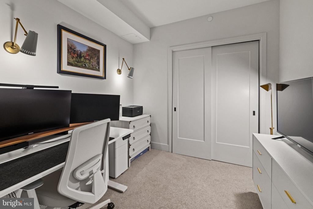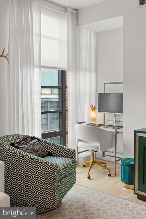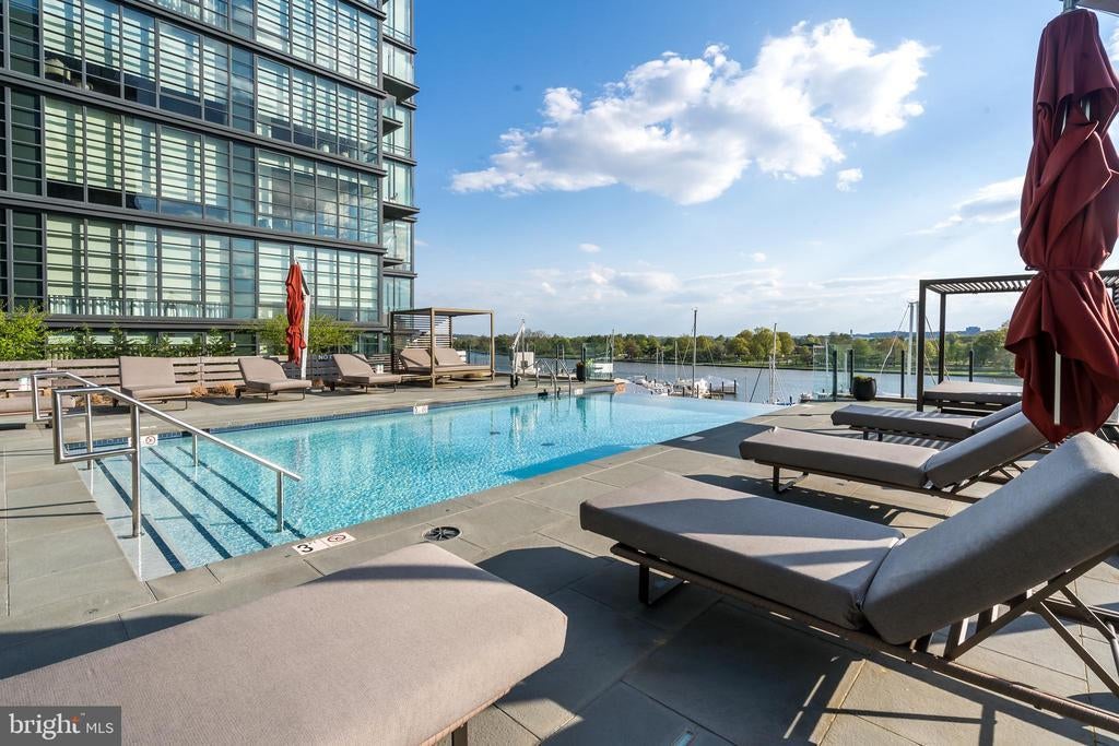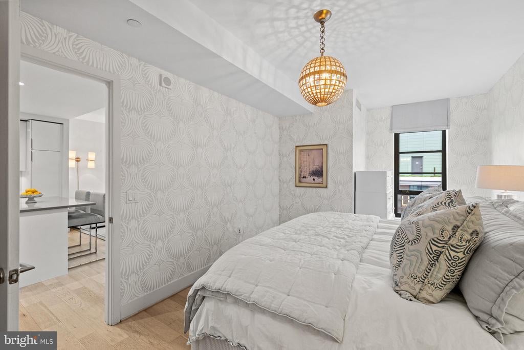 Experience upscale waterfront living at VIO, where luxury meets lifestyle at The Wharf. This beautifully designed 2-bedroom, 1-bath residence spans 915 square feet and features high-end finishes throughout, including wide-plank hardwood flooring, soaring ceilings, and floor-to-ceiling windows that flood the space with natural light. The open-concept kitchen showcases sleek Porcelanosa cabinetry, natural stone and quartz countertops, an island with bar seating, and premium Thermador and Bosch appliances. The bathroom is equally refined, with a Porcelanosa vanity, natural stone tile, and Kohler fixtures. The primary suite stands out with stylish designer wallpaper and a statement light fixture, while the second bedroom offers flexibility for use as a guest room, home office, or additional living space. Added conveniences include in-unit laundry. Vio residents enjoy access to top-tier amenities, including a heated saltwater infinity-edge pool overlooking the river, a fitness center with private training room, 24-hour concierge, fire pit, grilling area, and indoor/outdoor lounges. Additional perks include a dog-washing station, bike storage, electric car chargers, and extra storage. Located in the heart of The Wharf—D.C.’s premier waterfront destination—residents are just steps from award-winning restaurants, live music venues, shops, piers, and scenic walking paths. With water taxis, Metro access, and major highways nearby, city convenience meets tranquil riverfront living. The seller is currently renting a garage parking spot, which can be transferred to the new buyer.