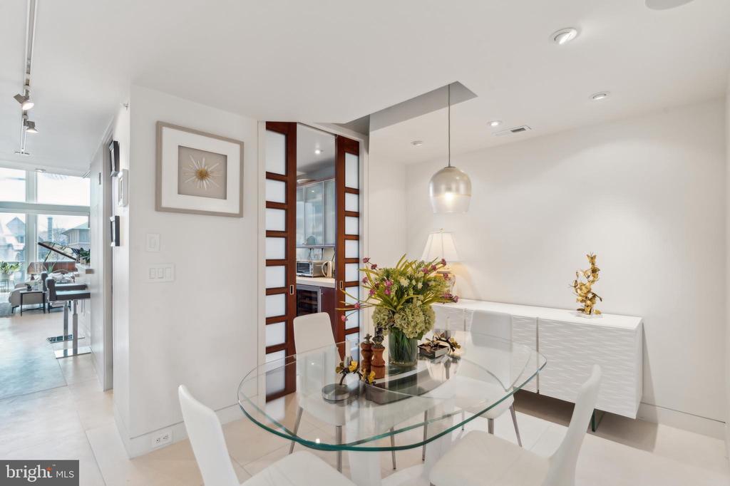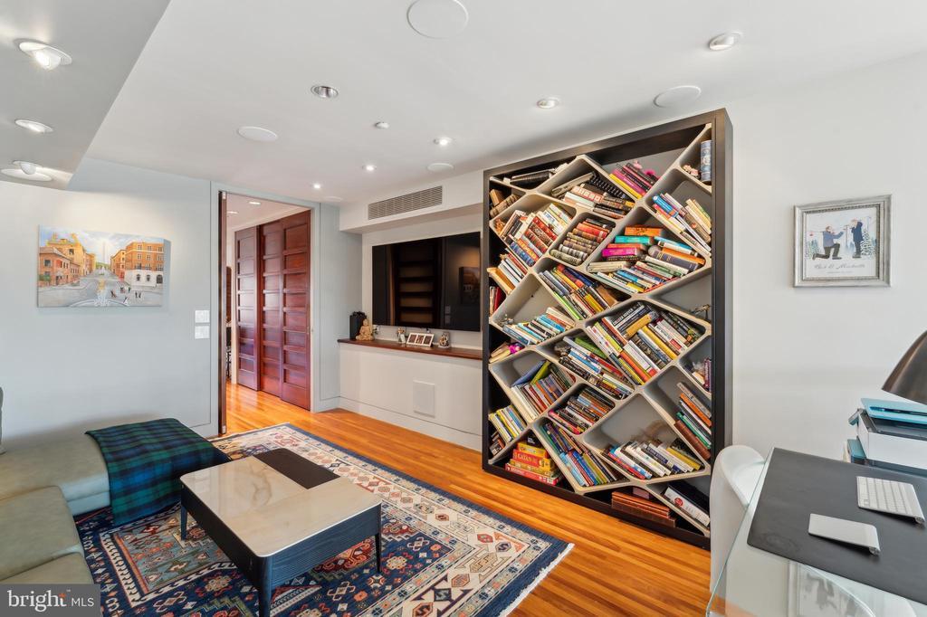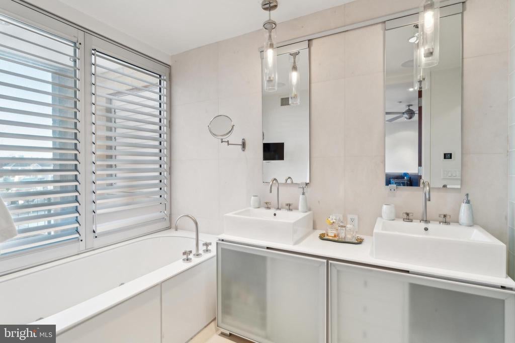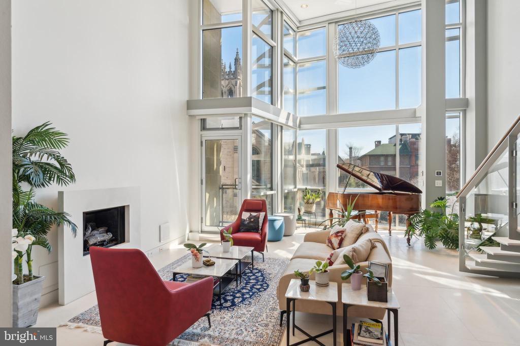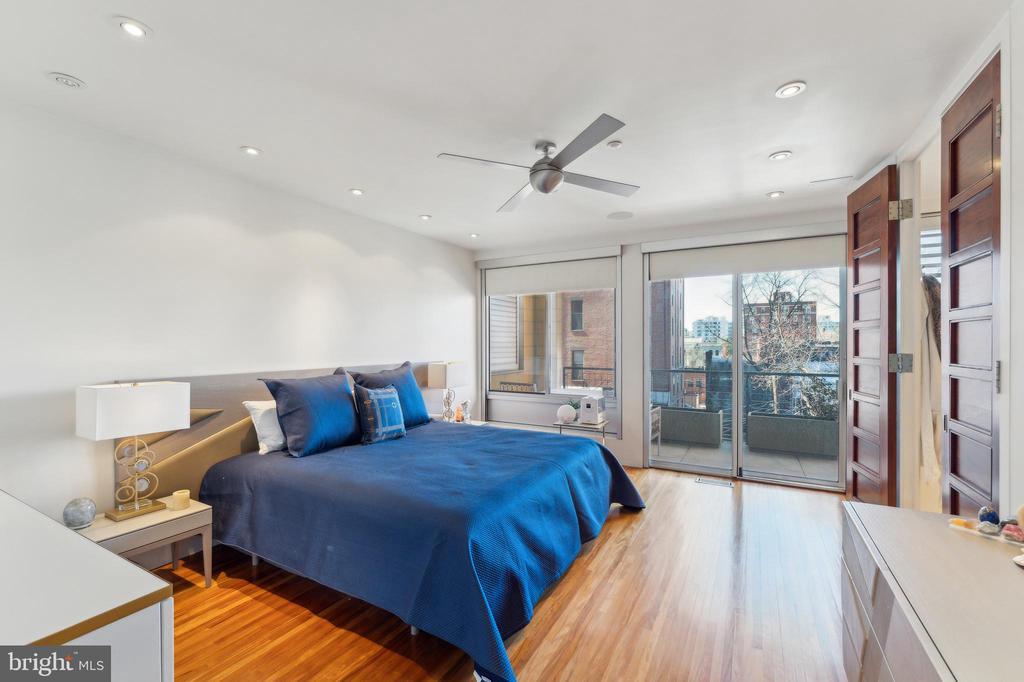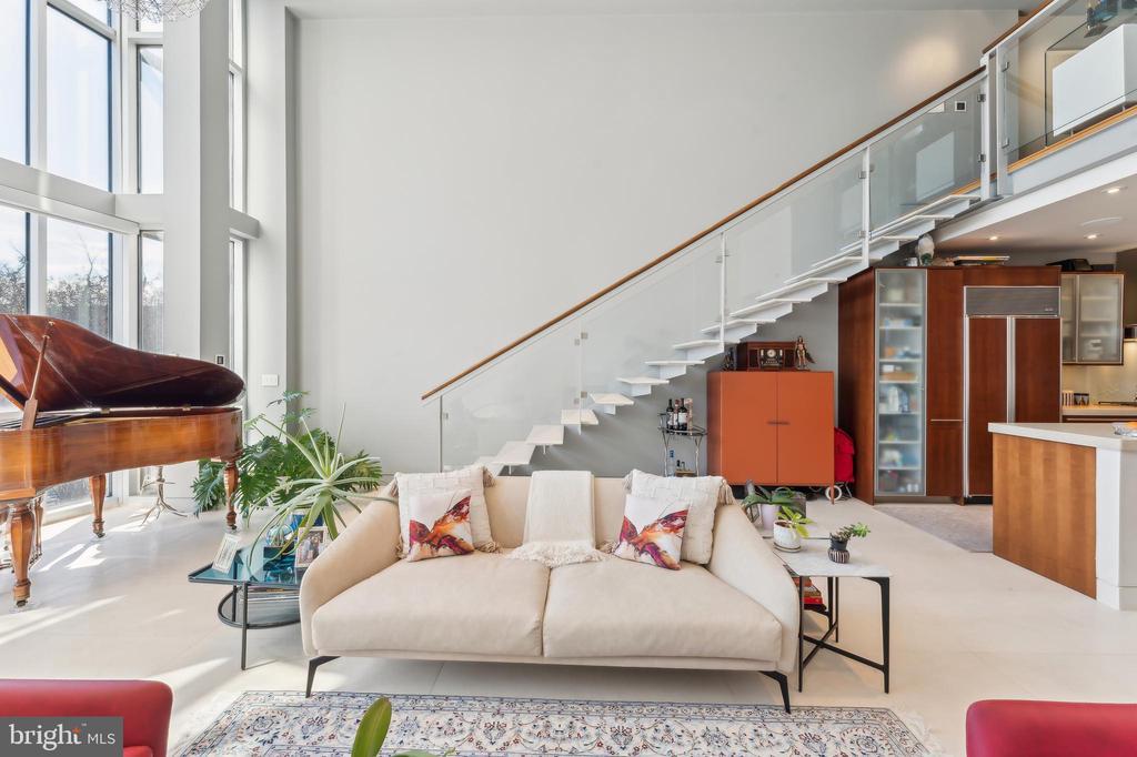 Step off the elevator and directly into your new home in the heart of Dupont/Logan . You're immediately greeted by a bright, open floor plan with panoramic views of a classic stone church and the iconic 16th Street—your direct path to the White House. Soaring 20-foot plus ceilings and expansive windows, shaded by motorized blinds, set the stage. Sip your morning coffee on radiant heated limestone floors as sunlight pours in. Ascend the floating limestone and steel staircase to your den and primary suite. The den offers a perfect space to relax and can control the whole home entertainment system with whole home audio, televisions, and phones. Simply add a desk and create an inspiring atmospheric home office, framed by striking views. In the primary suite, enjoy an upgraded custom walk-in closet, a private balcony, and a spa-like bathroom featuring a jetted tub, a steam shower, and more of that luxurious heated limestone underfoot. Back downstairs, cook with a view in the gourmet kitchen—complete with a Miele gas range, Miele dishwasher, Wolfe double ovens, and a reverse osmosis water filtration system with its own sink. Through a pair of sliding double doors at the end of the kitchen there is a sleek space for formal dining. Finally, the second bedroom is far more than a second thought. With a spacious room with limestone floors, and its own private balcony and full bathroom anyone here will be living in luxury too. All of this is only steps away from a Whole Foods and a SAFEWAY, over a dozen highly rated restaurants and bars, and a new renovated park and community space.