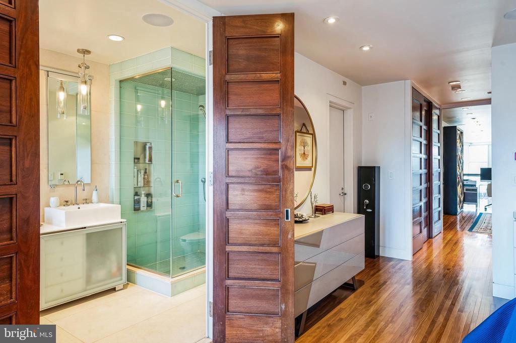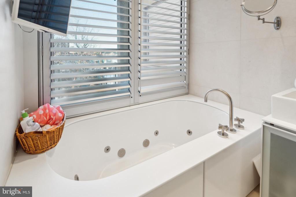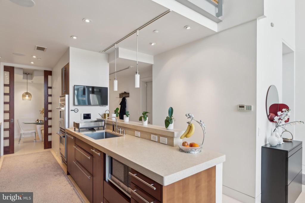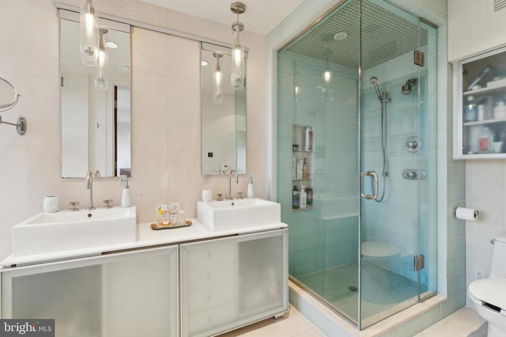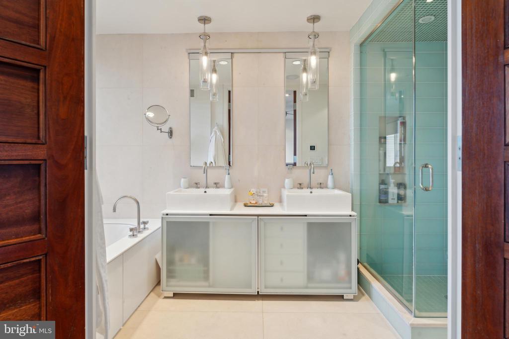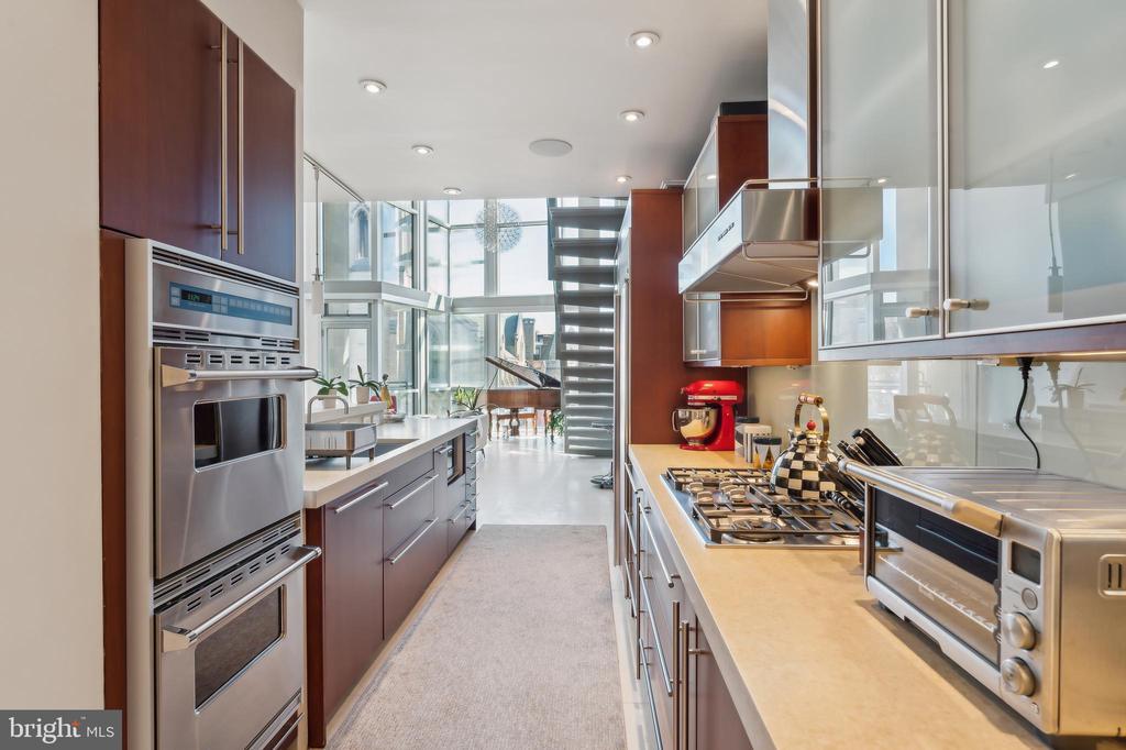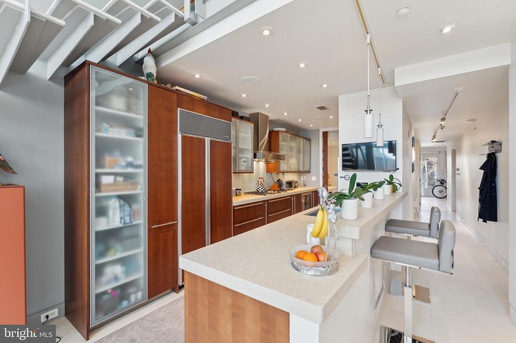 Step off the elevator and directly into your new home in the heart of Dupont/Logan . You're immediately greeted by a bright, open floor plan with panoramic views of a classic stone church and the iconic 16th Street—your direct path to the White House. Soaring 20-foot plus ceilings and expansive windows, shaded by motorized blinds, set the stage. Sip your morning coffee on radiant heated limestone floors as sunlight pours in. Ascend the floating limestone and steel staircase to your den and primary suite. The den offers a perfect space to relax and can control the whole home entertainment system with whole home audio, televisions, and phones. Simply add a desk and create an inspiring atmospheric home office, framed by striking views. In the primary suite, enjoy an upgraded custom walk-in closet, a private balcony, and a spa-like bathroom featuring a jetted tub, a steam shower, and more of that luxurious heated limestone underfoot. Back downstairs, cook with a view in the gourmet kitchen—complete with a Miele gas range, Miele dishwasher, Wolfe double ovens, and a reverse osmosis water filtration system with its own sink. Through a pair of sliding double doors at the end of the kitchen there is a sleek space for formal dining. Finally, the second bedroom is far more than a second thought. With a spacious room with limestone floors, and its own private balcony and full bathroom anyone here will be living in luxury too. All of this is only steps away from a Whole Foods and a SAFEWAY, over a dozen highly rated restaurants and bars, and a new renovated park and community space.