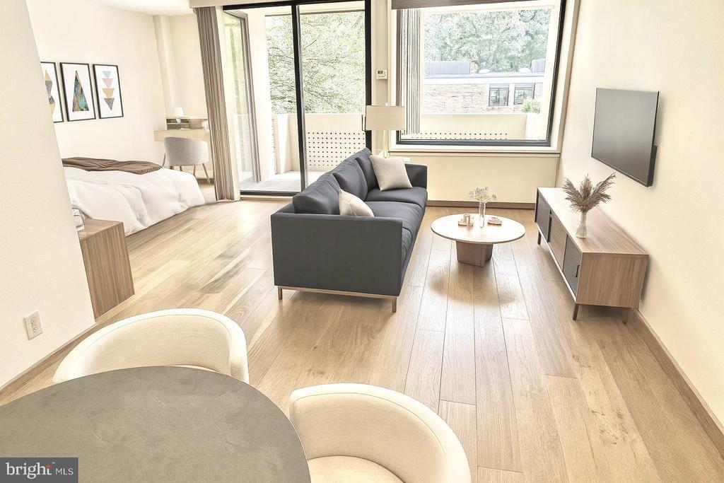 Fab Studio with balcony! Tiber Island N203 offers a fabulous open floor plan with spacious living spaces, and a wall of windows and sliding doors that open to a large east-facing balcony. New floors, new paint, new updates, and custom closet. Kitchen offers new fridge, under cabinet lighting and pantry. Natural eastern light envelopes the spaces. Storage to spare. Pets allowed. Don't miss this opportunity to own a piece of SW Waterfront. The monthly co-op fee of $956.66, includes property taxes, utilities, cable/internet, and more. Tiber Island co-op also offers 24-hour concierge, on-site management, fitness rooms, carwash, outdoor pool and bbq grills, rental storage, and community laundry facilities. Near shopping, Metro, Arena Stage, and museums. Explore the Wharf entertainment district, or take quick jaunts to other nearby attractions such as Yards Park, Penn Quarter, Capitol Hill, Georgetown, Arlington, and Alexandria. Commuting is a breeze with easy access to I-295, 395, 695, Rt 66, and Rock Creek/GW/Suitland parkways. Connect effortlessly to Metrorail, Virginia Railway Express, Amtrak, and National Airport. Approx. 515 sf per co-op records. Unit size and floor plan references are approximate and should not be used for valuation. Some photos are virtually staged. FAQs: • New owners must occupy as primary residence and file a Homestead Exemption in the District of Columbia. • Ownership cannot be taken in an LLC or corporation. Owners must be natural persons or a trust of the occupant. • Tiber Island Cooperative Homes requires all cash purchasers to obtain a cash evaluation letter as part of the Board Approval process. • Two pets are allowed per unit. • Laundry is in the basement; w/d CANNOT be added in the unit. • Tiber Island collects an escrow at settlement equal to three (3) months co-op fees. This escrow is held throughout the owner's ownership of the co-op. • Renting is allowed after 2 years of ownership. After 4 years of renting, requests are only approved if the Board grants a hardship exception.
